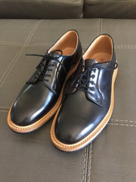 - Plain Toe / "PTBs." Plain Toe Bluchers—particularly in a dark color with a contrasting welt as shown here, and with a round or bulbous toe—are extremely common, in both dressy and casual lasts. See Tricker's Robert (shown here in black shell) and Alden's Color 8 Shell PTBs. Note that plain toe derbies also exist, but I'd prefer a blucher.