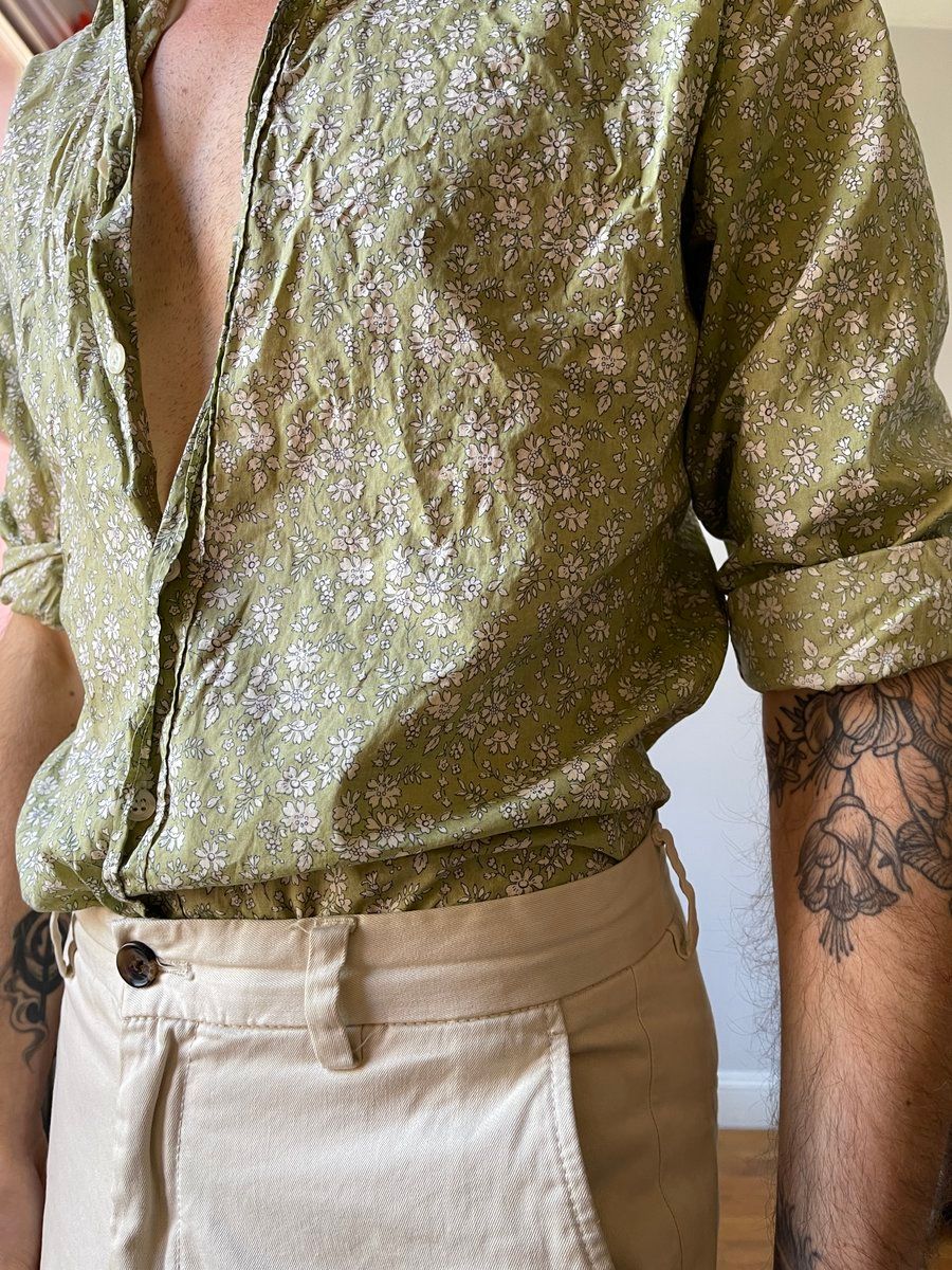 I want you to imagine you're in a low-end store—a TJ Maxx, a Ross, maybe even a J. Crew—looking through shirts. You touch a few, try to get an idea of what you're looking at, and feel one disappointing papery mess after another. You see one that looks slightly different—a micro floral!—and although it doesn't actually look good, it catches your attention through a sea of mediocrity. It feels even worse than the others, and the short spread collar is clearly going to curl up and look awful by the first wash at the latest.