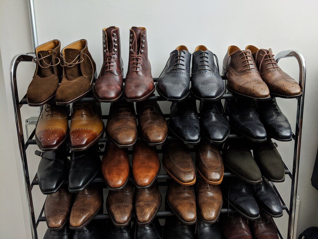 The dress shoes seemed pretty nice at a glance. Some cool antiquing effects. The sneakers were nice too, although rumor has it that they come with the stink of a thousand leather goods, and retain that stink for months, so I'm looking elsewhere for sneakers.