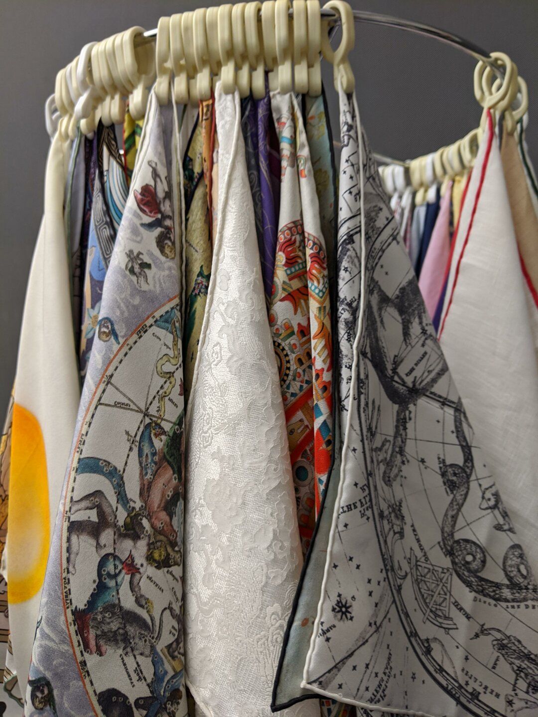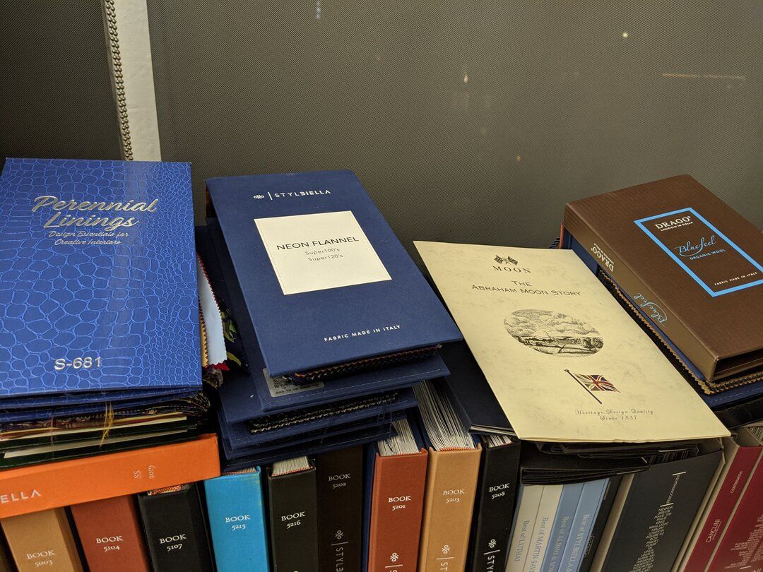 And here's a great reason to go in person: they have an extremely large number of fabrics and linings to choose from. Like, more than you see here. A huge portion of their office is just piles and piles of fabric books for your perusal. On top of the old standards, I really enjoyed the Drago fabrics. Their lining options didn't just include the standard solid bembergs, but a variety of materials, subtle patterns, wacky patterns, cultural references, pieces of art, you name it.