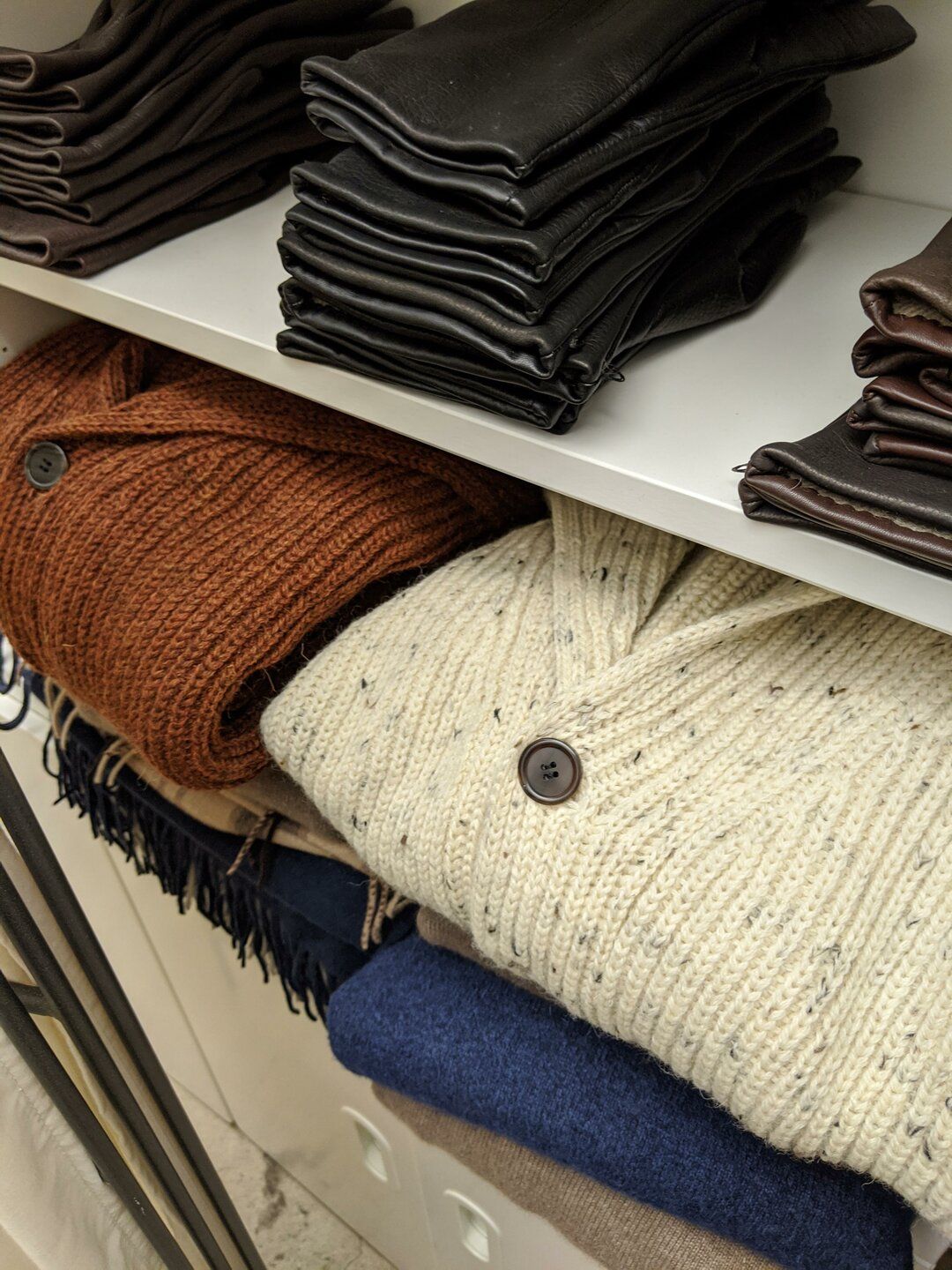 But then I tried the shawl cardigan. This is one of the pieces I really wanted to try out, but in person, it really didn't live up to my (admittedly high) expectations. It was a warmer, yellower tone than any of the photography showed. It was a full size smaller than you could reasonably expect—definitely size up. And the material was itchy and just... not very pleasant. I guess it must break in. I'm sure some people would appreciate it, but it was not for me, so the main lesson here is just: try things on before you buy them.