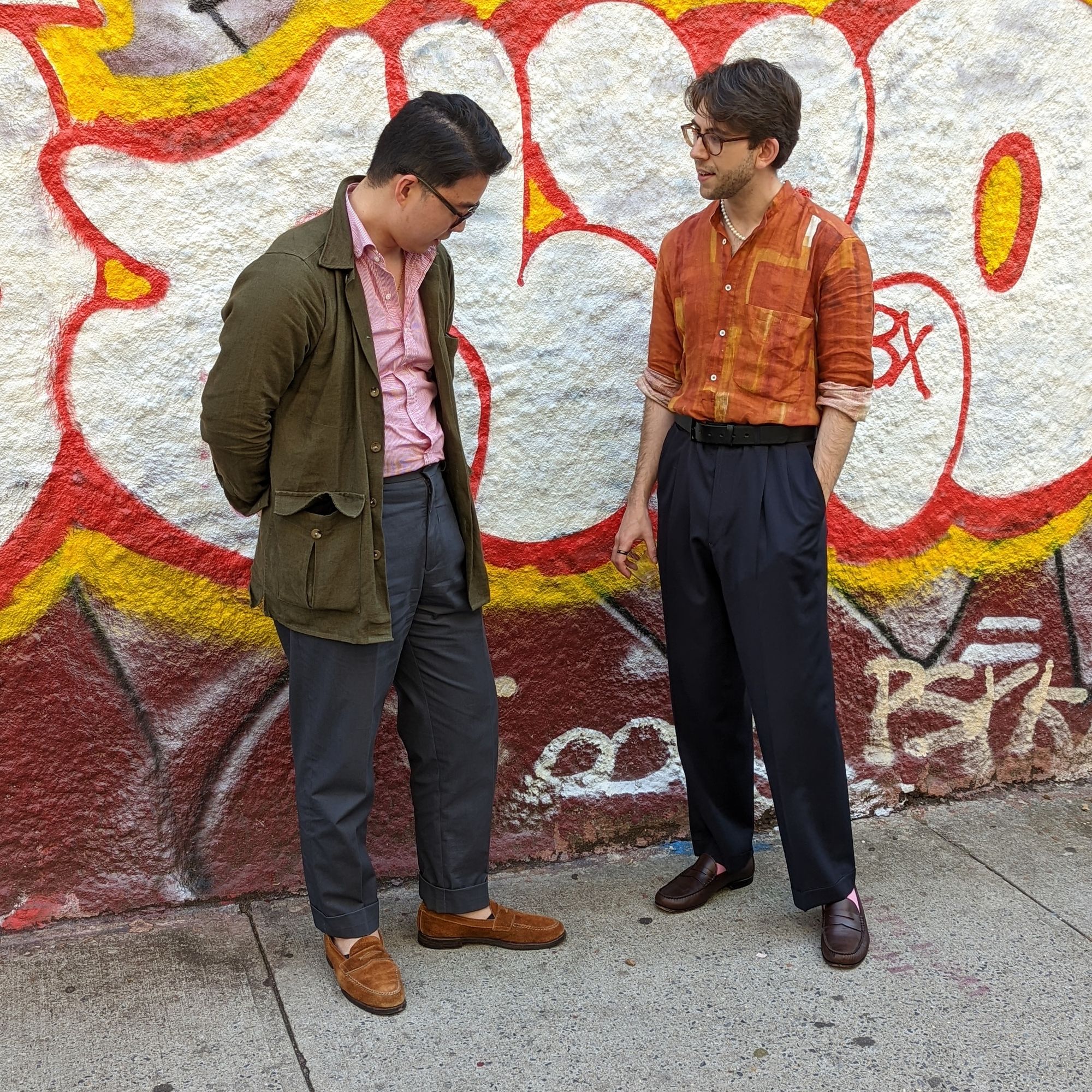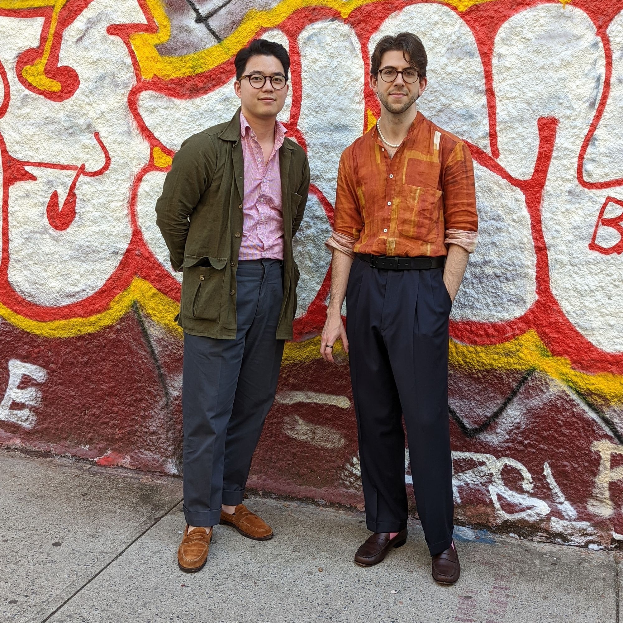 Will is wearing a Drake's jacket and shirt. The jacket is linen, and much lighter than my chore coat—we compared, Drake's heavy linen chores are something else.
