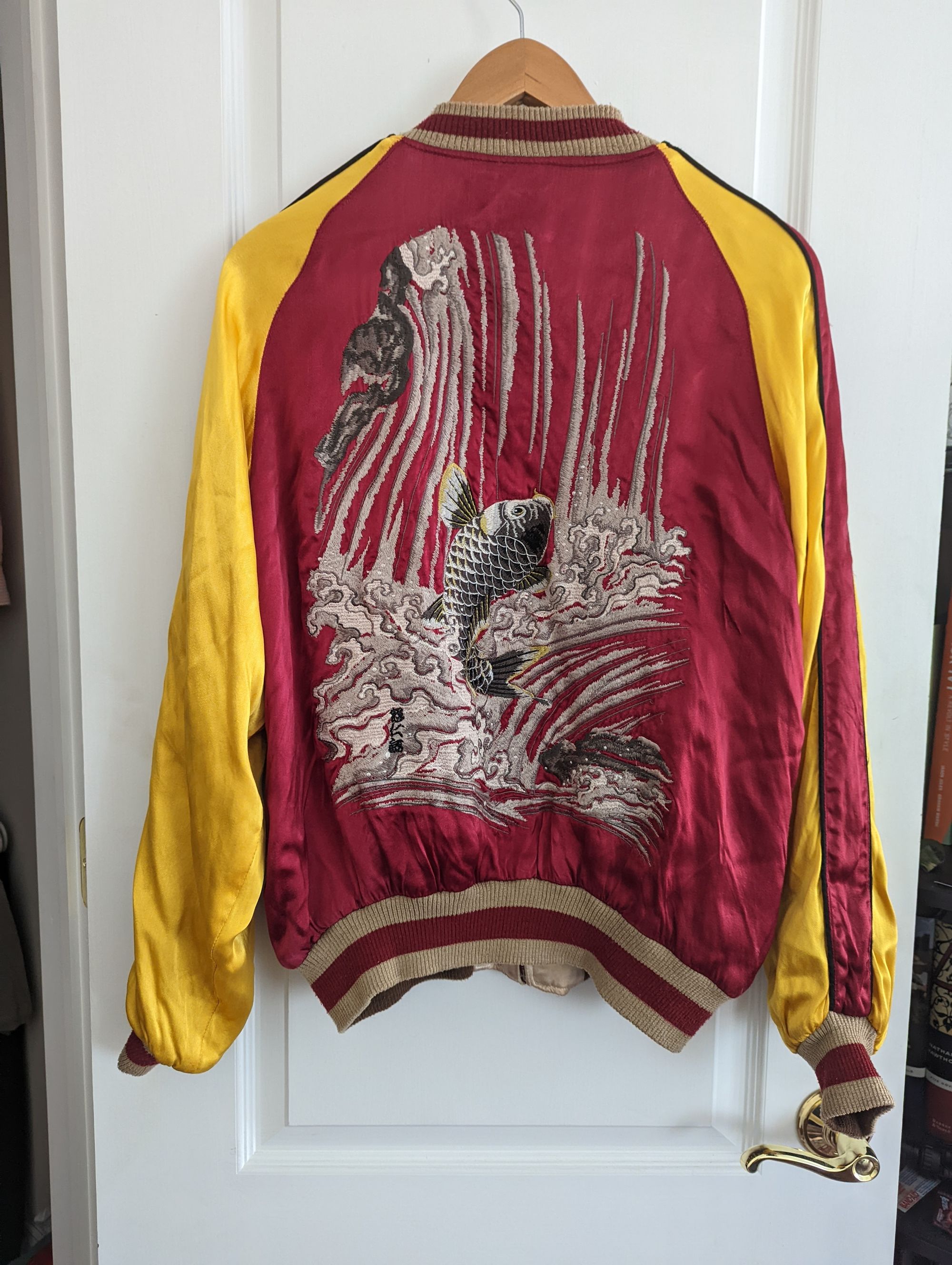 I wasn't expecting to buy a souveneir jacket that day, or at all, but here it is. I got this reversible piece from Nick for $60, agian forgetting to haggle. He tells me that the Koi symbolizes good luck, and the cranes, long life. I'm on board with both.