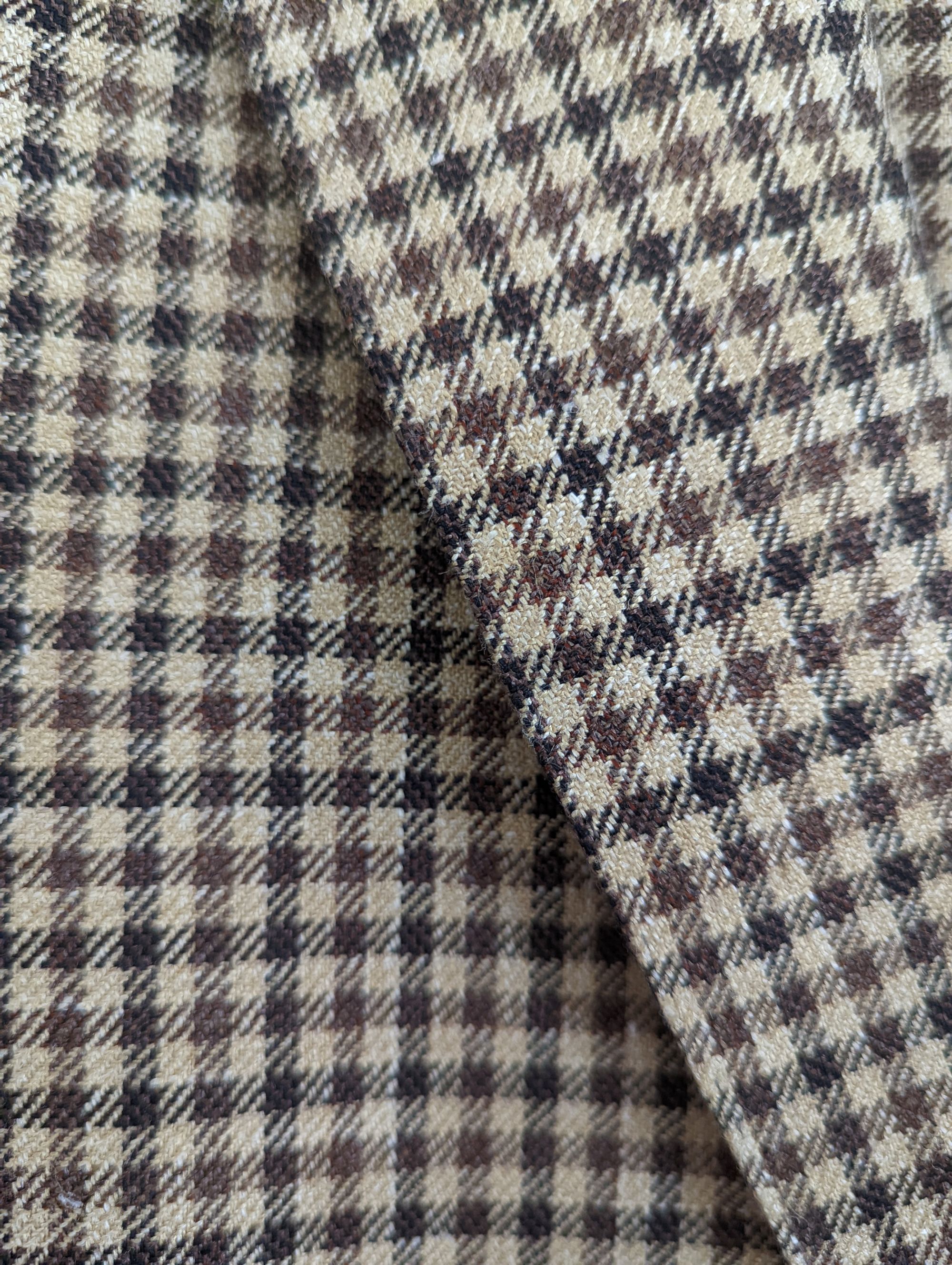 It's a brown on brown on brown check, but what's really cool is the gold in the weave. Not sure how visible it is in the photos, but it's a good effect in person.