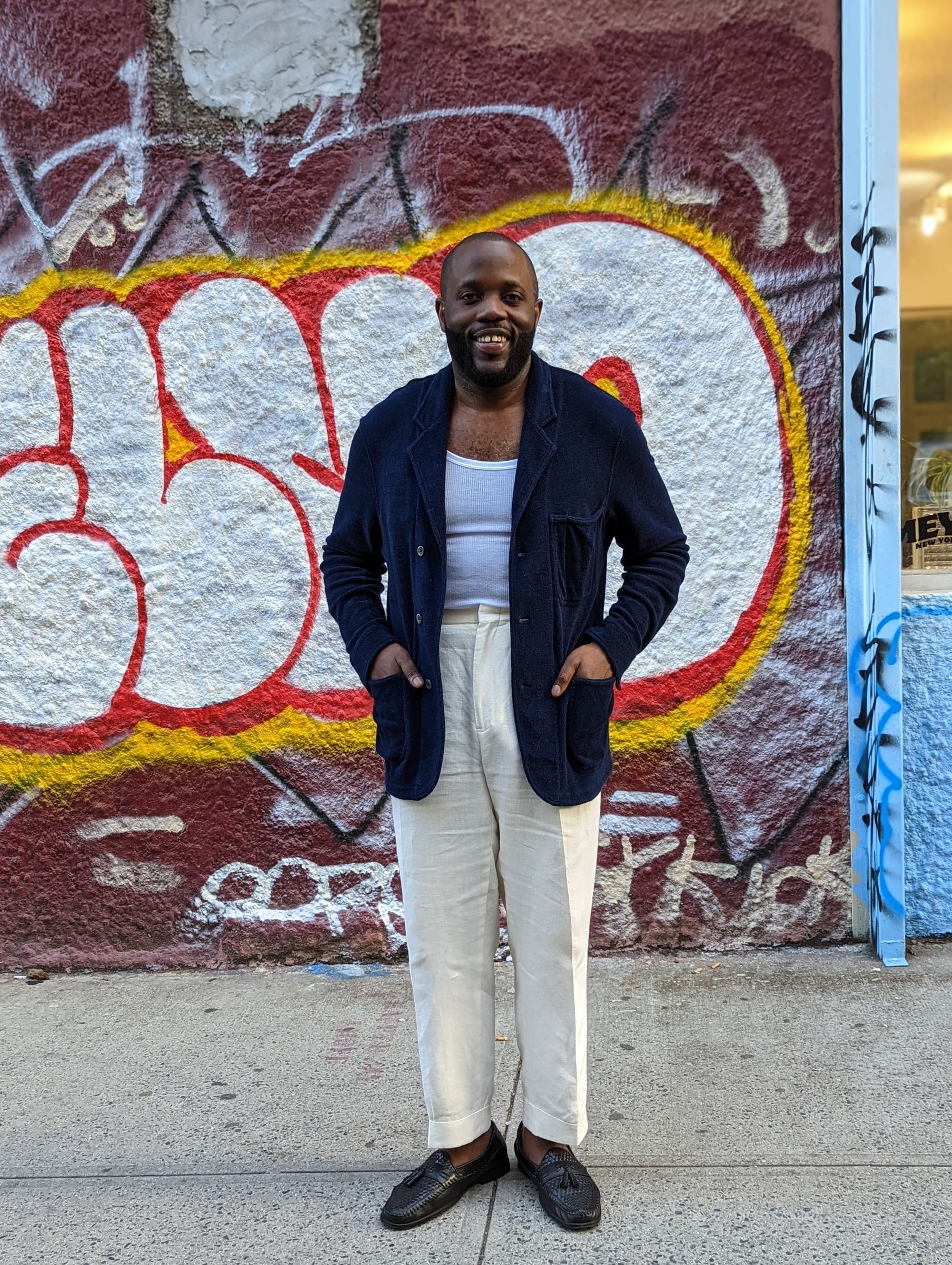 Stephon, the founder of Alfargo's, is wearing a Drake's scarf, and a great safari suit—I didn't get to ask him for the details.