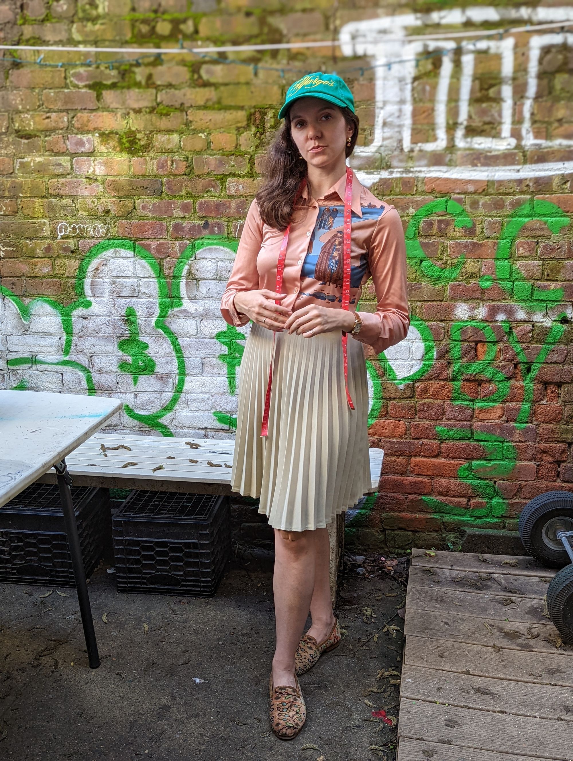 She also wore a sick vintage rayon shirt and one of the incoming Alfargo's Marketplace caps. Speaking of vintage, she runs Ram's Head Vintage on Etsy. Speaking of rayon...