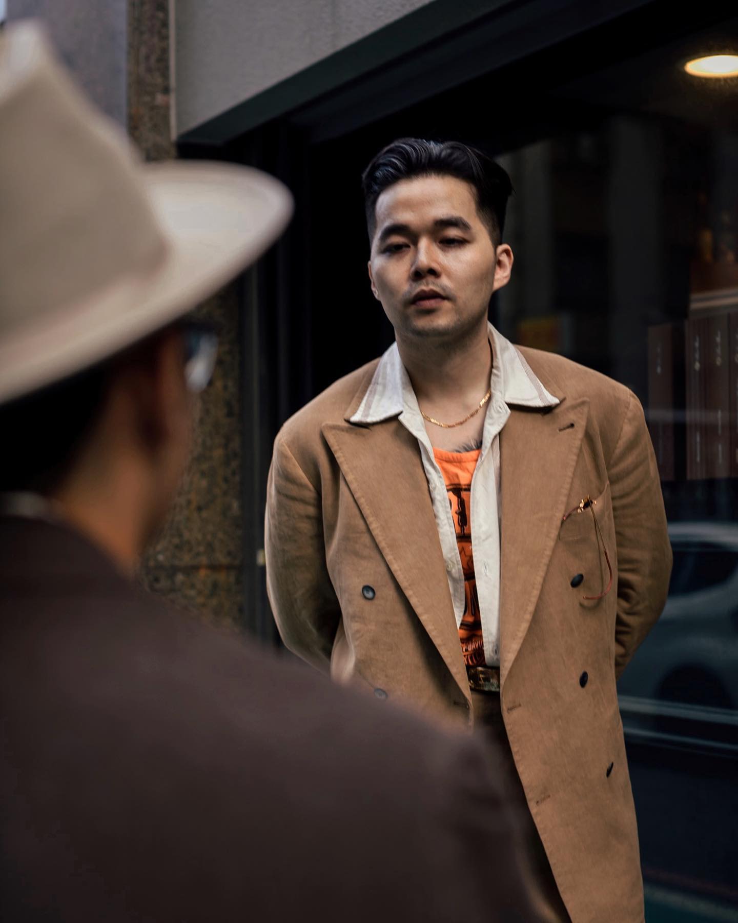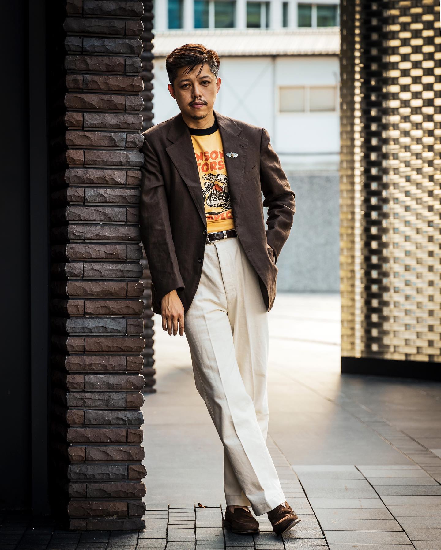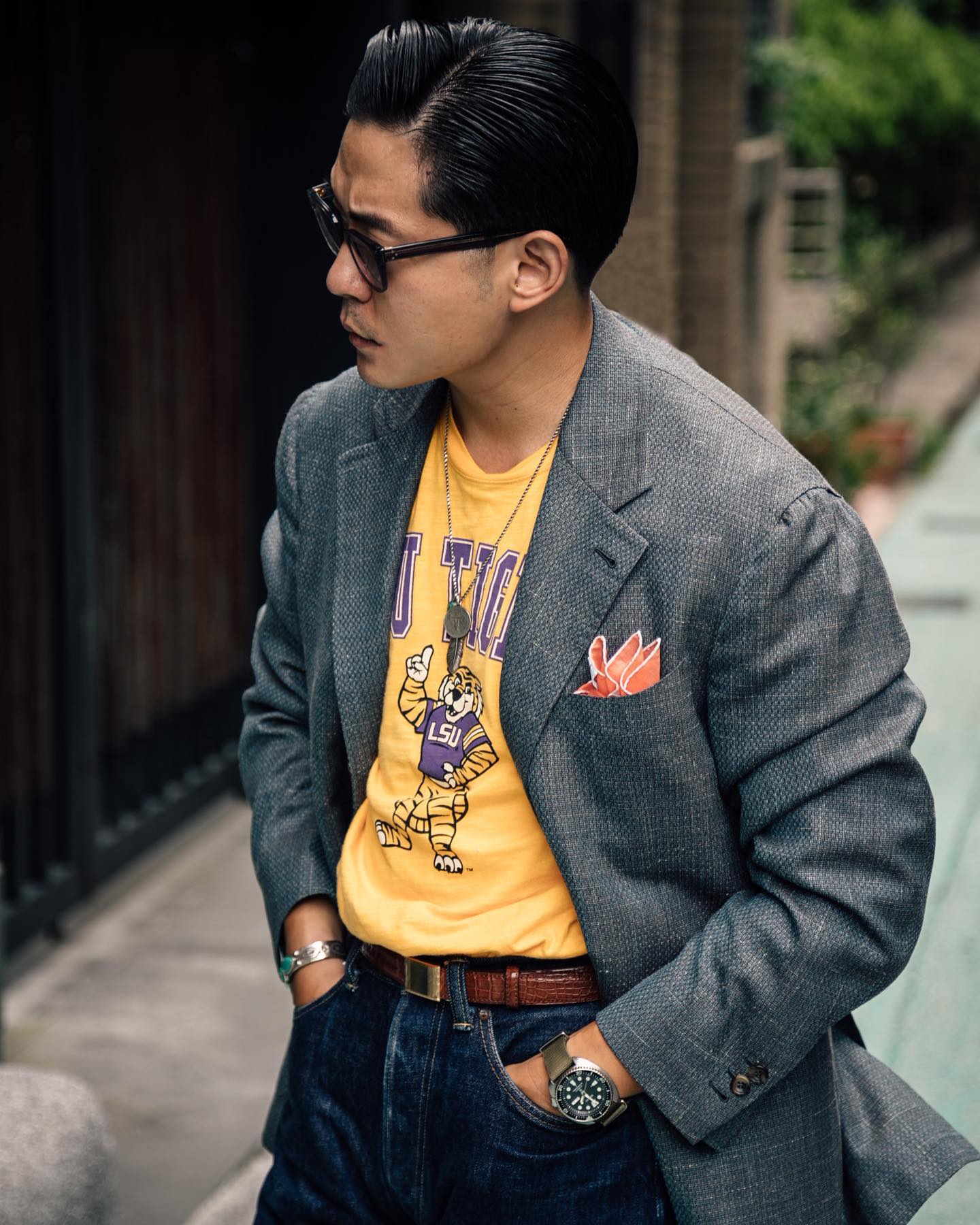 DH: Right. So, I do also want to talk to you about styling because I feel like, on your on your main Instagram accounts (@theanthlogy, @theanthology_tw), there's a lot of ties, there's a lot of woven shirts. It's a lot of proper tailored, classic outfits—and and obviously, you know, the blouson too, the knit t-shirts too. But then I see a lot of Anthologists—particularly, there's there's a lot of guys who will wear, say, your suits with graphic tees, and the like.