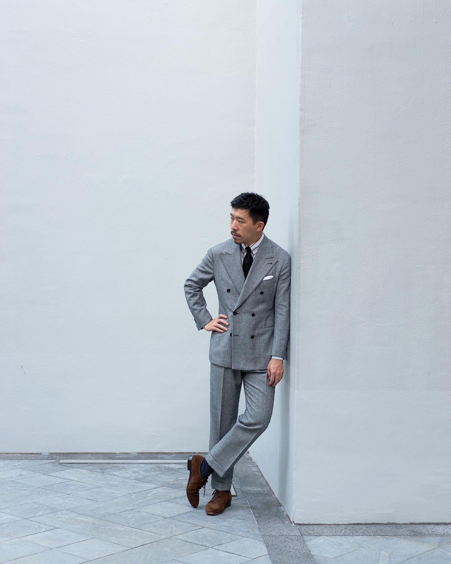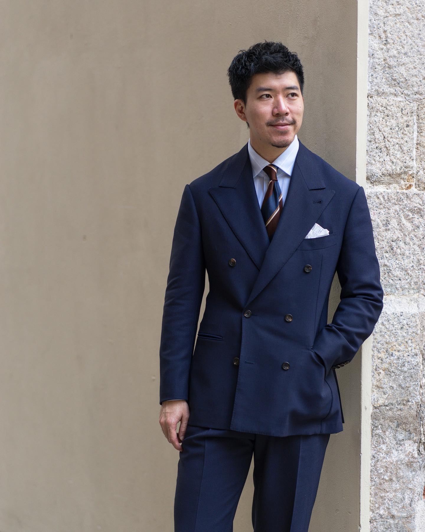 Hong Kong was, or maybe it still is, a very strong financial hub. So the typical bankers will come in for navys and grays, that sort of thing. The occasional younger generation, kids with a little bit of money, they would get sport jackets and like a lot more interesting stuff. So we are very lucky to have cultivated a cohort of very friendly diehards who are very good friends of ours, very young as well, who are very into the culture, but want a little bit of that modern twist. That's where The Anthology kicks in. So that's Hong Kong. A lot of lawyers, barristers, attorneys like yourself—we don't use that word in Hong Kong, but it's the same thing.