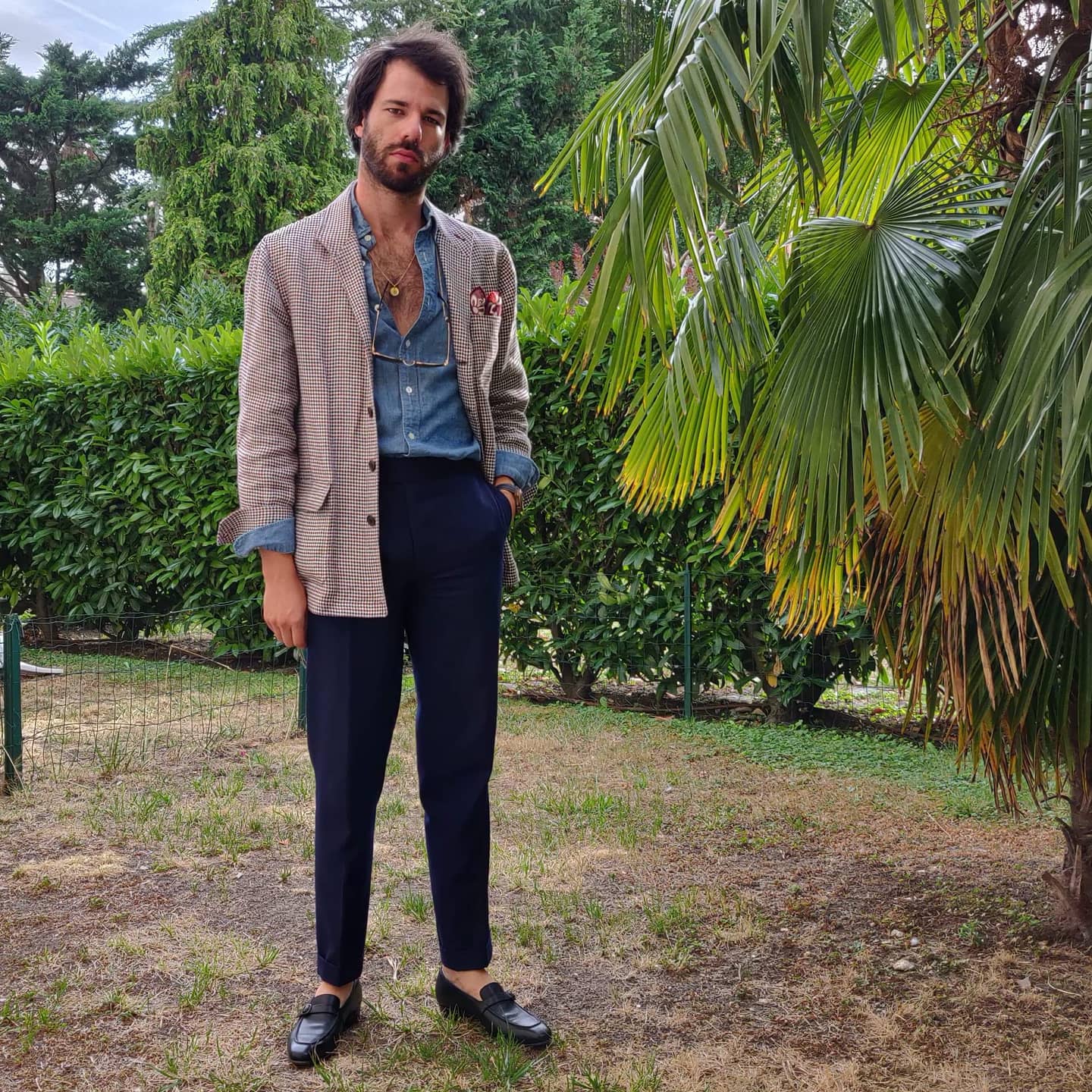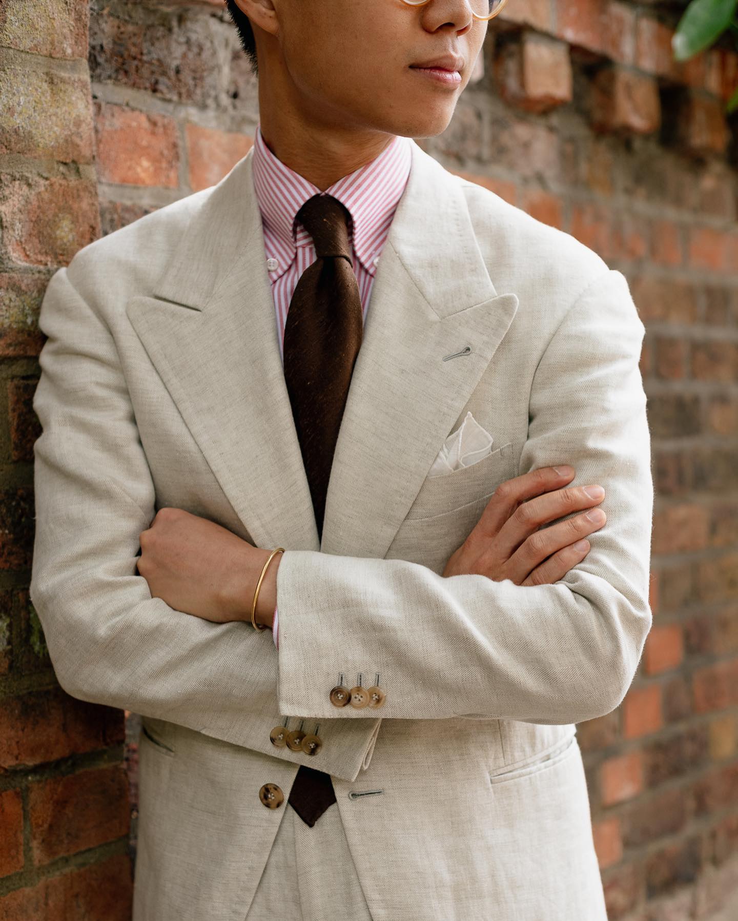 DH: Yeah. I think I featured you early on in my blog, in my article about dark brown linen, And I remember you had a dark brown linen double breasted suit with black buttons. And I remember reading the caption about the black buttons, and how you picked the black buttons for that suit.