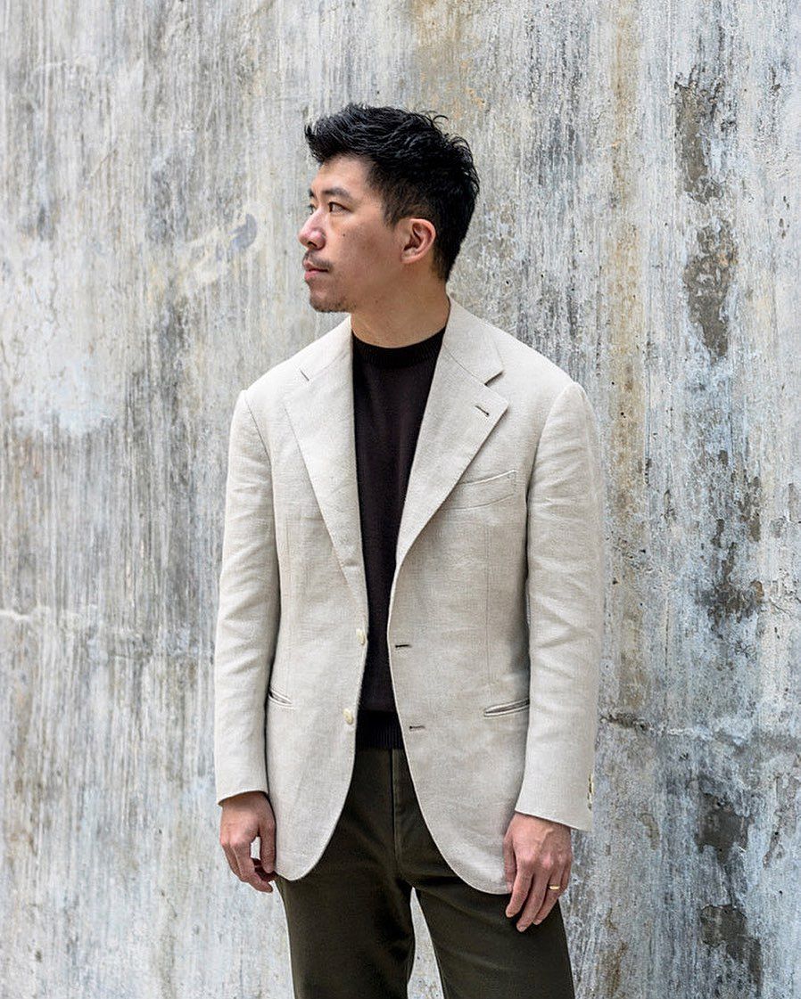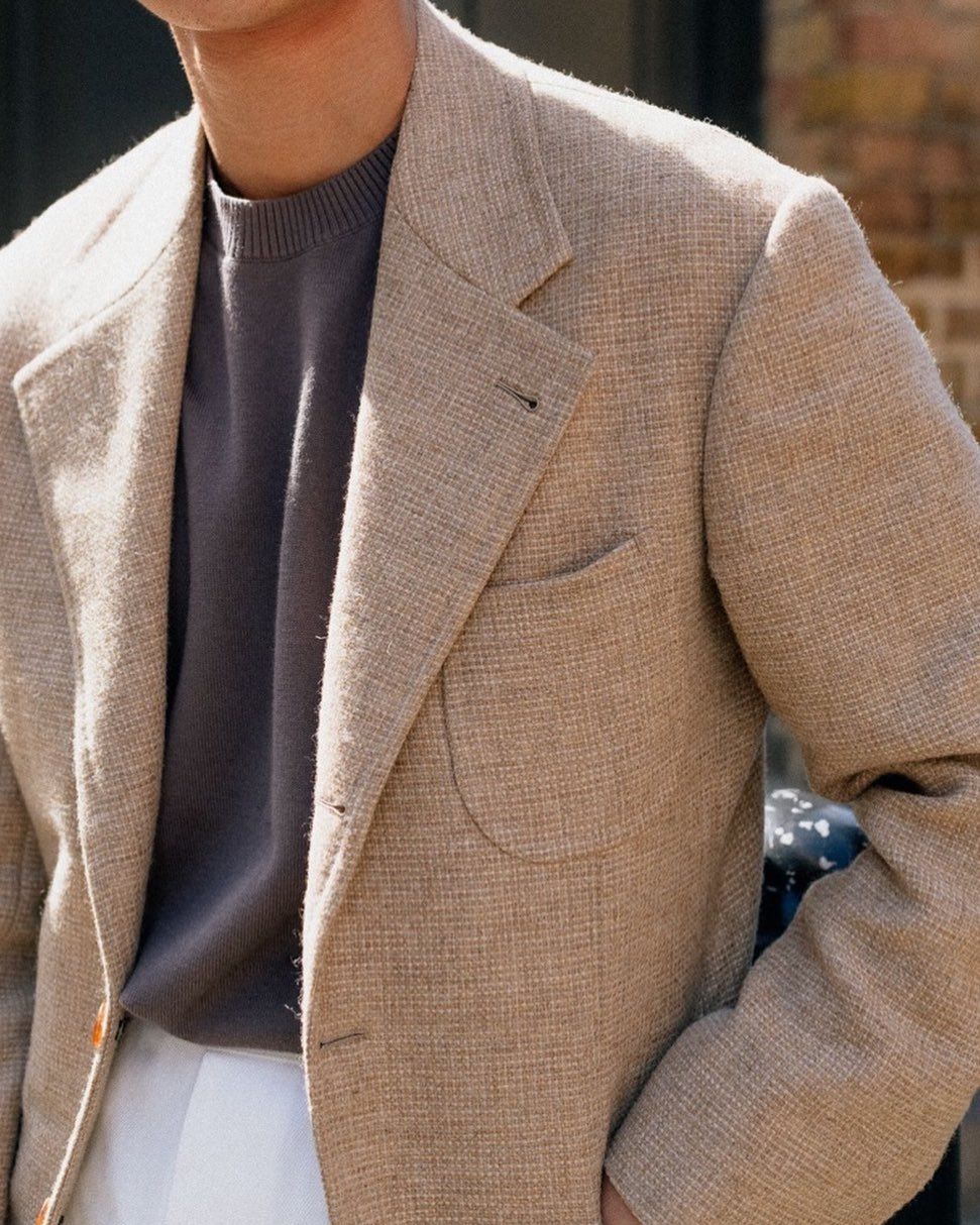 BT: Interestingly, this is only one of a few tweed jackets. Whenever we launch tweeds, there's a very specific reason to it. We don't always do tweeds either. We actually still focus on... wool cashmere, wool silk linens, linens. If anything, linens are really part of us. It's our bread and butter—especially in Asia, because it's hot.