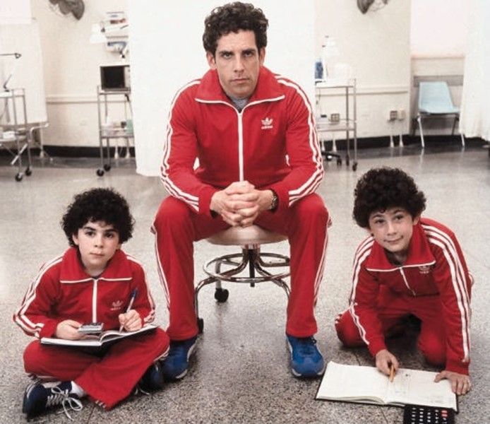 Unlike his brother, the Tennis star, Chas is not, primarily, an athlete. Rather, he is a whiz at business and math. Nevertheless, he almost exclusively wears Addidas track suits, and almost exclusively this bright red one. On a superficial level, the bright red athleisure symbolizes that Chas is angry at his father, and that he is never at rest, constantly in motion, working, caring for his children, or distracting himself from his troubles. But the track suits symbolize so much more.