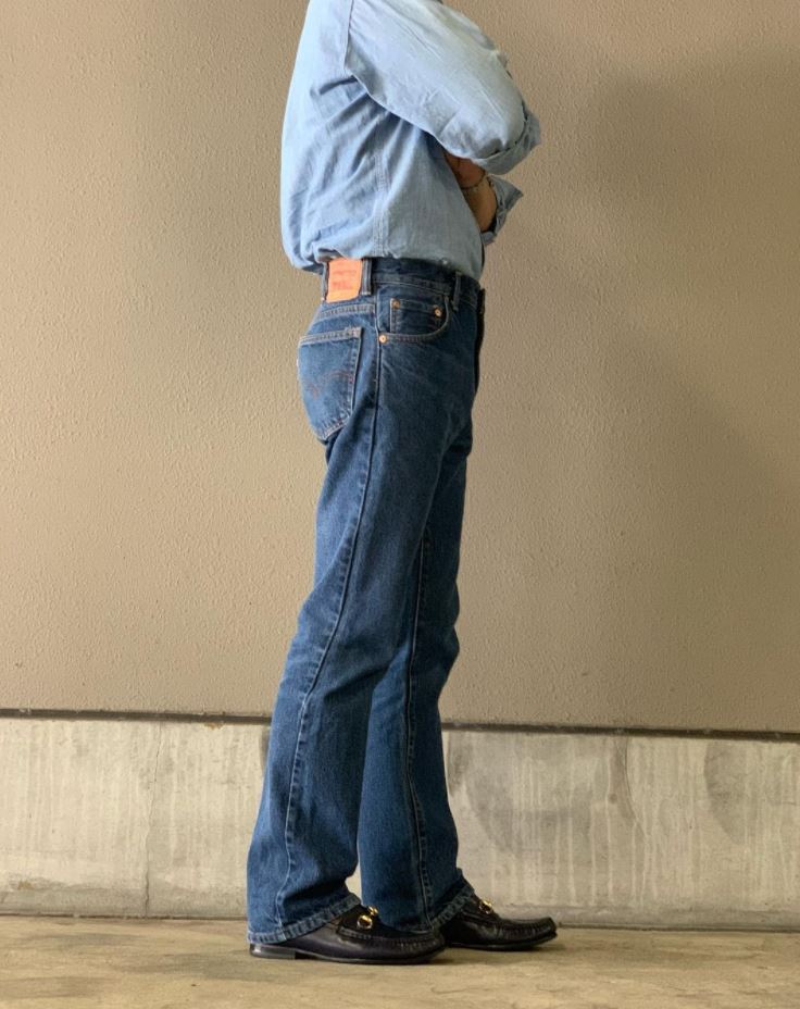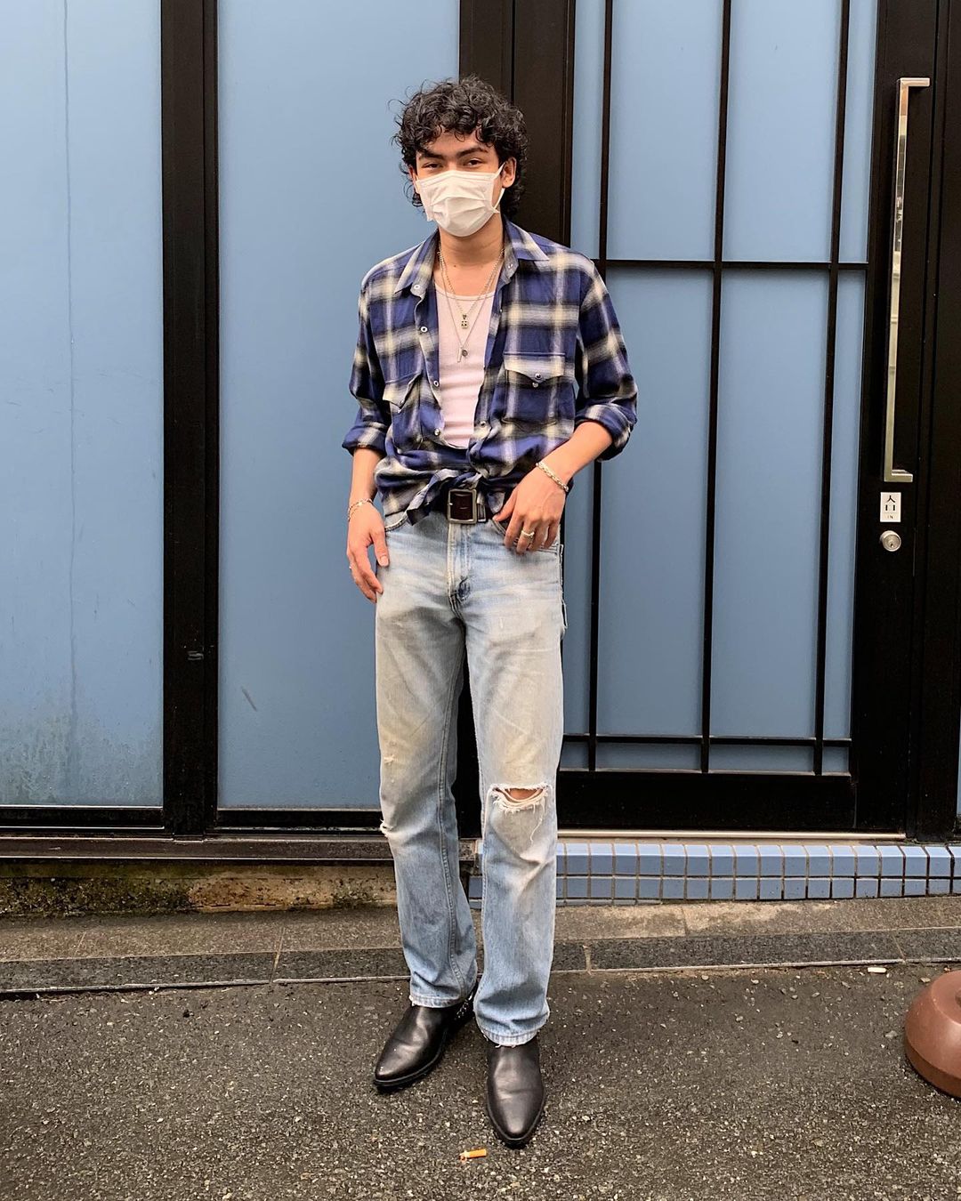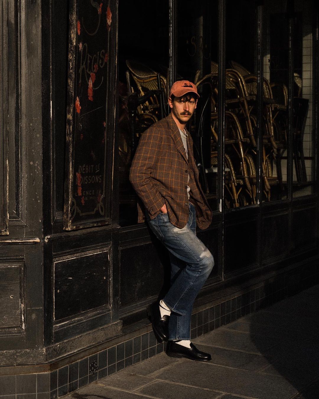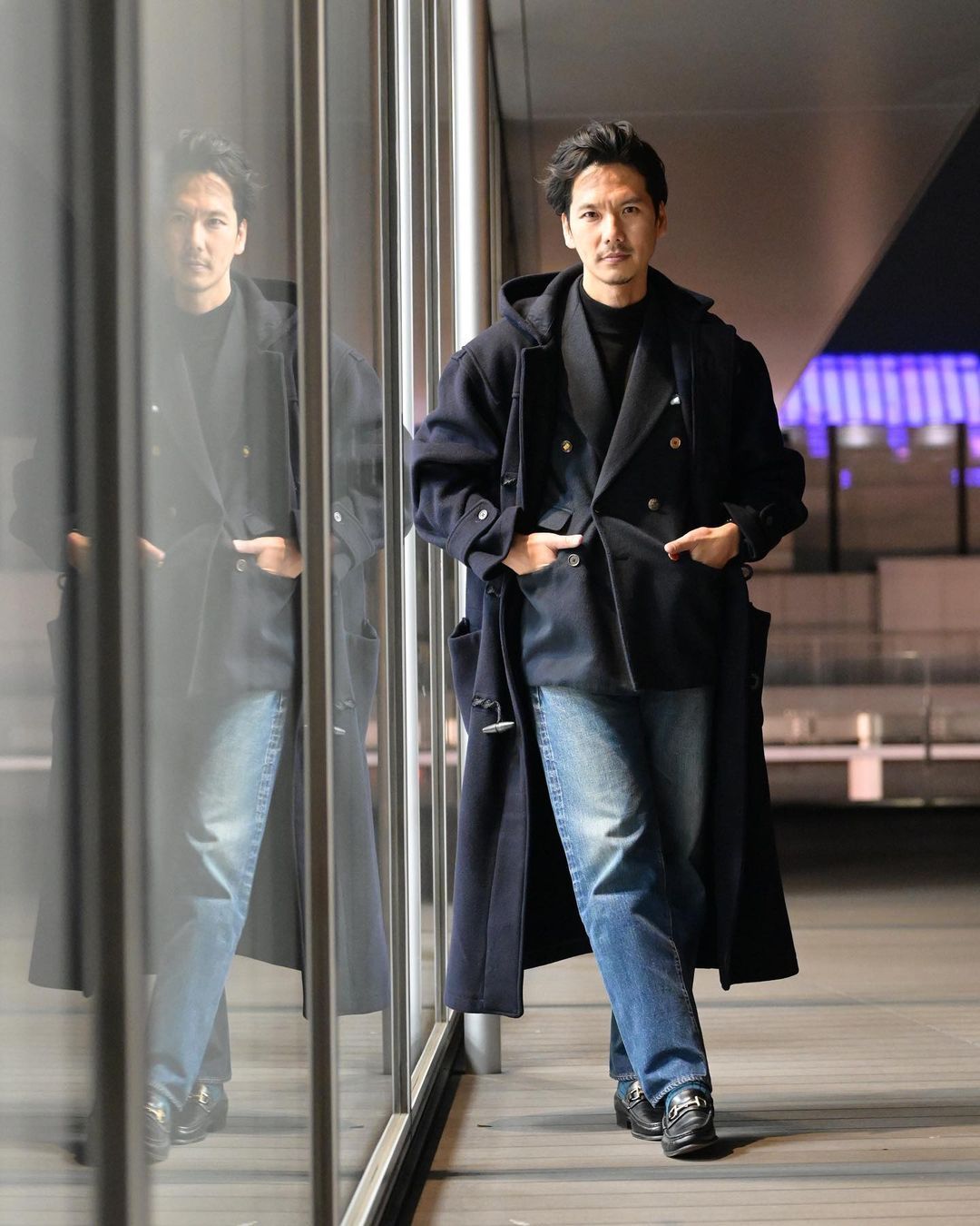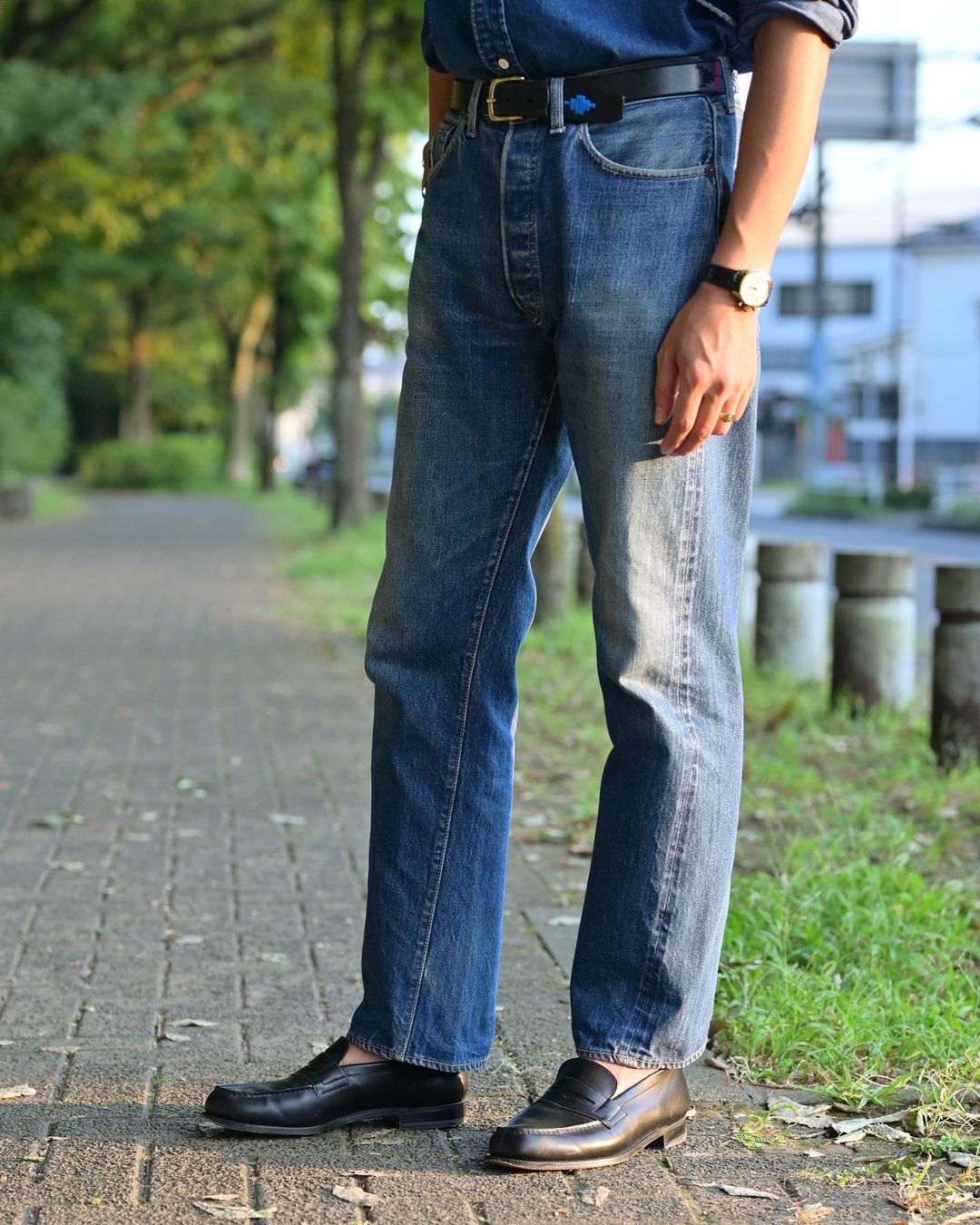 Shuhei Nishiguchi has a few different pairs of black horsebit loafers. Here, he dresses them down—denim, tee shirts or knits... Even when he's wearing a blazer, he looks distinctly relaxed.