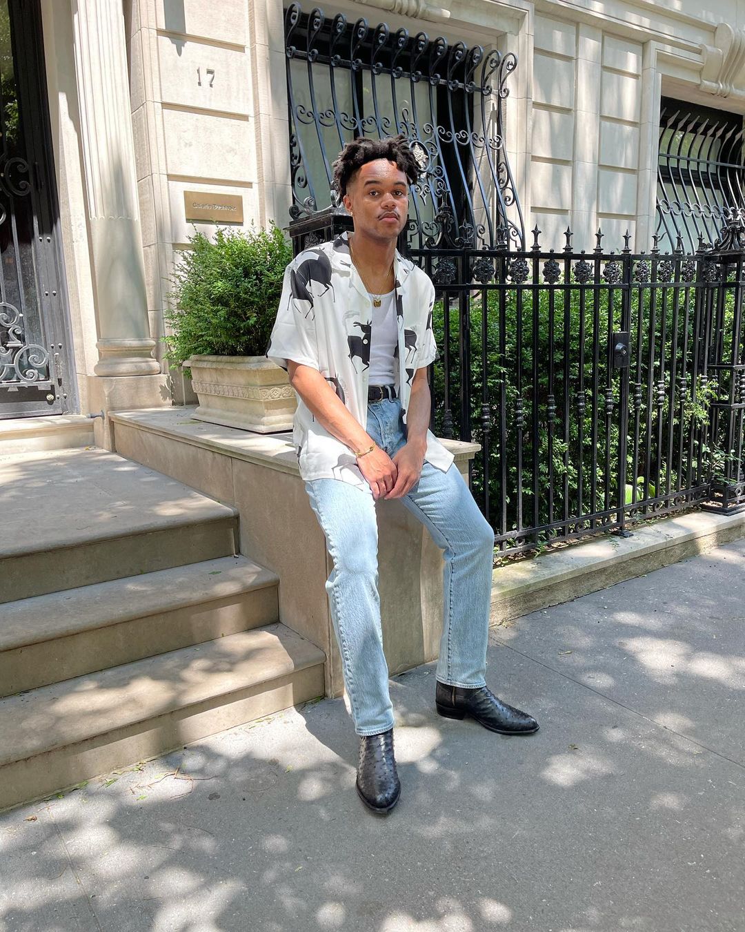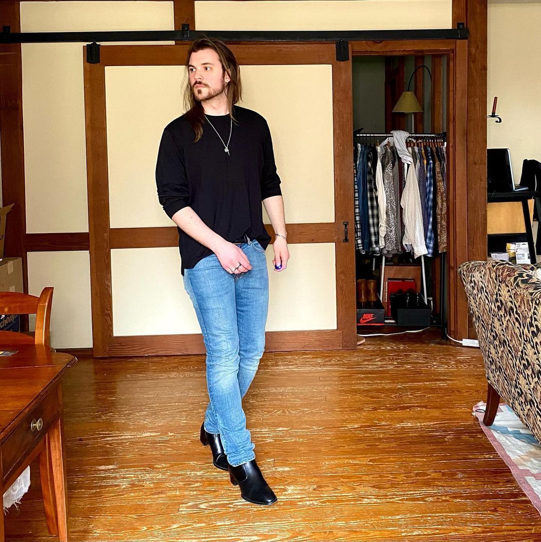 As a side note: while pairing black with blue, in general, has been frowned upon, that rule is fairly specific to odd jacket-trouser combinations. I don't think there's ever been much stigma on black shoes with navy trousers, and stark contrast is the only oddity when it comes to black and light blue. I don't think of the color interaction alone as being too groundbreaking. I do think shiny leather does something nice against flat and drab denim—maybe that's a part of why it works. But let's focus on the how, not the why.