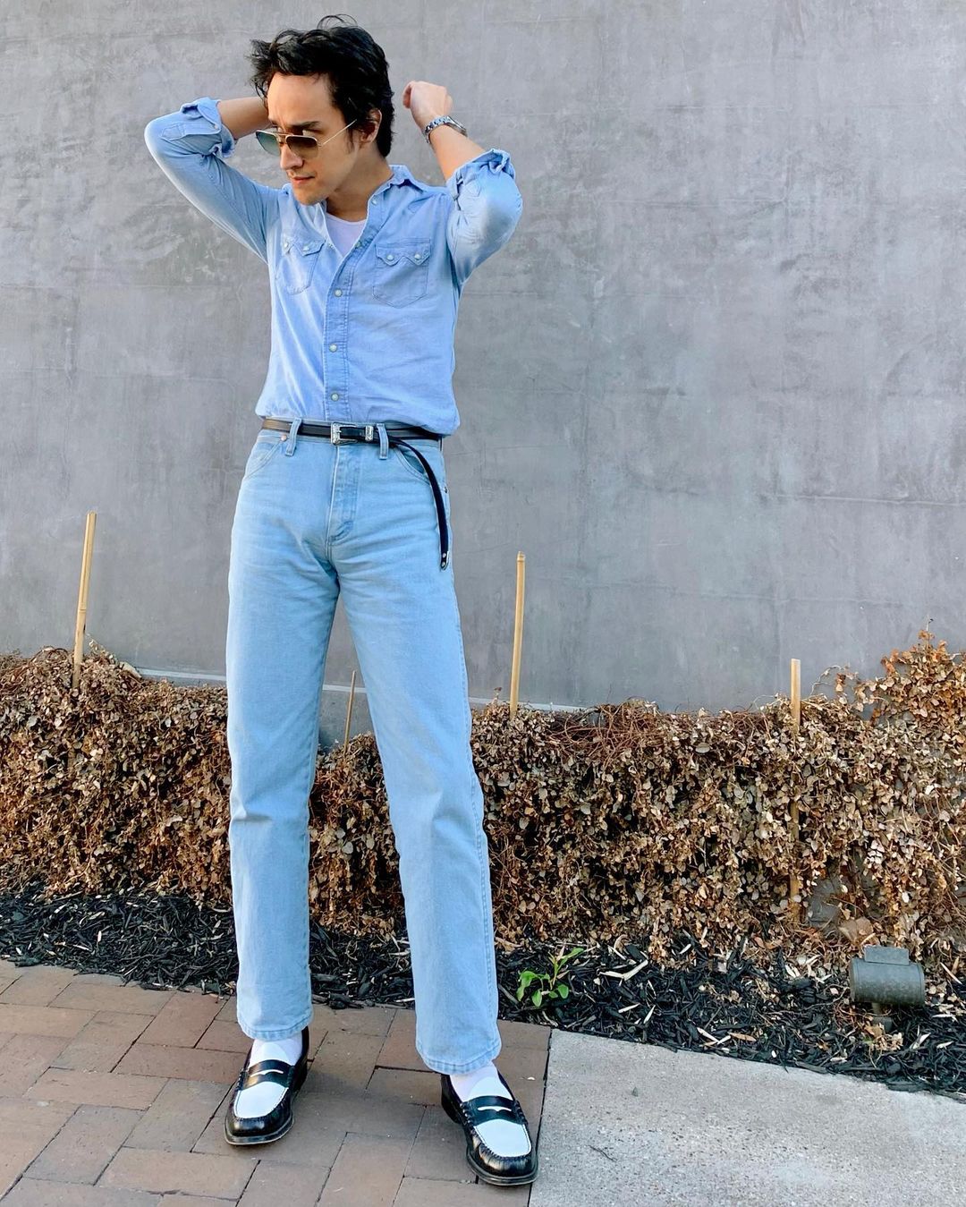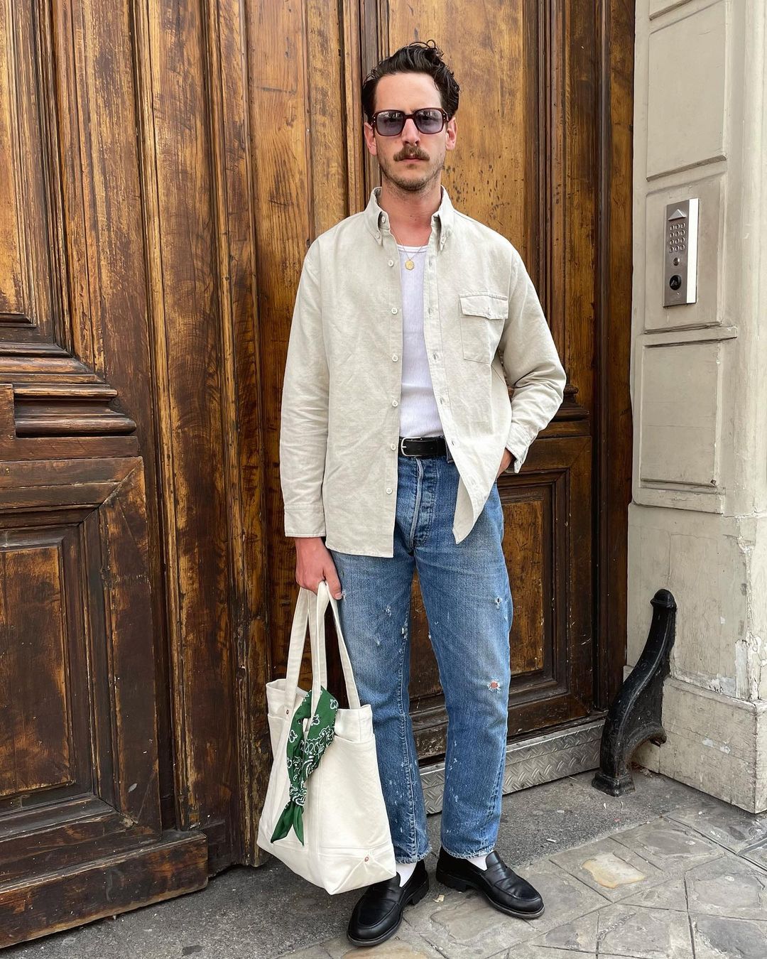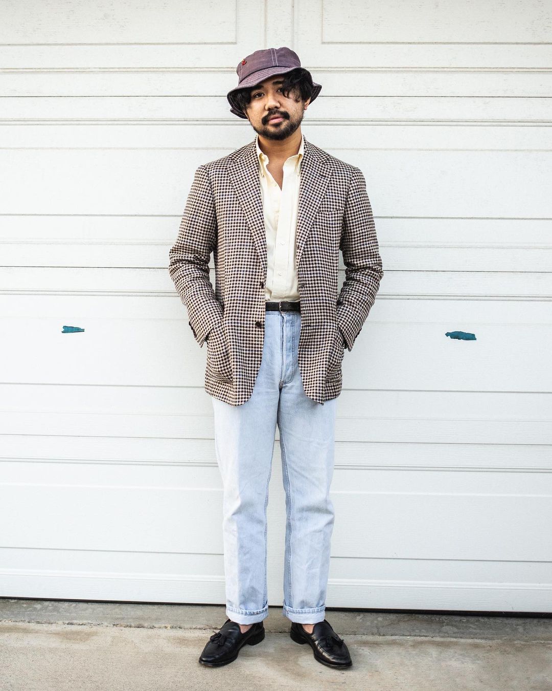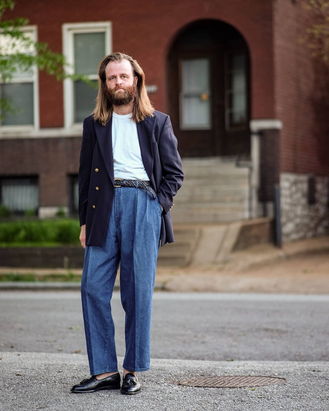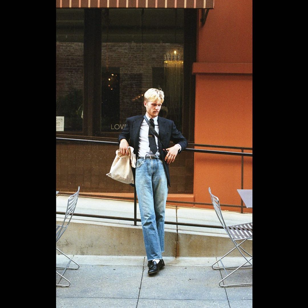 The top half of each fit here—well, of the six you can see—is completely different, and yet, the nigh-homogenous bottom halves all work. This shows the combination is versatile; it can be used in a canadian tuxedo, in a simple casual outfit, in preppy style. Vintage or modern, cool dude or corny dad. Whatever your vibe, you can try this out.