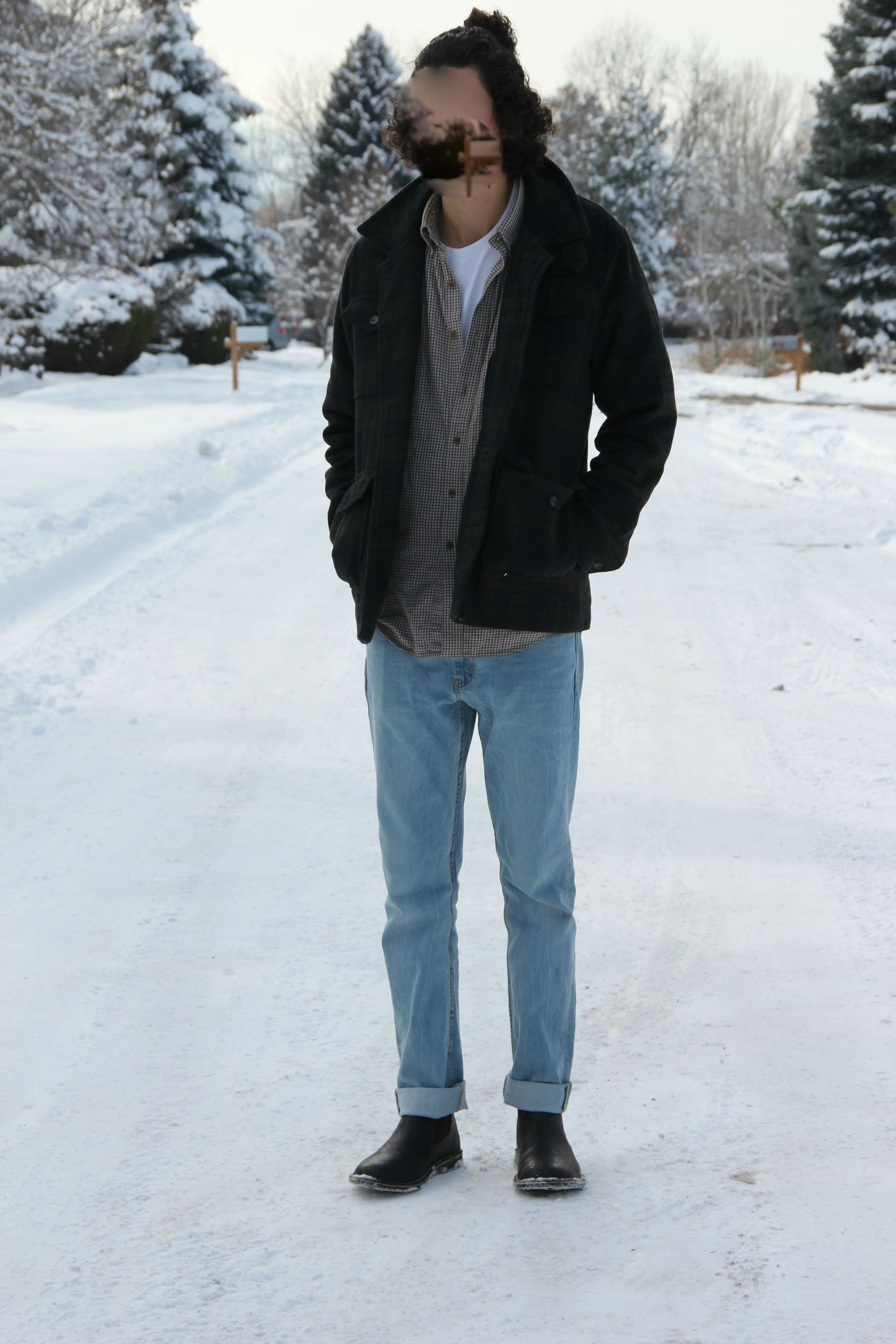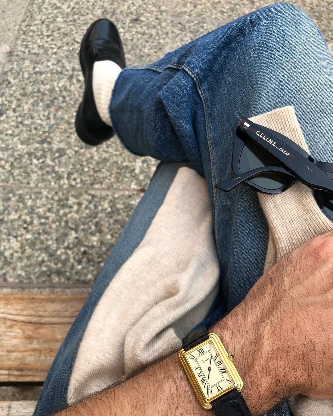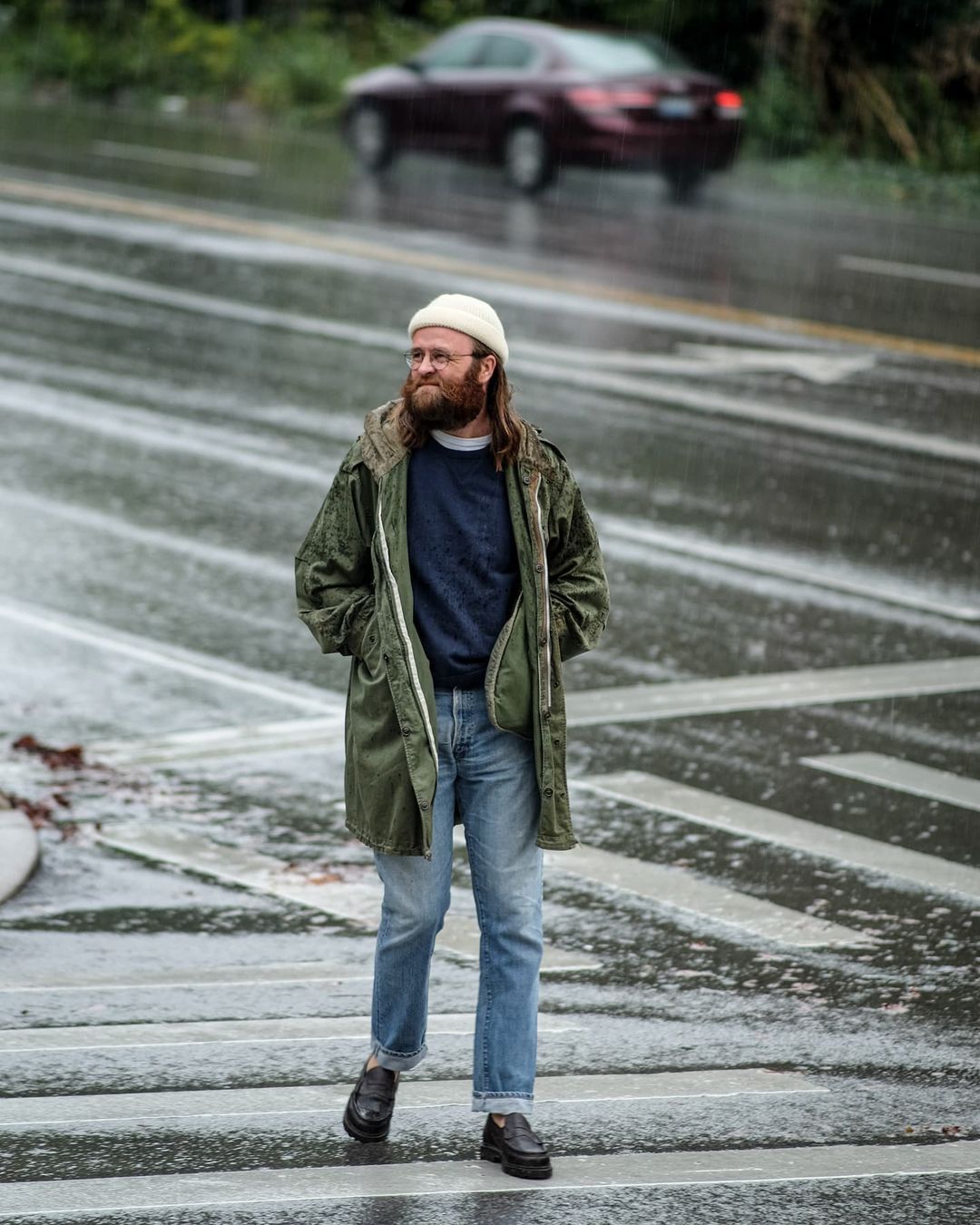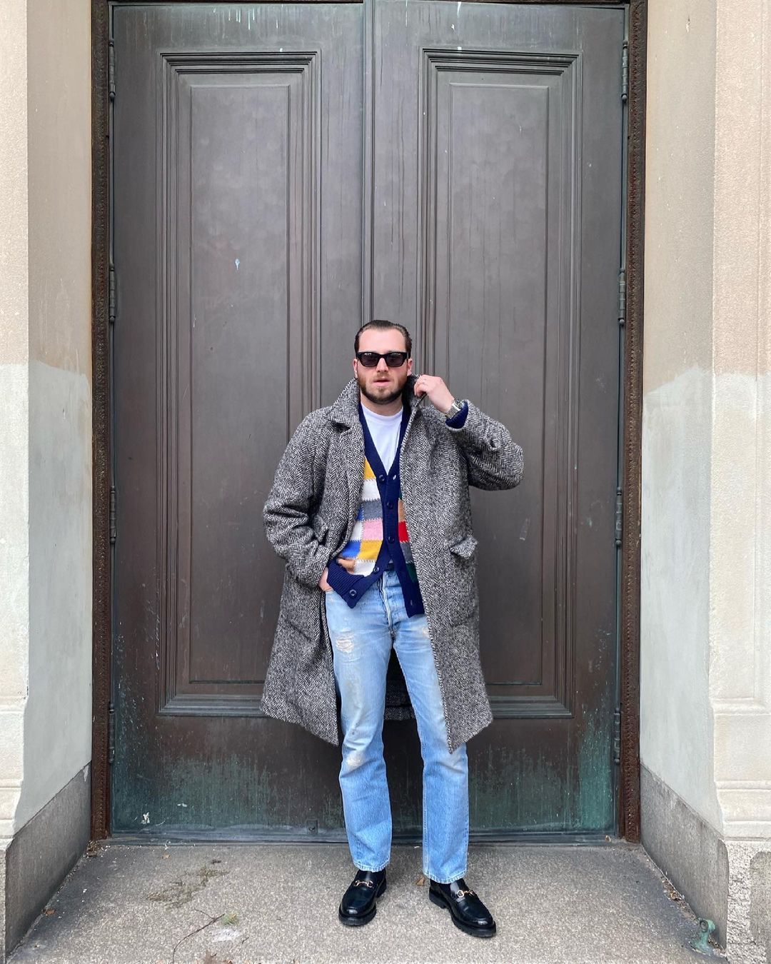 The top half of each fit here—well, of the six you can see—is completely different, and yet, the nigh-homogenous bottom halves all work. This shows the combination is versatile; it can be used in a canadian tuxedo, in a simple casual outfit, in preppy style. Vintage or modern, cool dude or corny dad. Whatever your vibe, you can try this out.