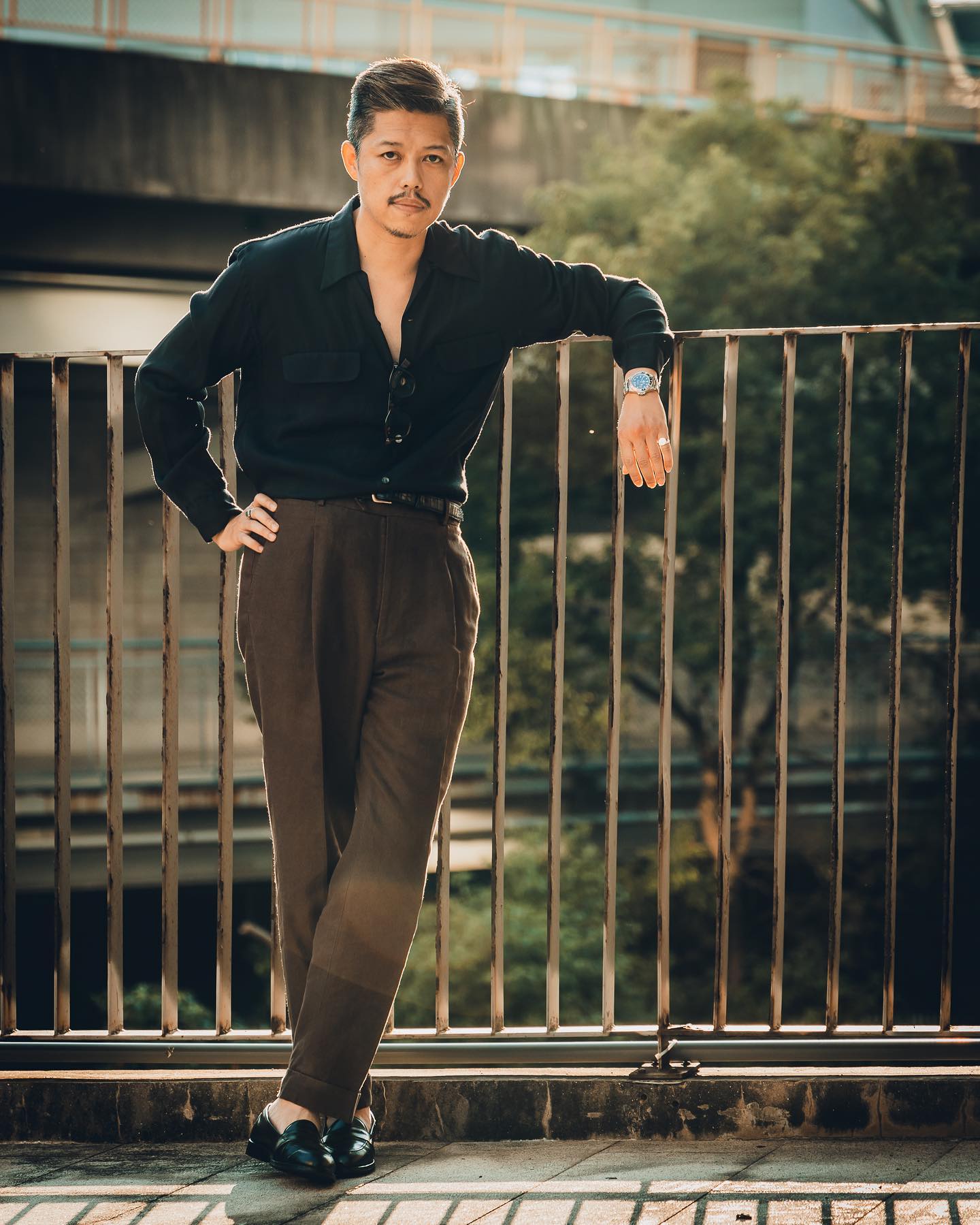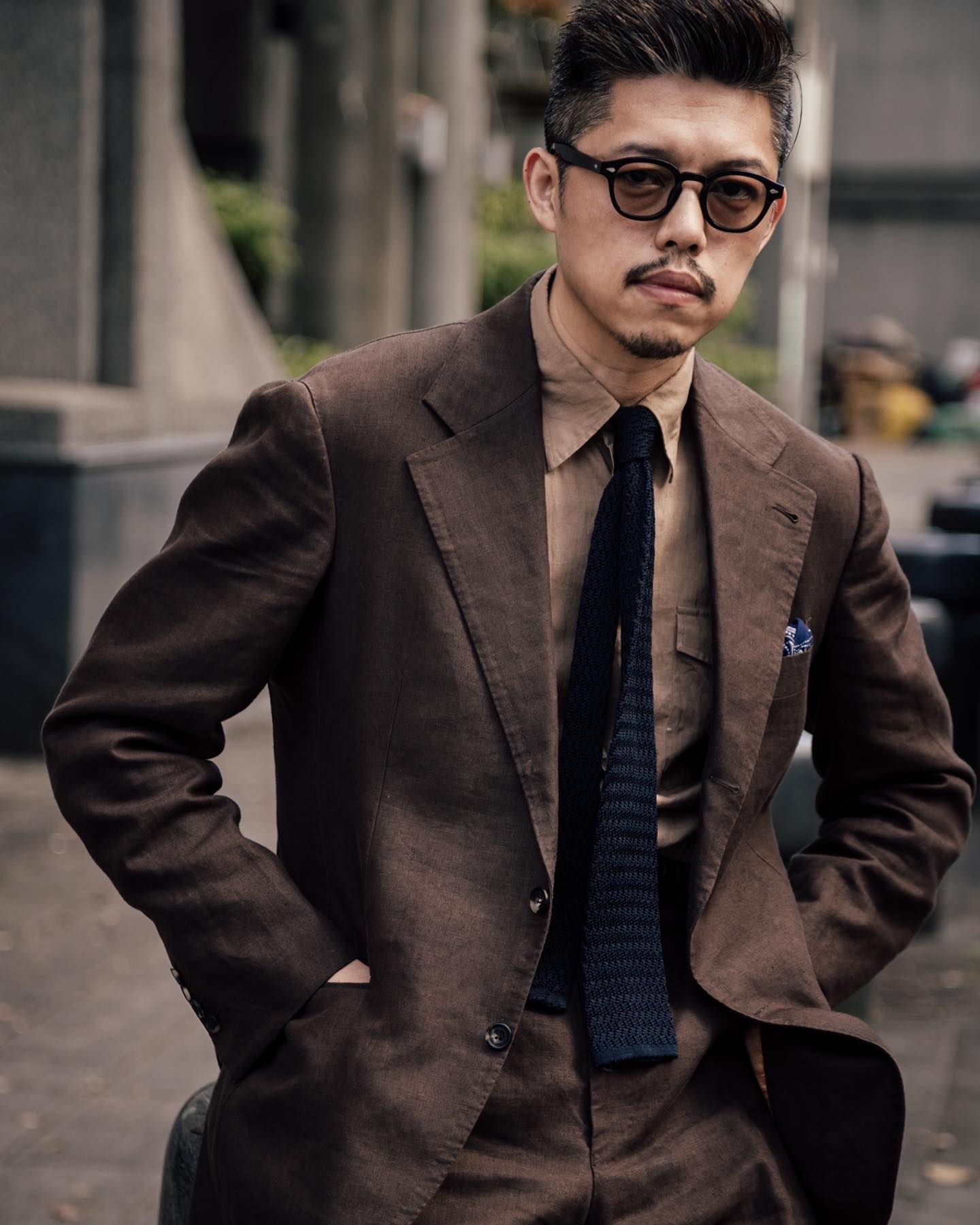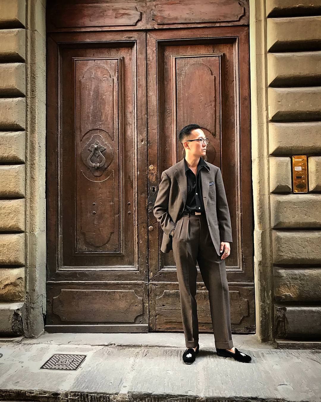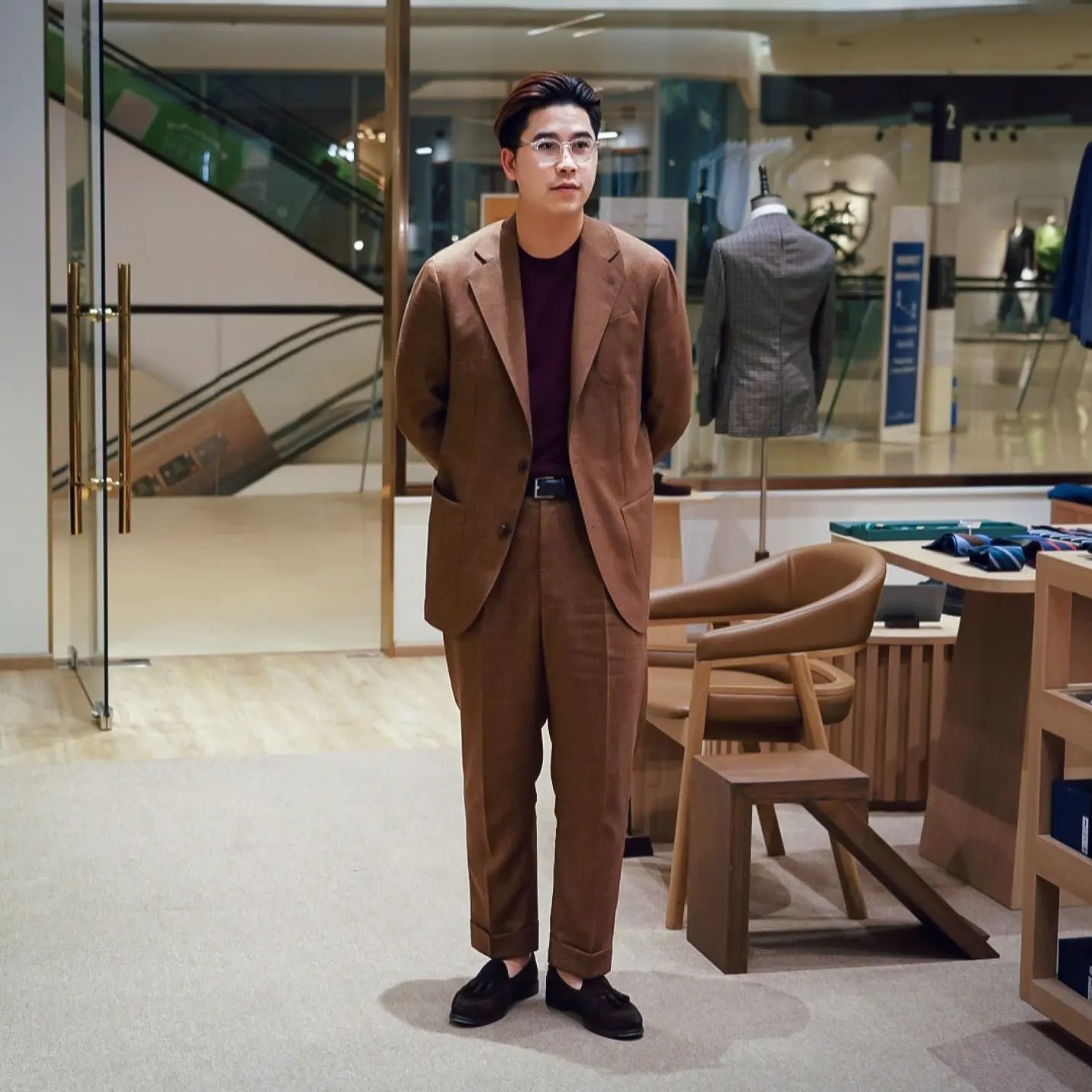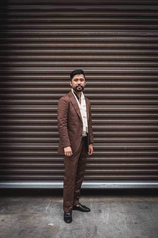 - What's On with Mark Cho of The Armoury, talking us through his brown suit, black tie, black loafer combo.
