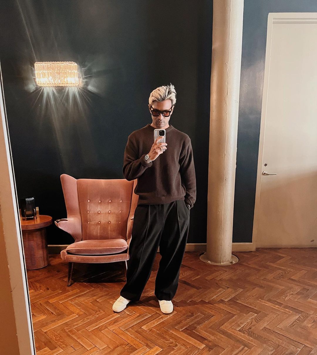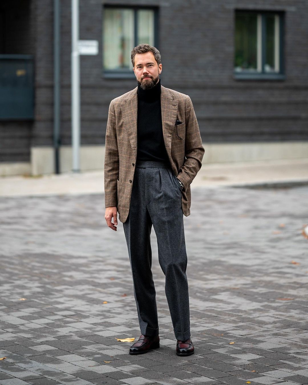 I'll also note that I just don't see a lot of black suits out there. You'll see odd black trousers, but I don't have any relevant inspo with brown suits. I'm sure a brown suit and black knit would work beautifully together, though, try it out and let me know how it goes!