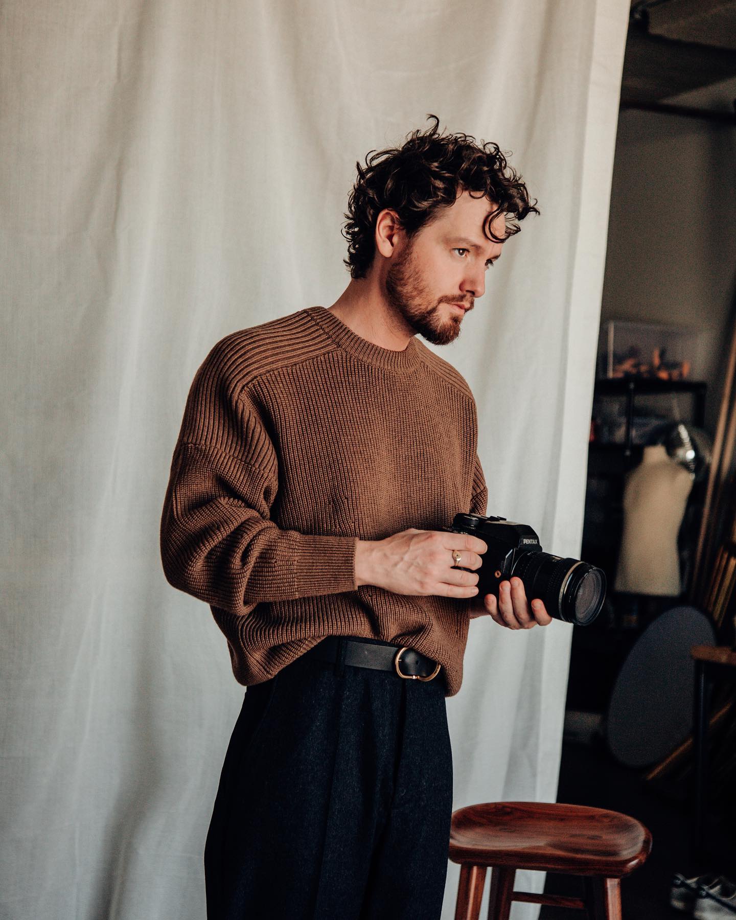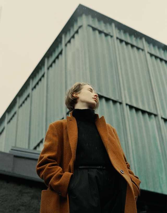 That said, you'll see some patterns. I notice, in particular, a lot of knits—turtlenecks, in particular.