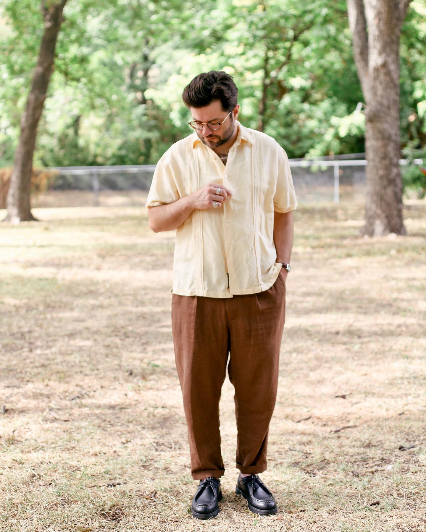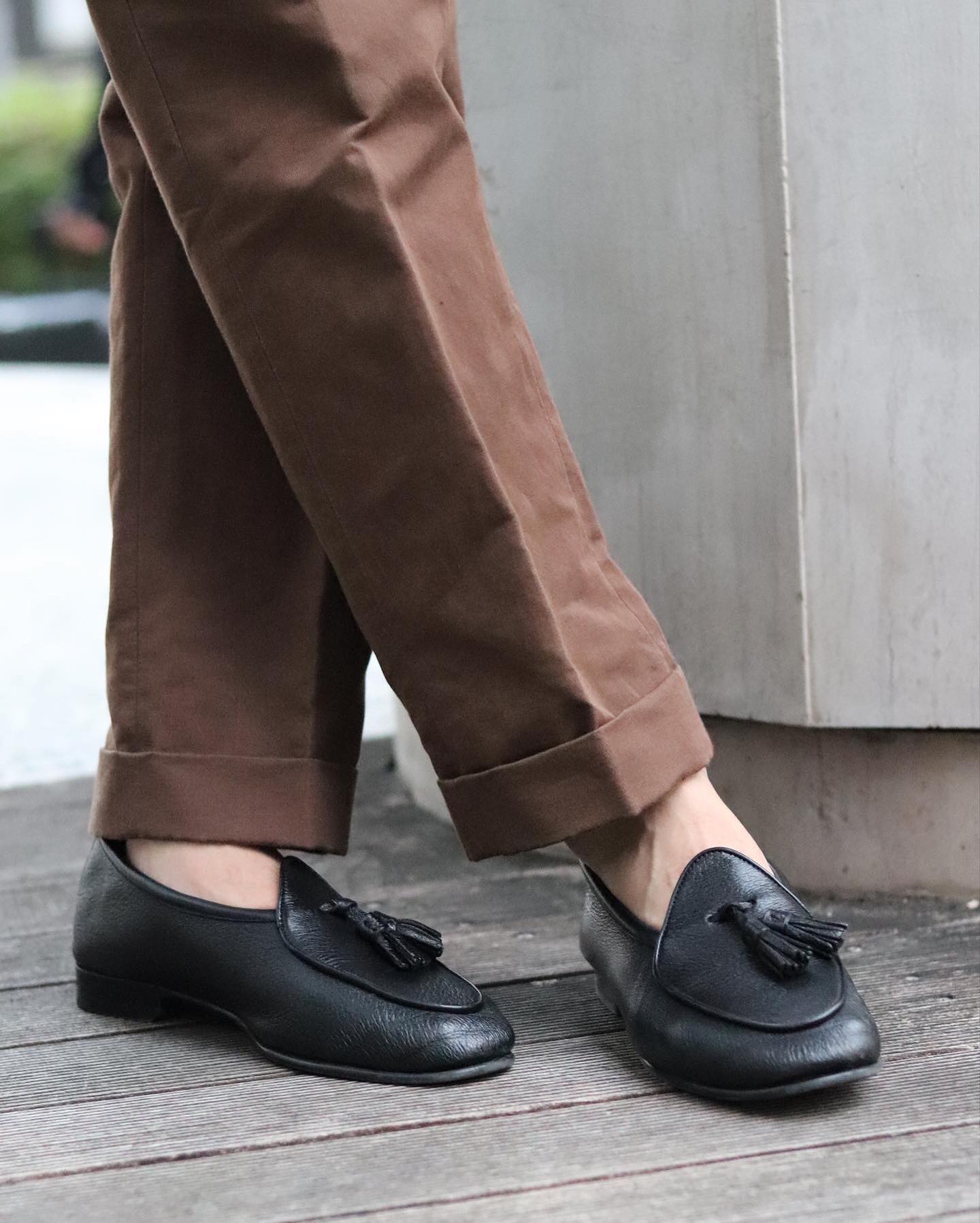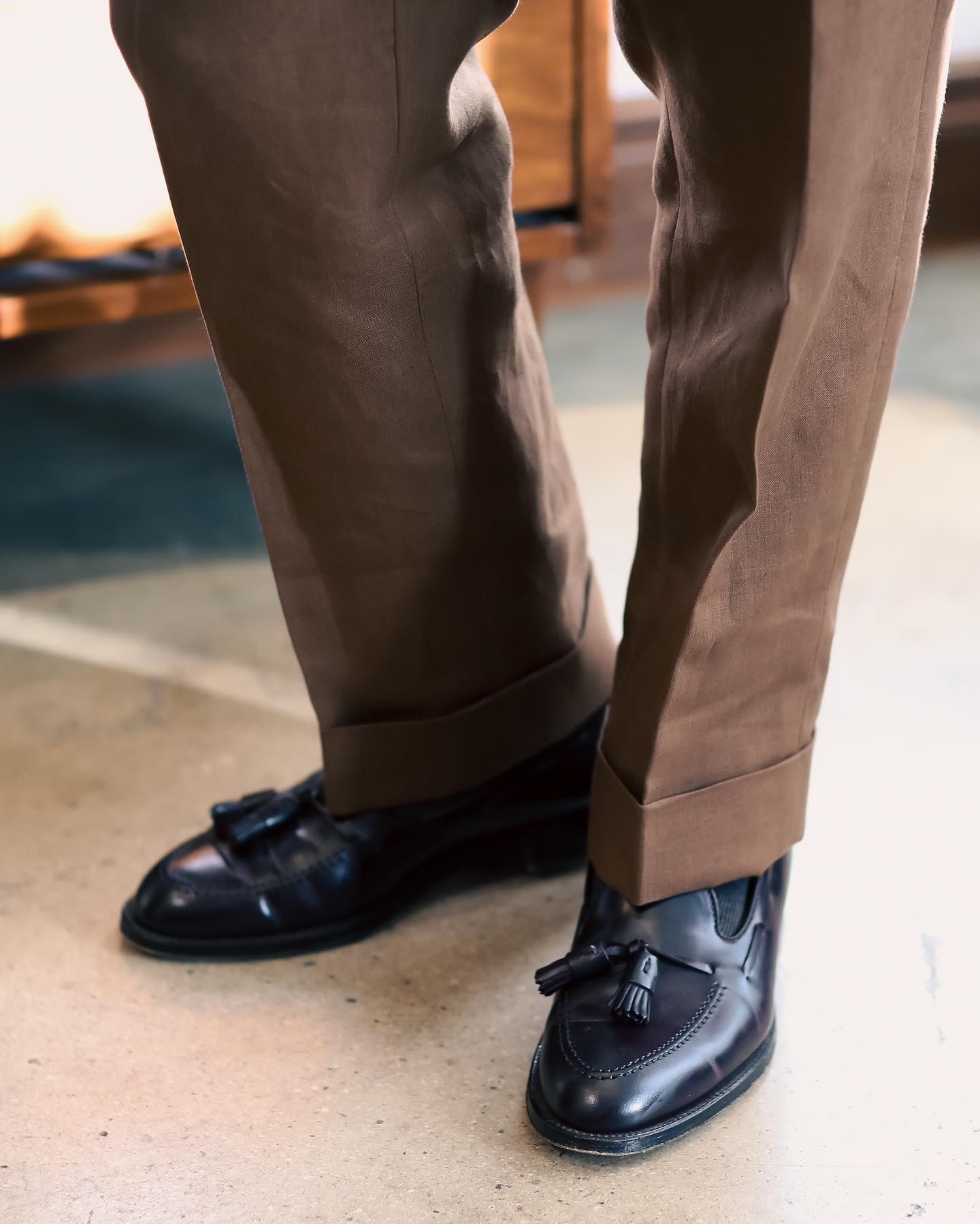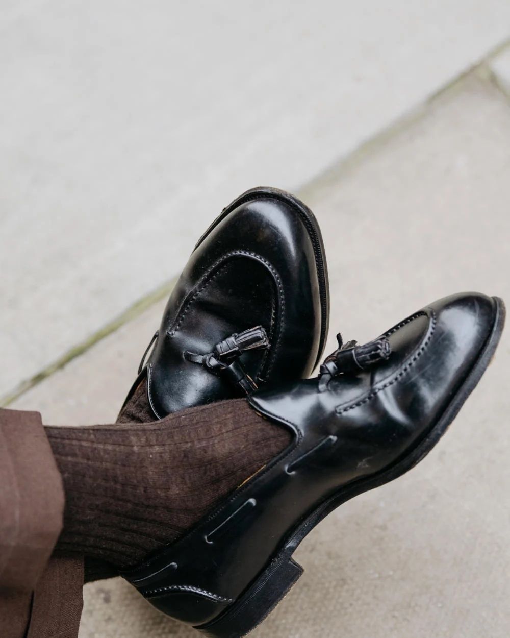 So you've already seen some cases of brown pants with black shoes and vice-versa above. But let's keep going. Some photos focused on the footwear, and even some cases of two-tone footwear that just looks great.