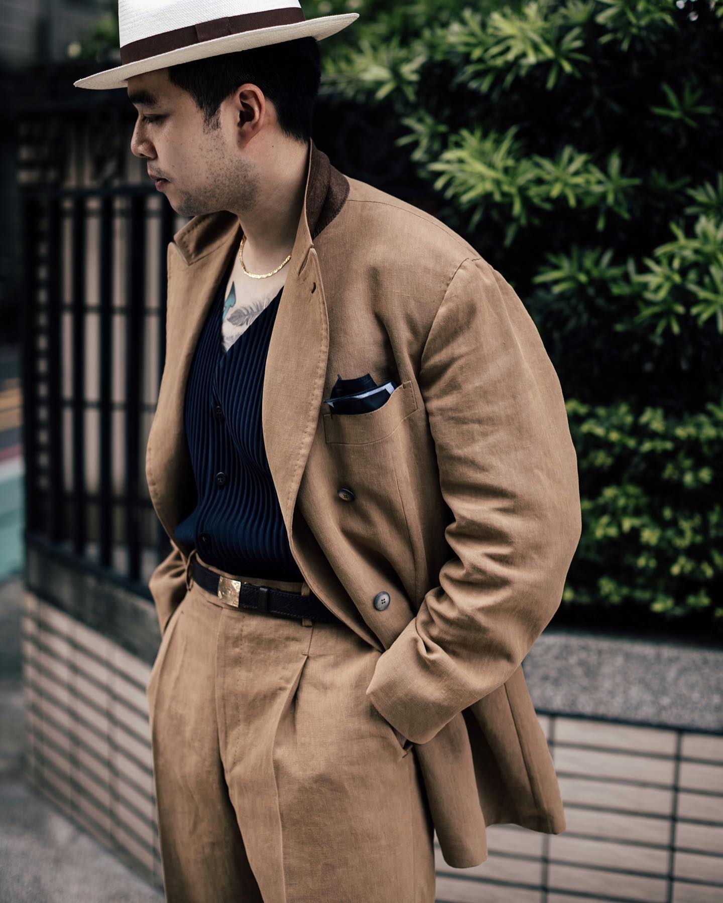 - Chocolate Eclair: Dark Brown Linen in Tailoring. Note, particularly, The Anthology's take with black buttons right on the brown suit.