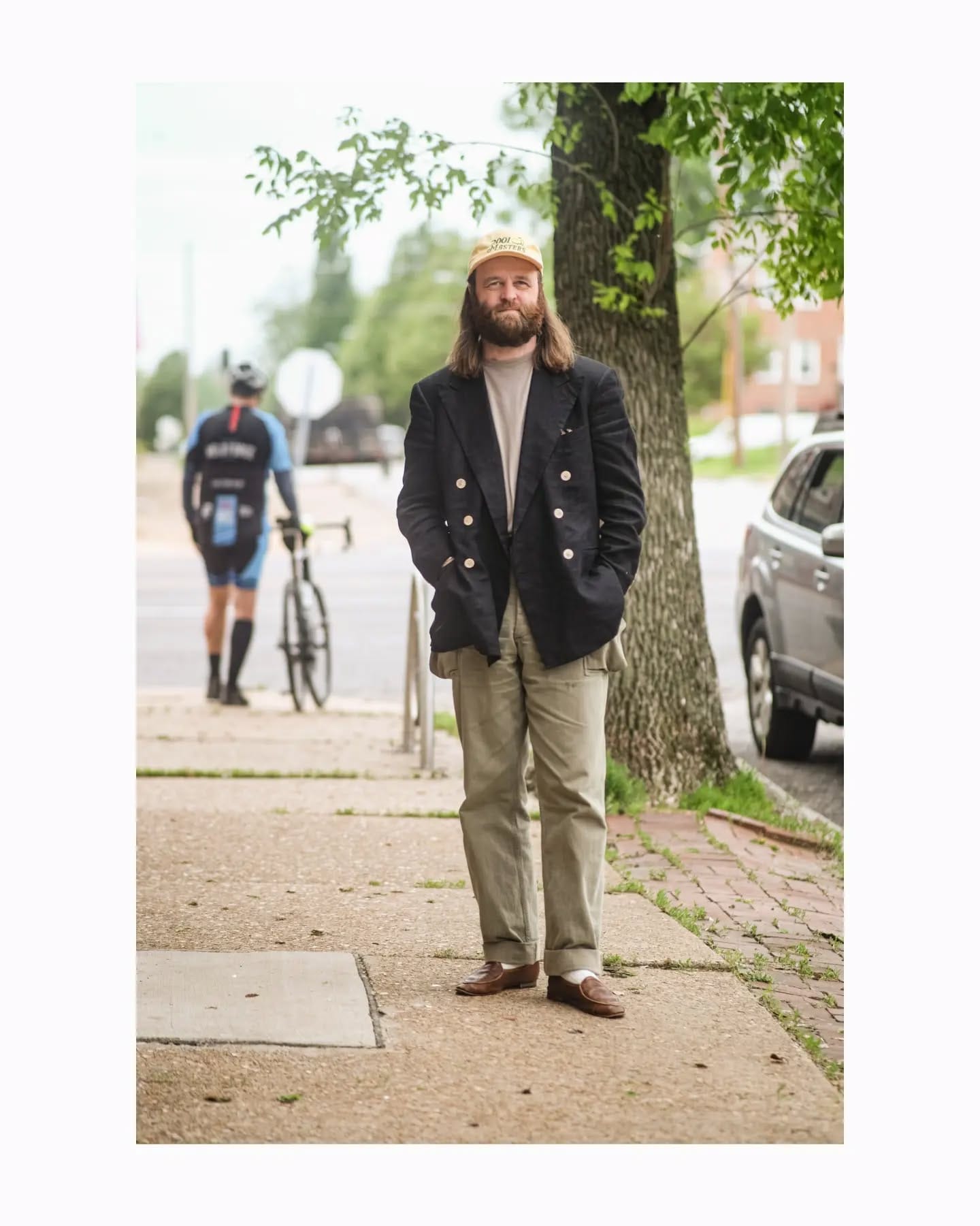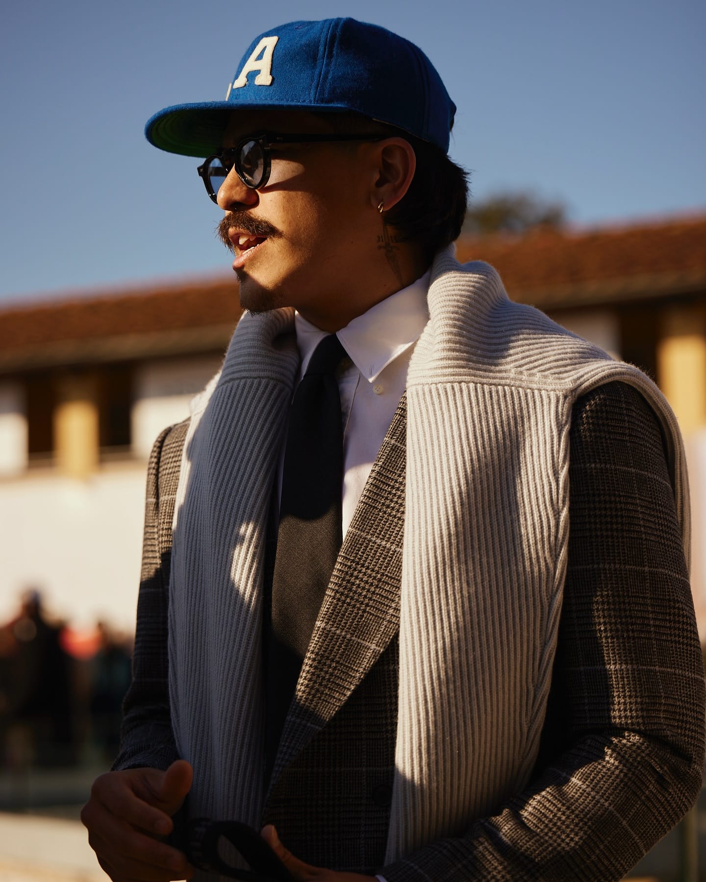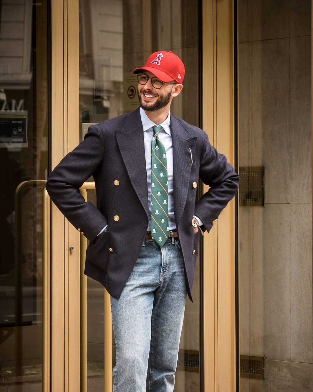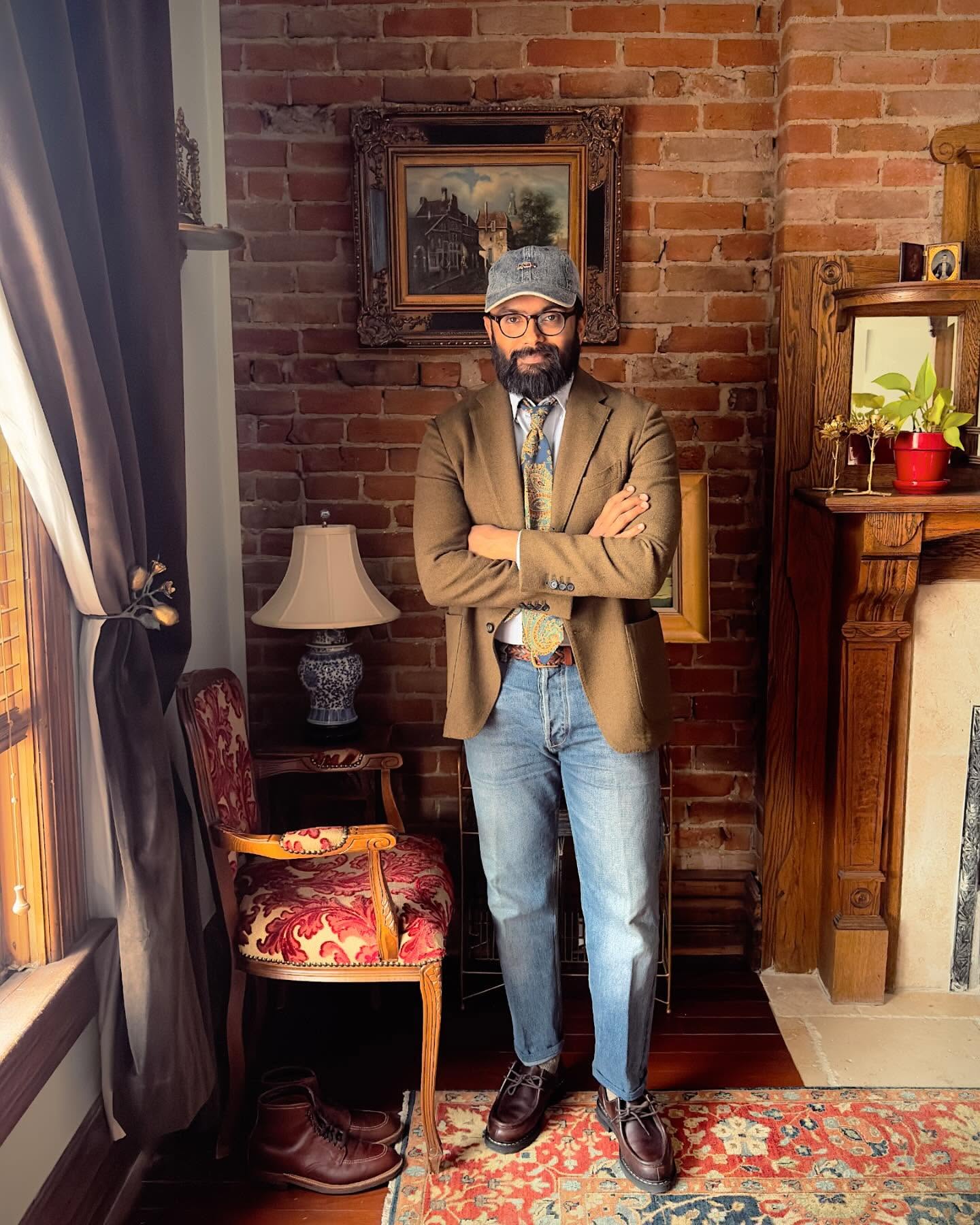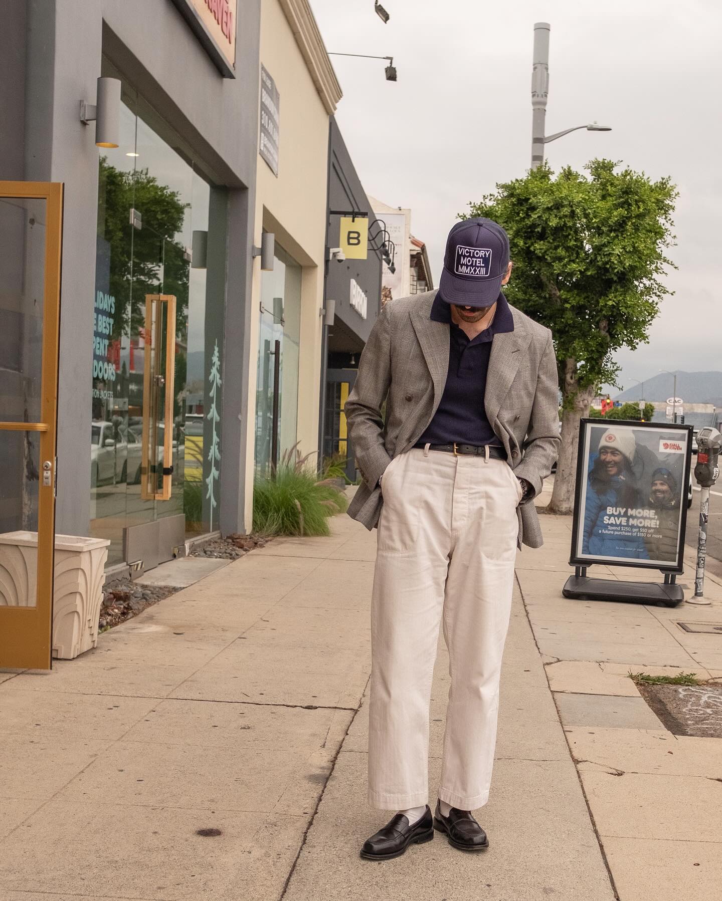 - Dress up, use the ball cap for some formality contrast, do that sort of high-low thing with intentionality.