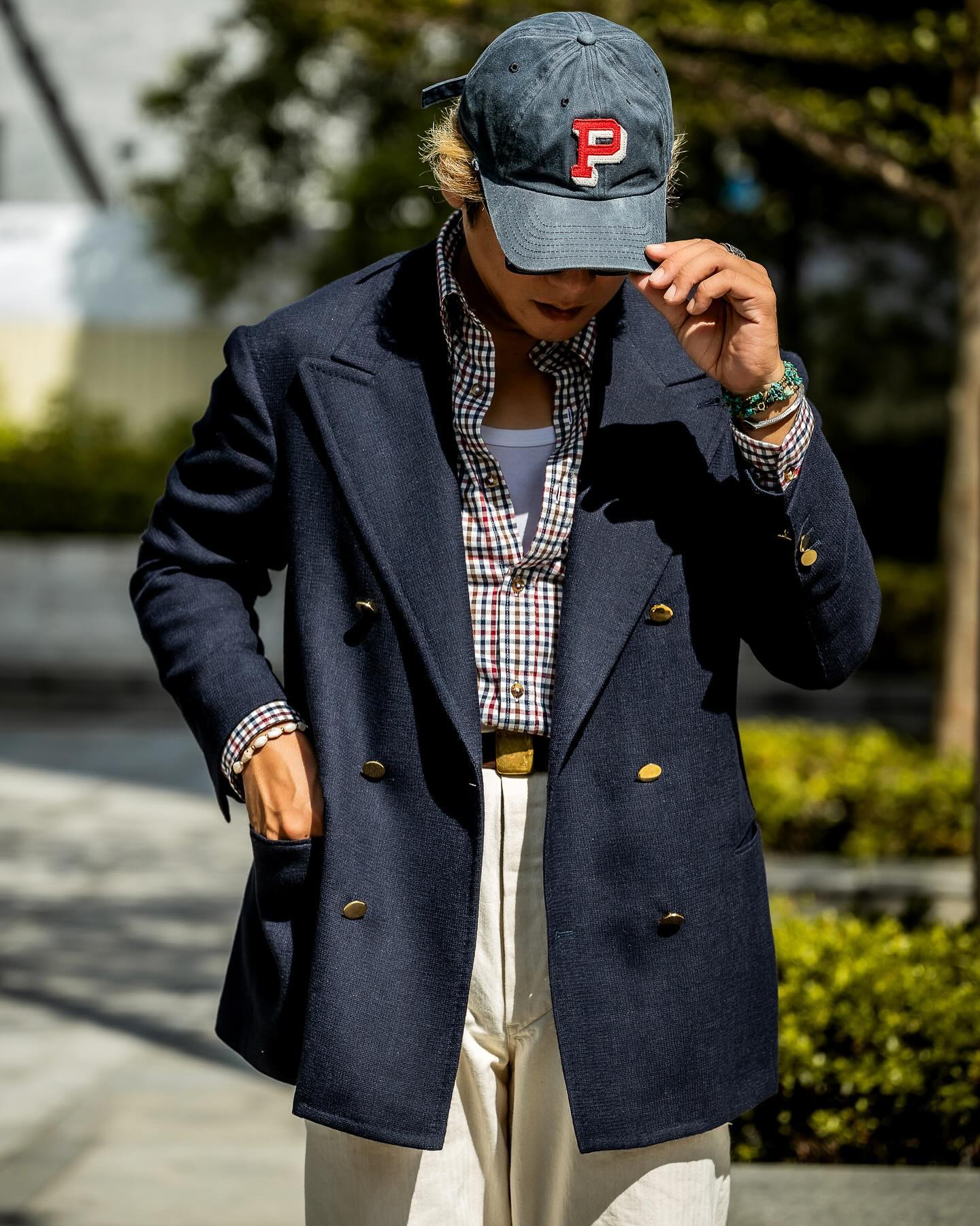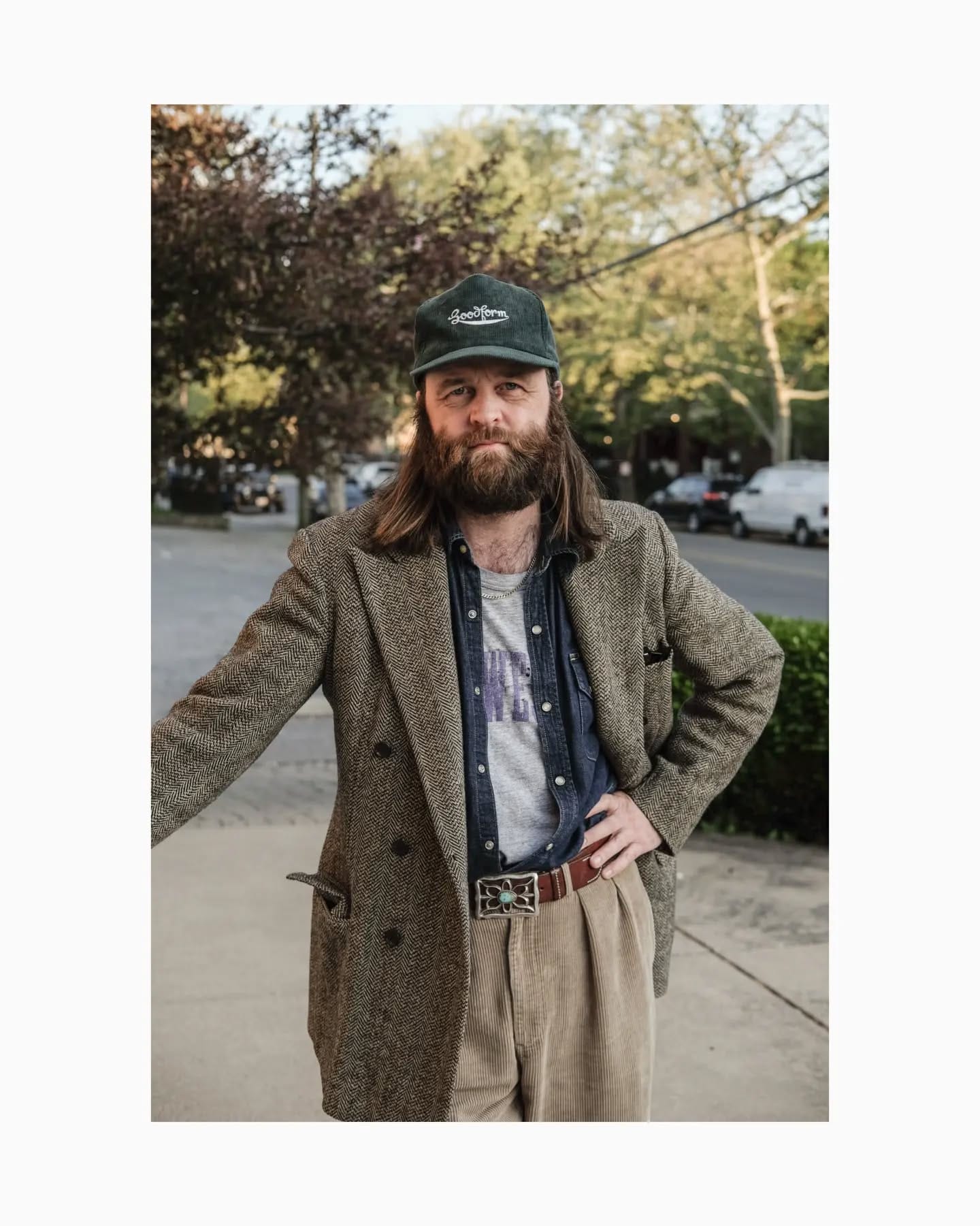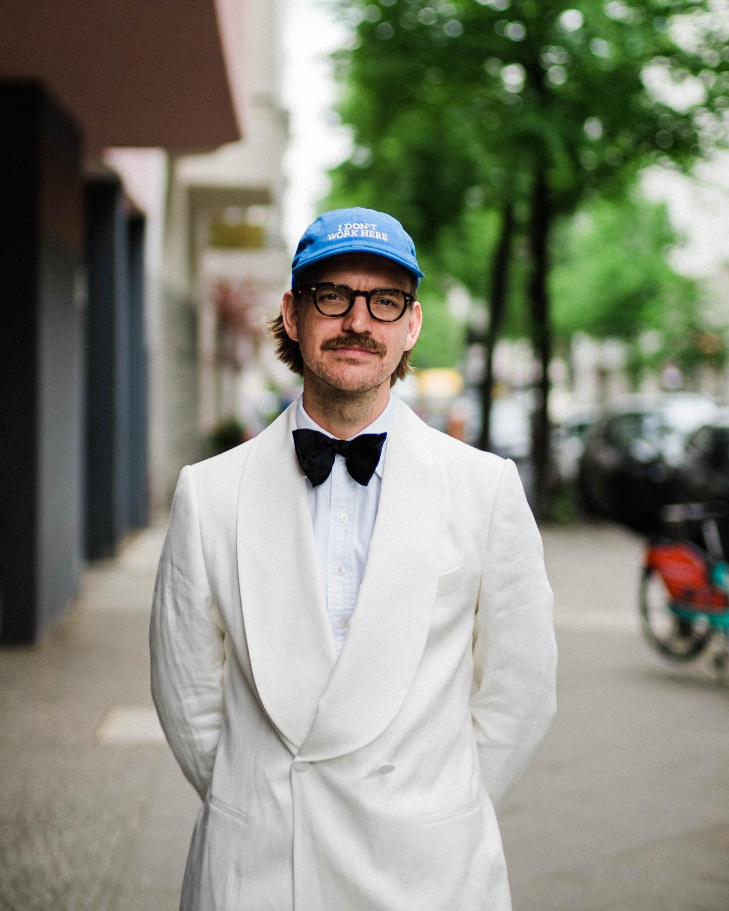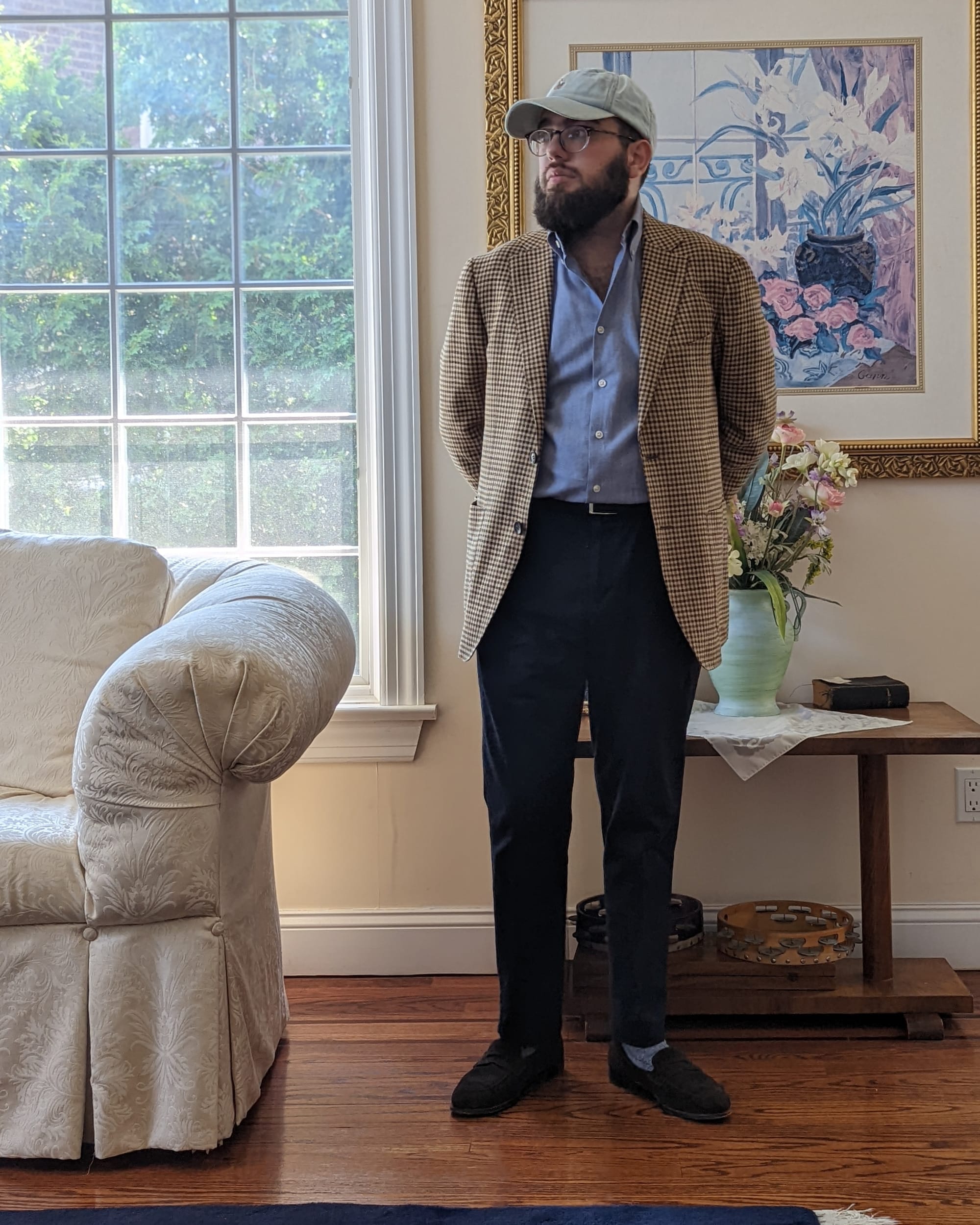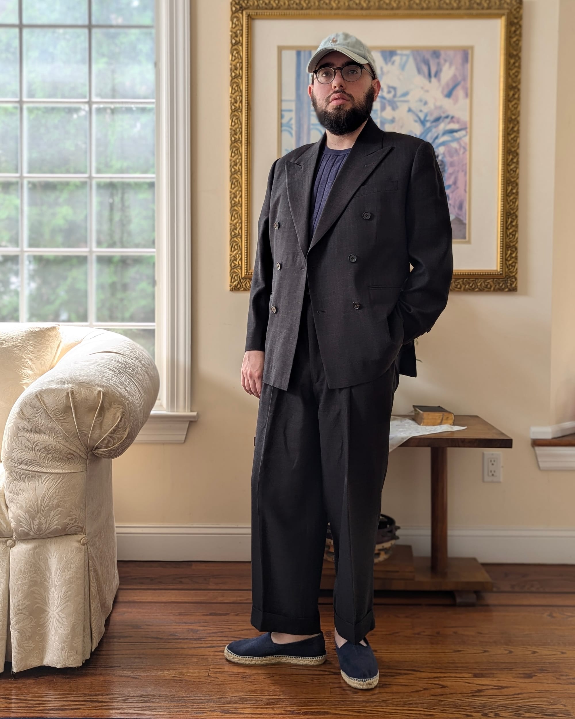 - Dress up, use the ball cap for some formality contrast, do that sort of high-low thing with intentionality.