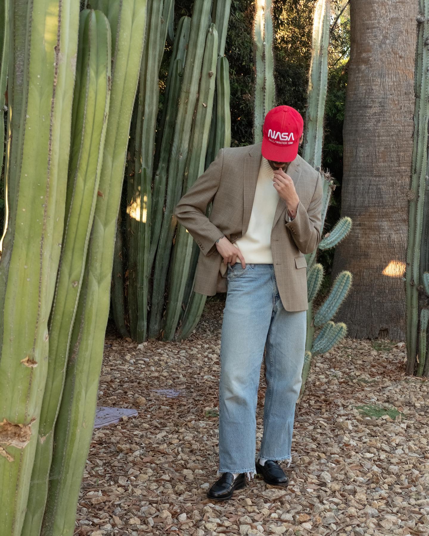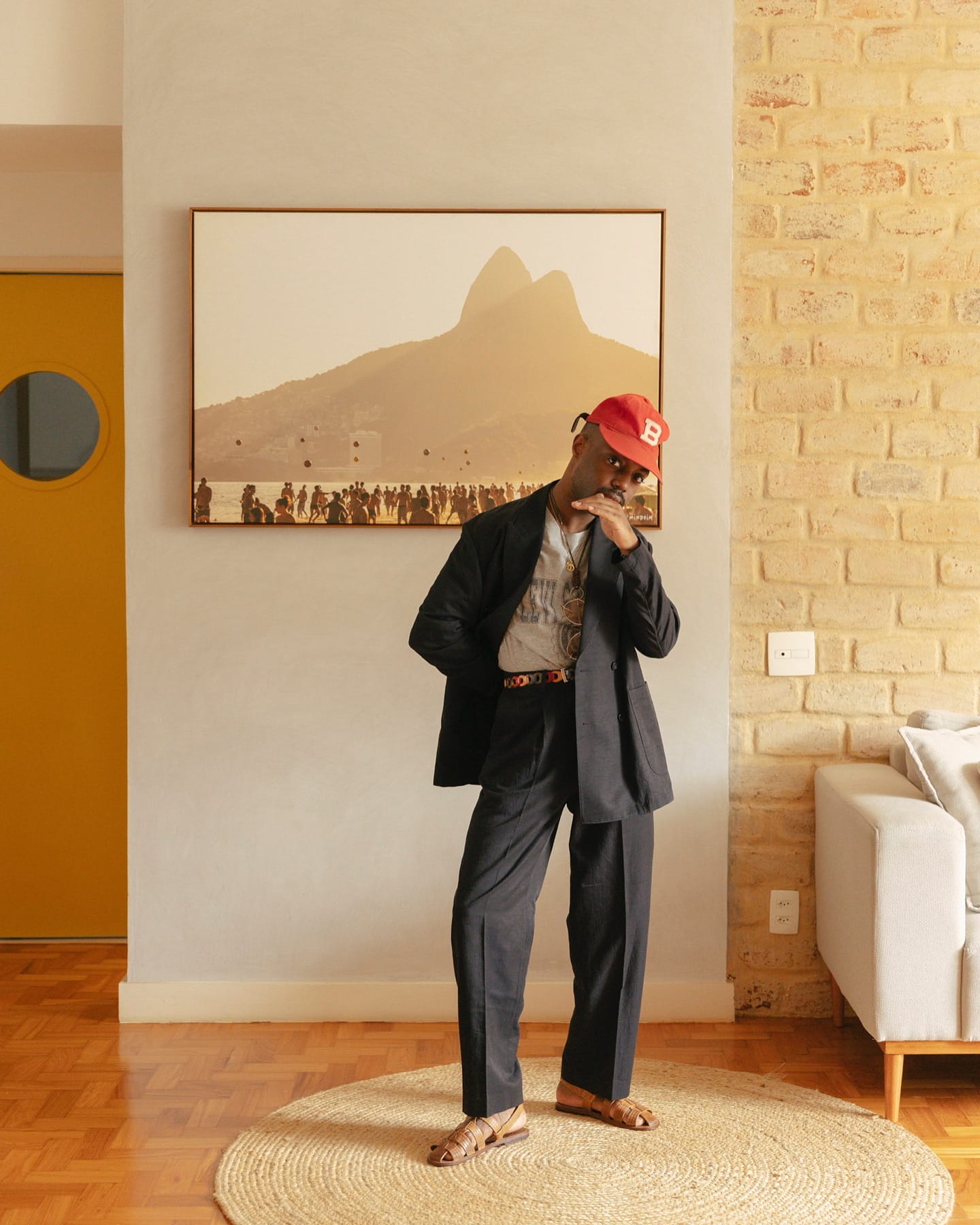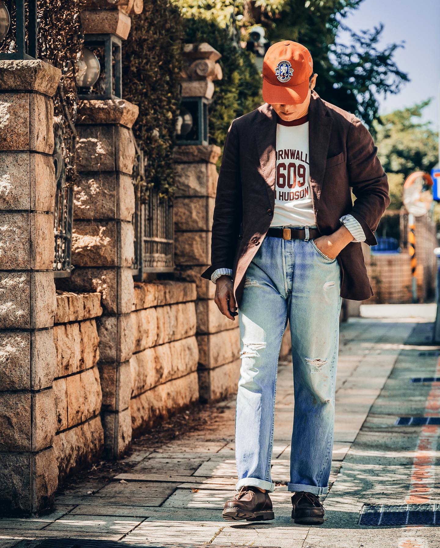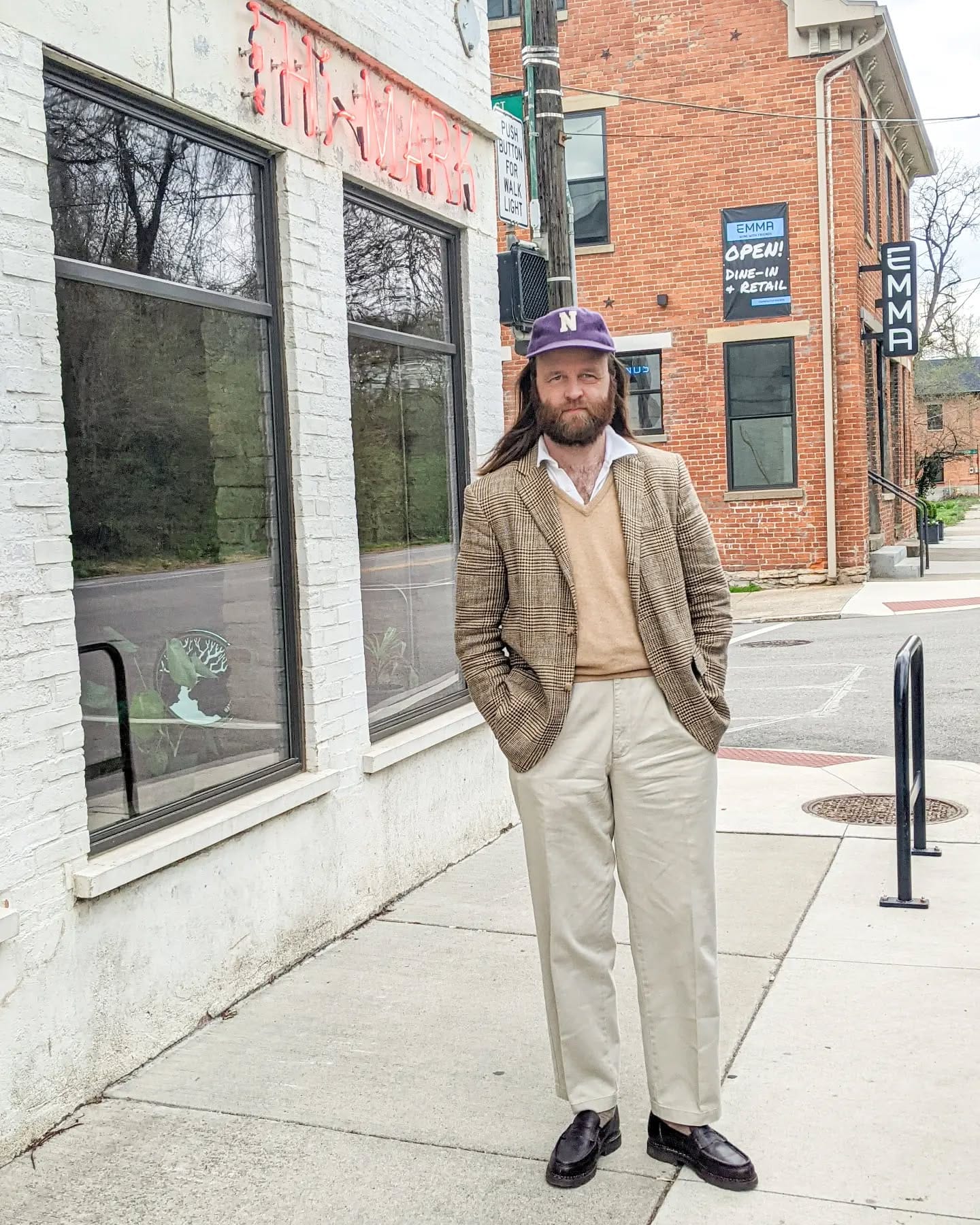 - Dress up, use the ball cap for some formality contrast, do that sort of high-low thing with intentionality.