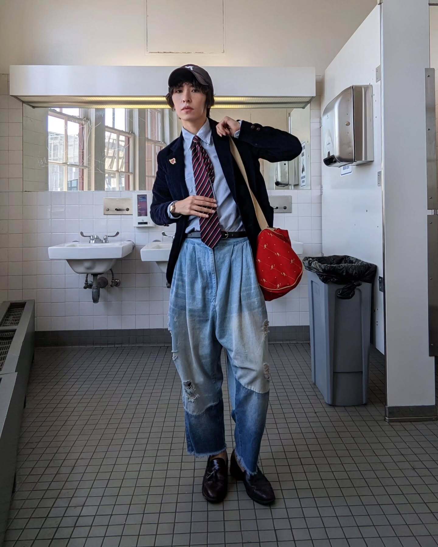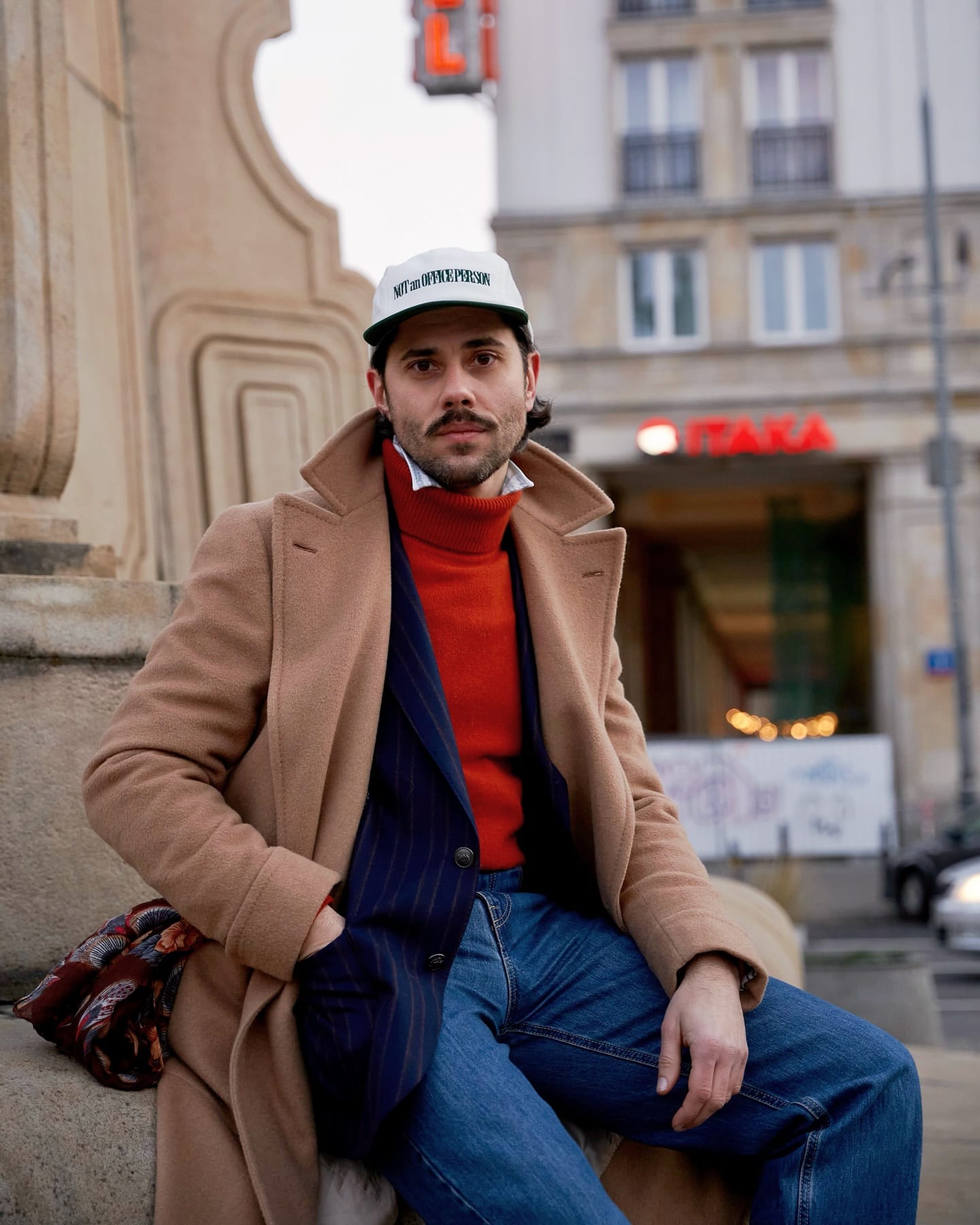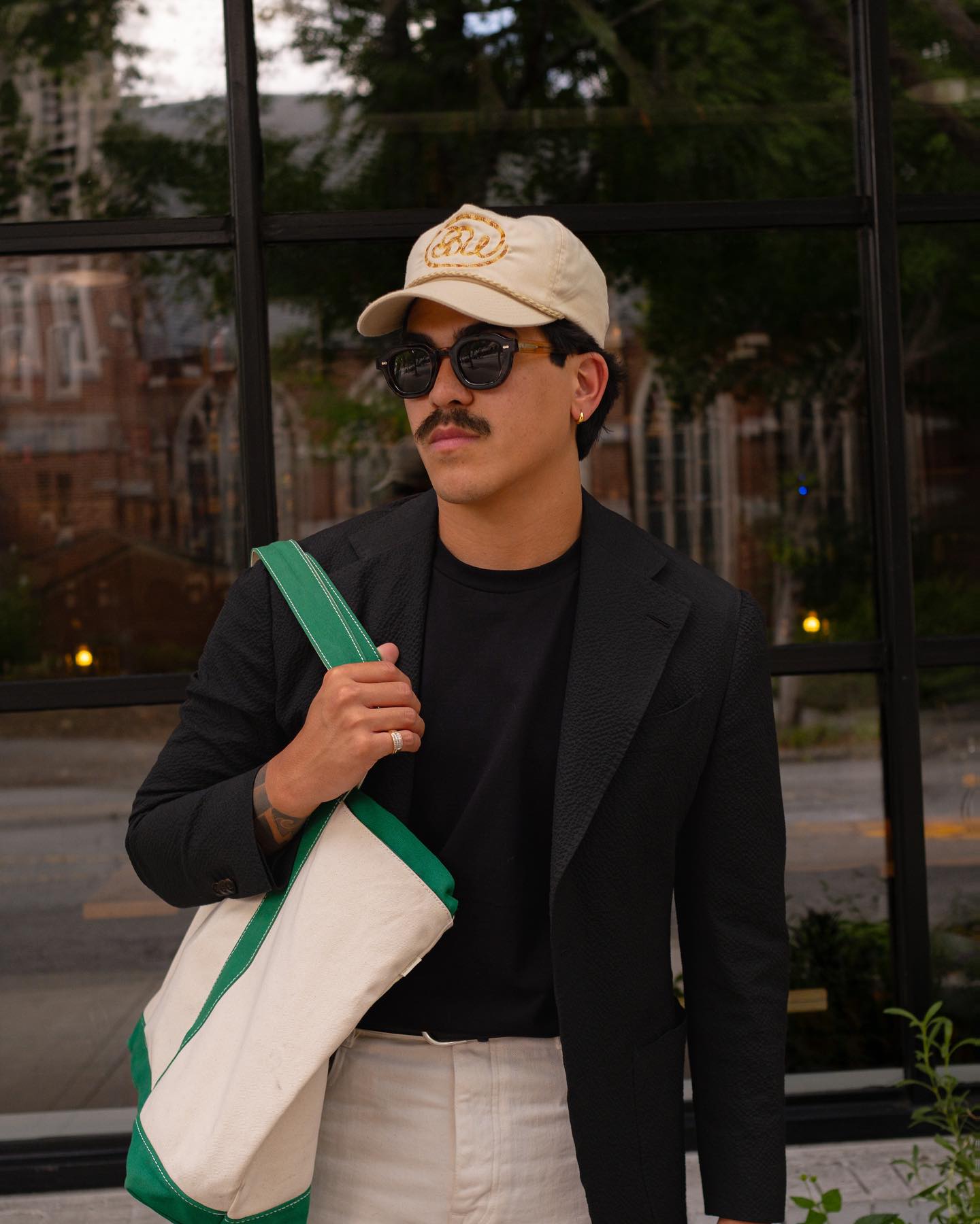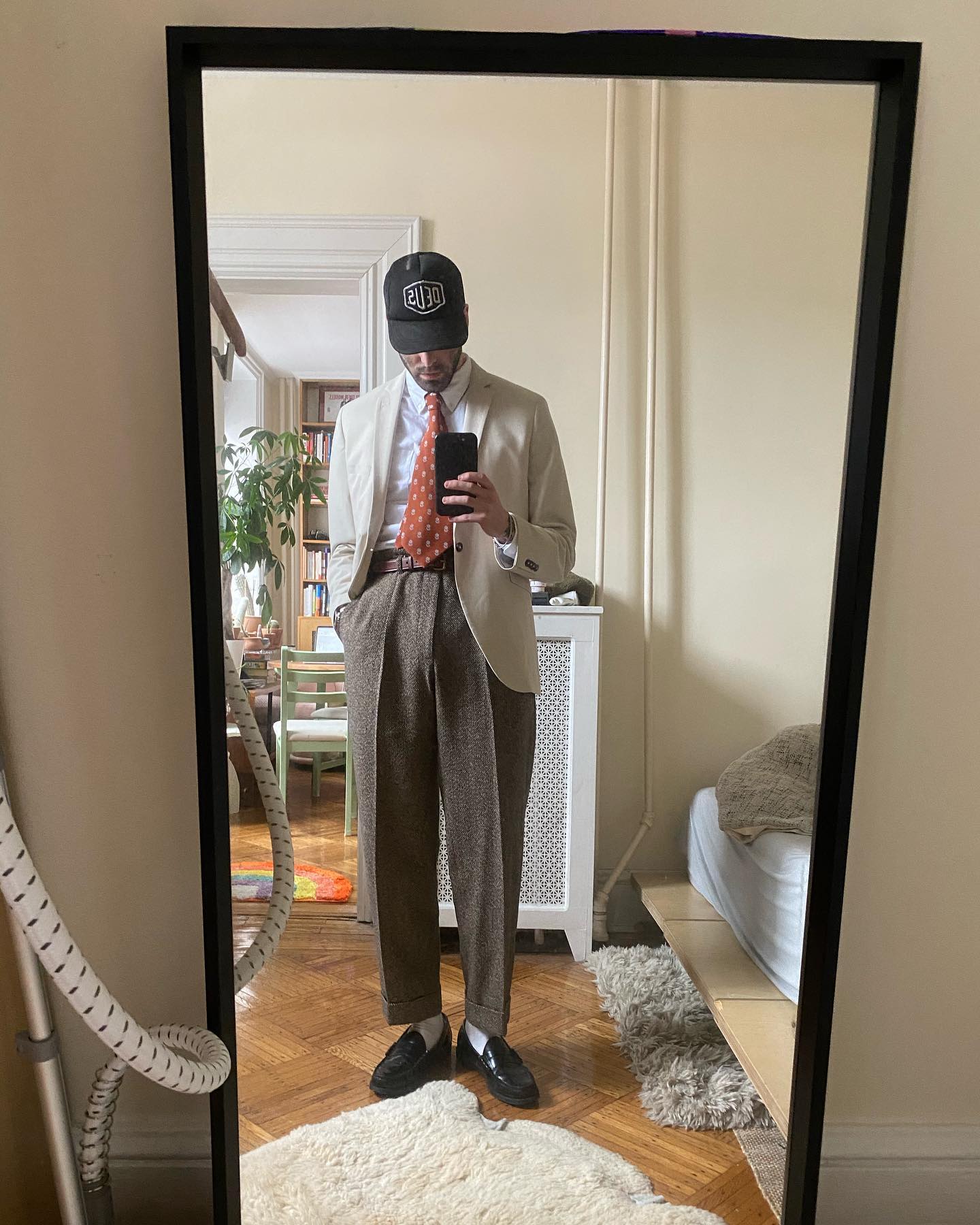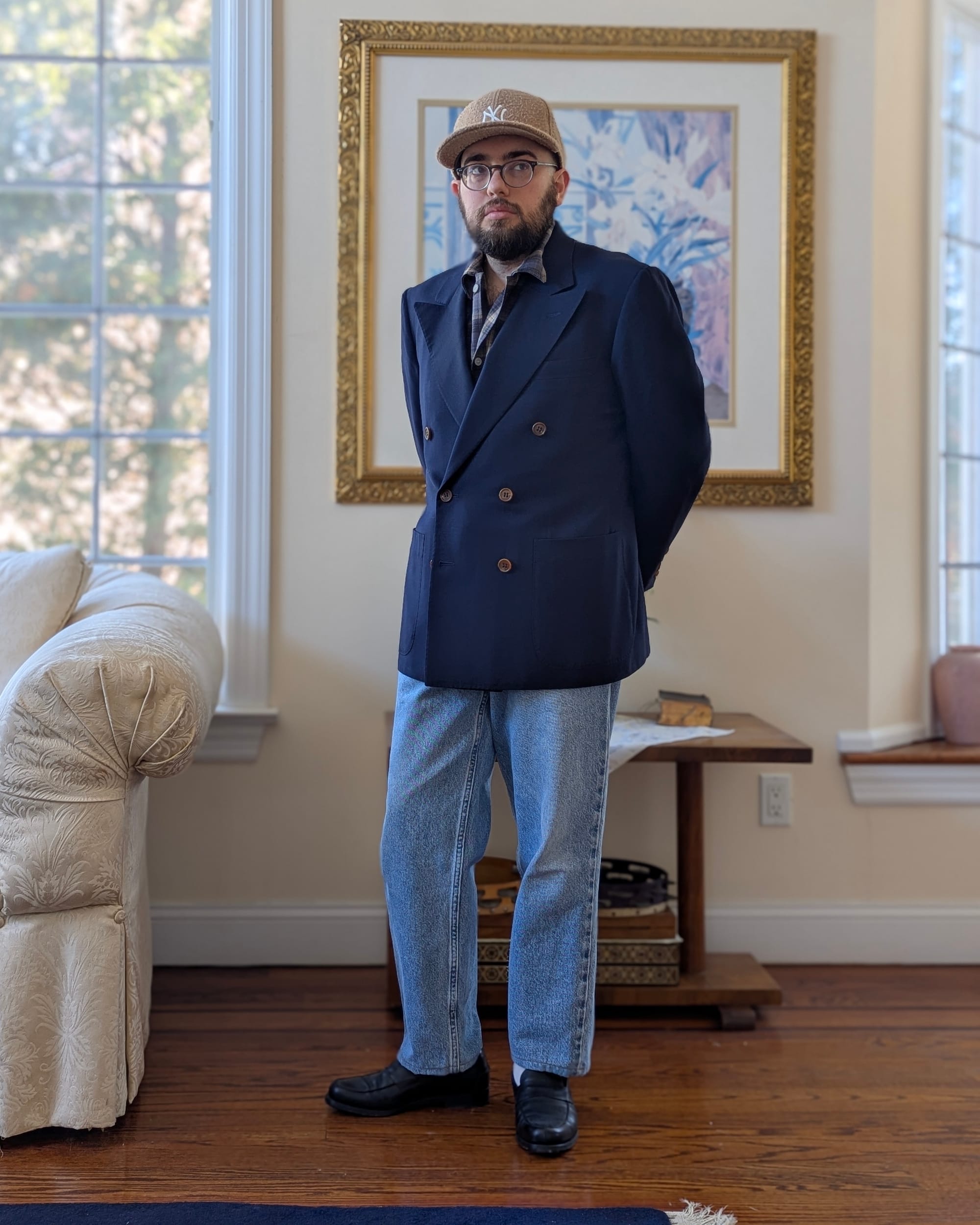 - Dress up, use the ball cap for some formality contrast, do that sort of high-low thing with intentionality.