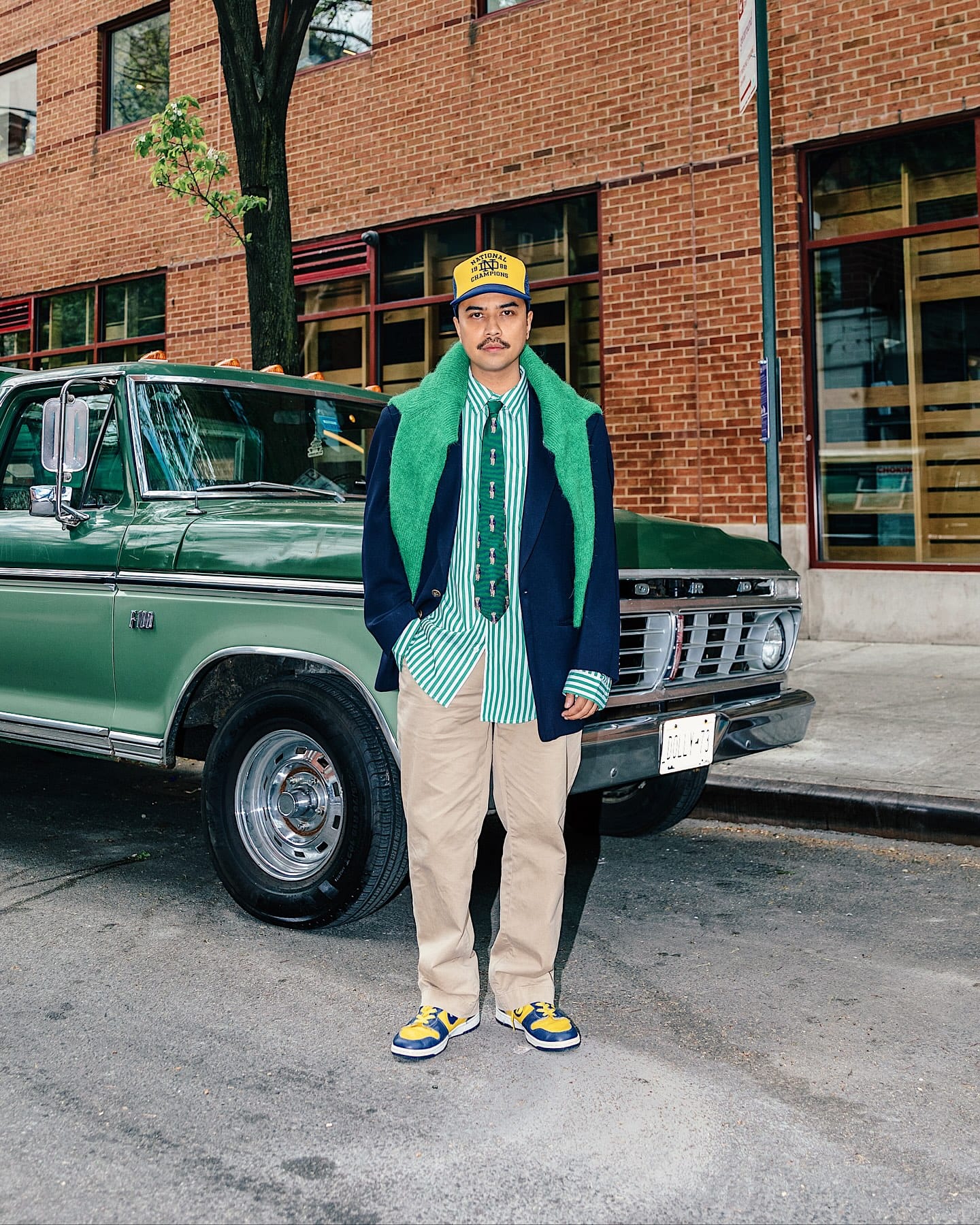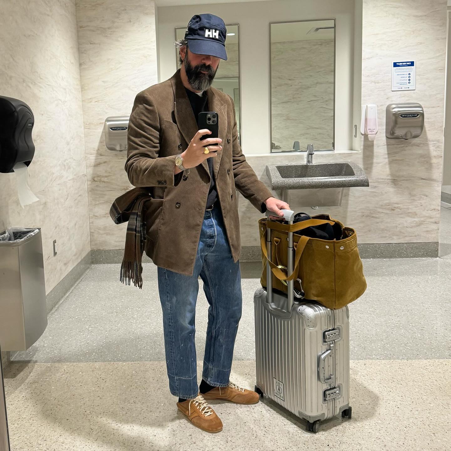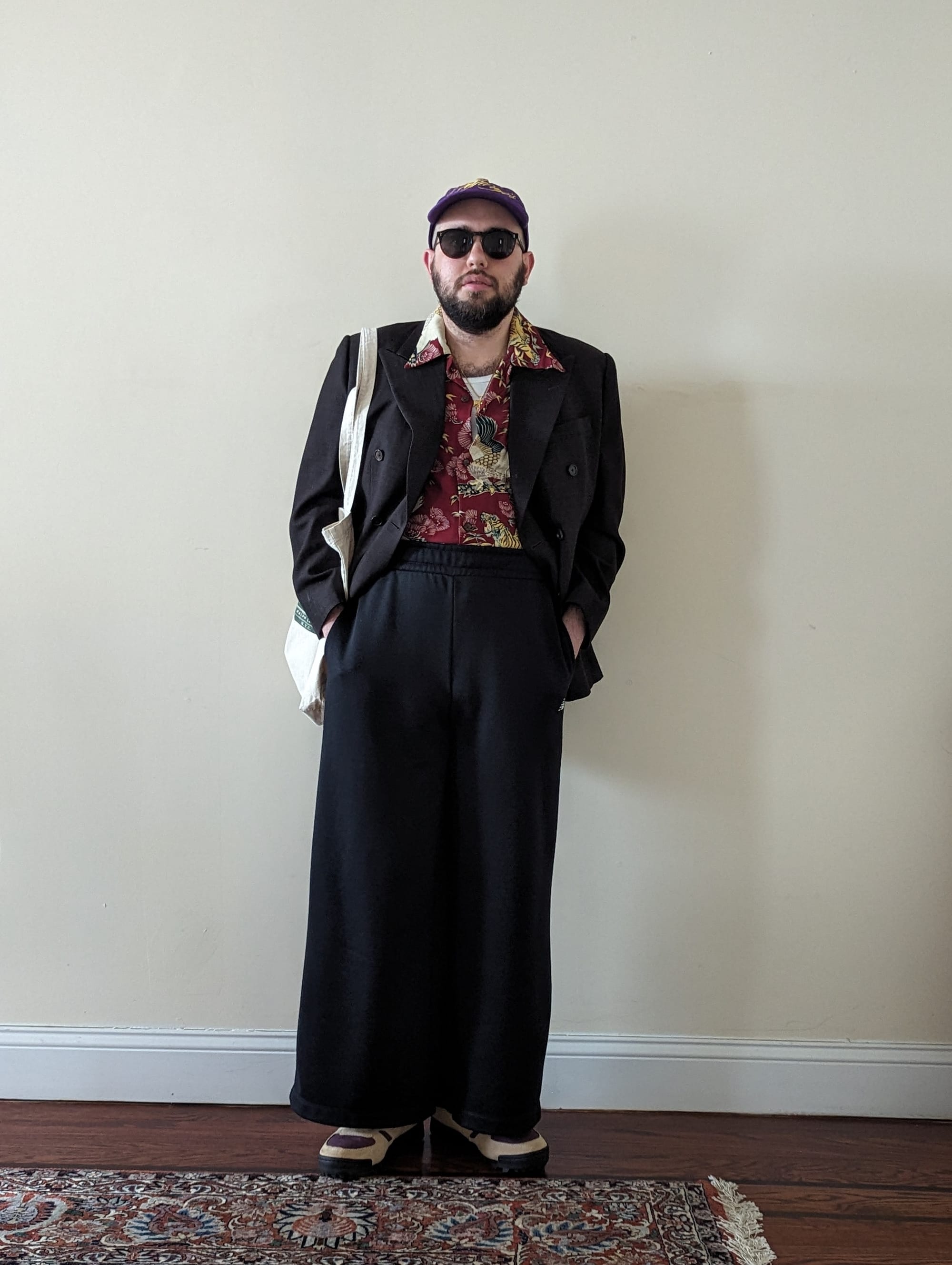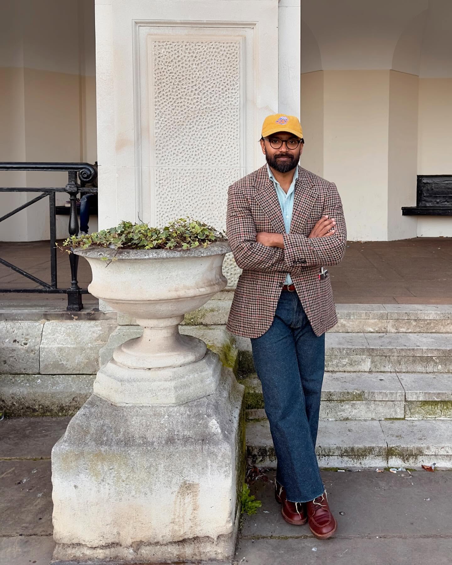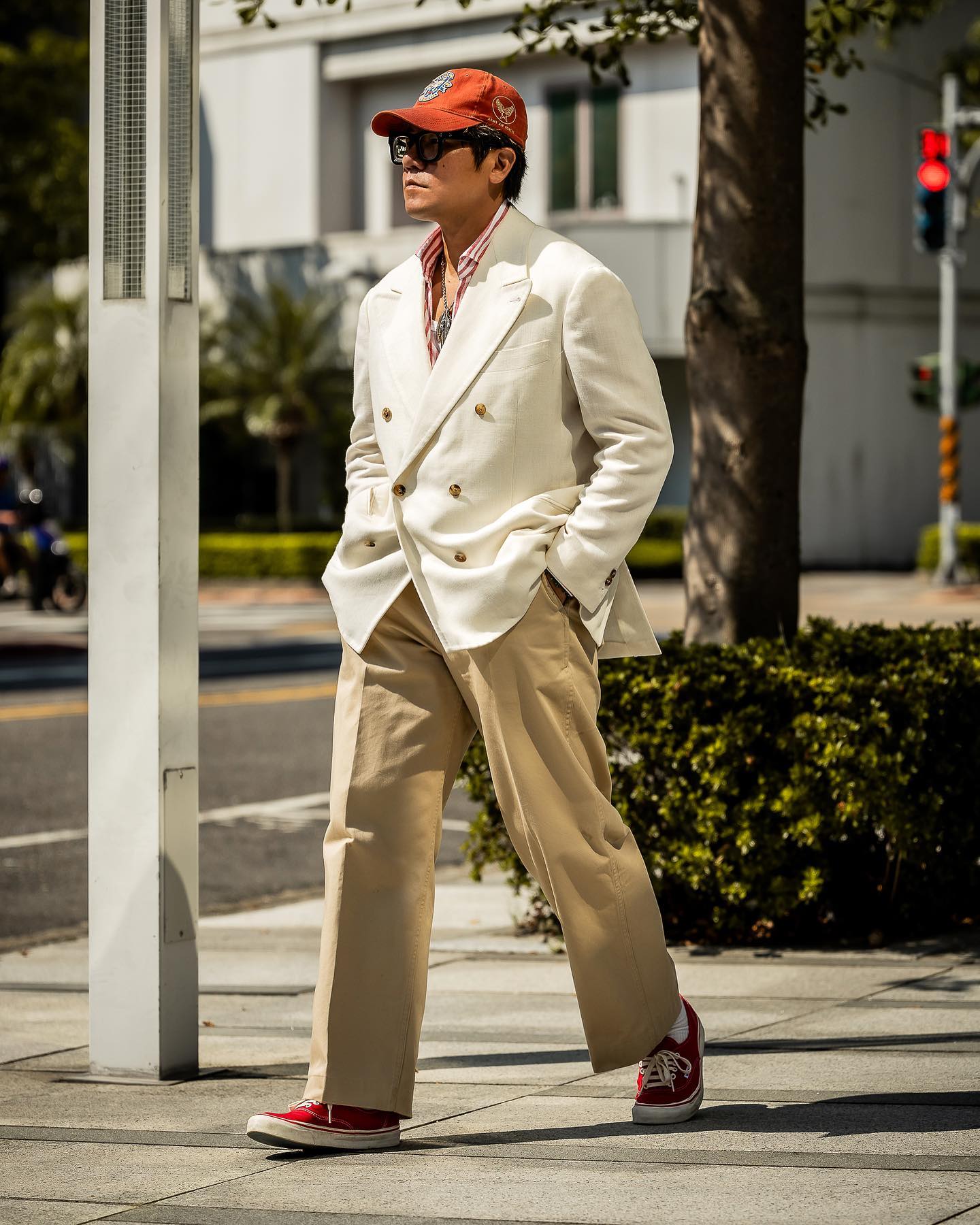 - Dress up, use the ball cap for some formality contrast, do that sort of high-low thing with intentionality.