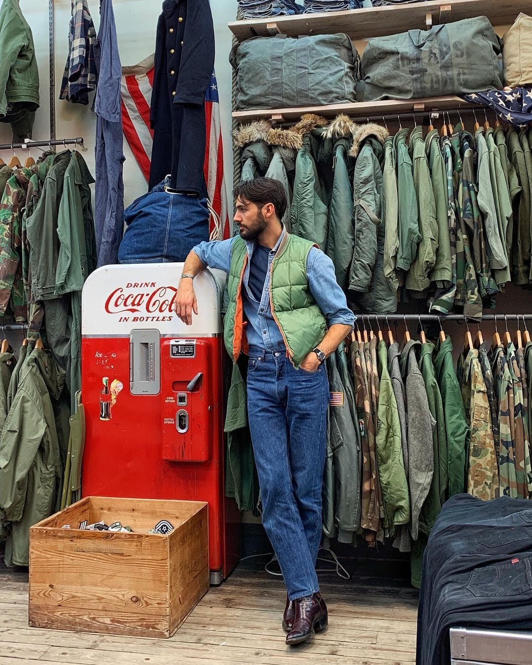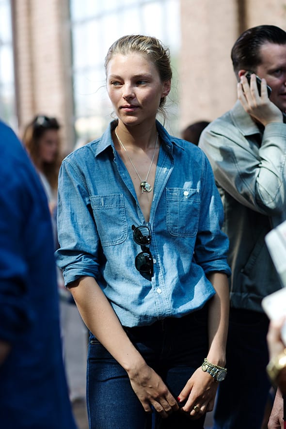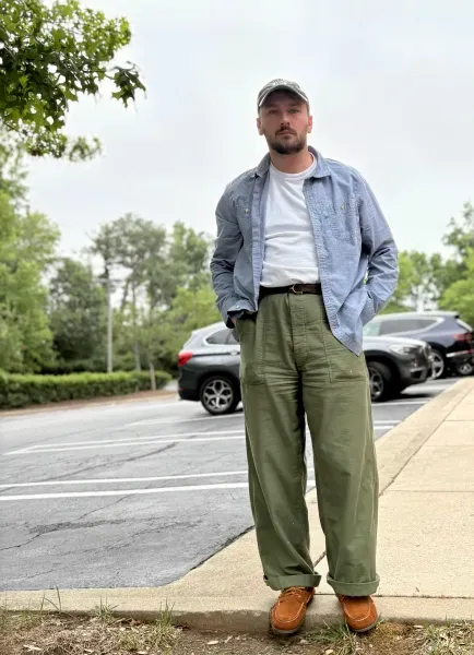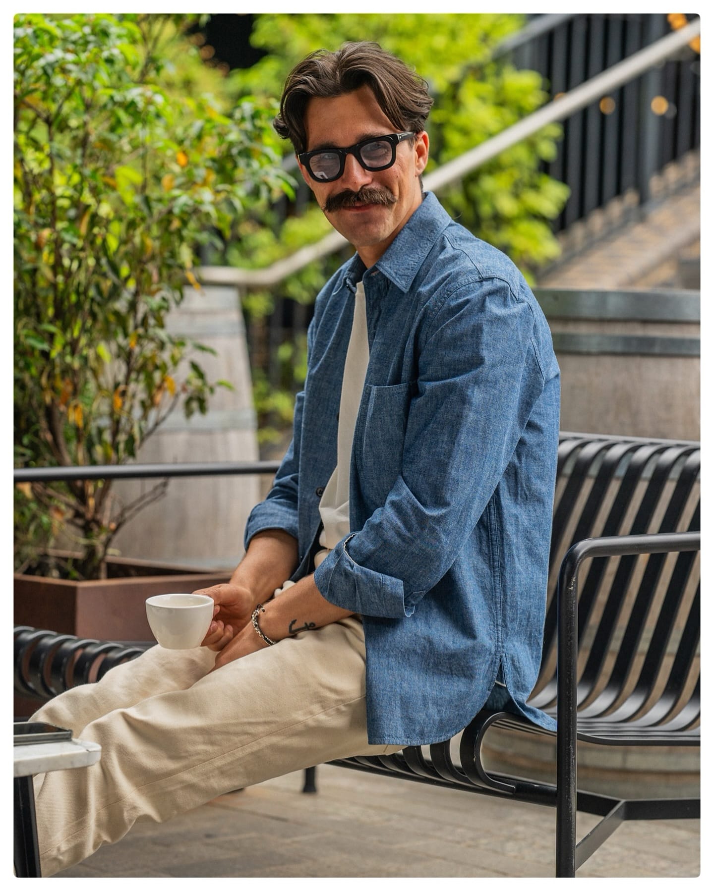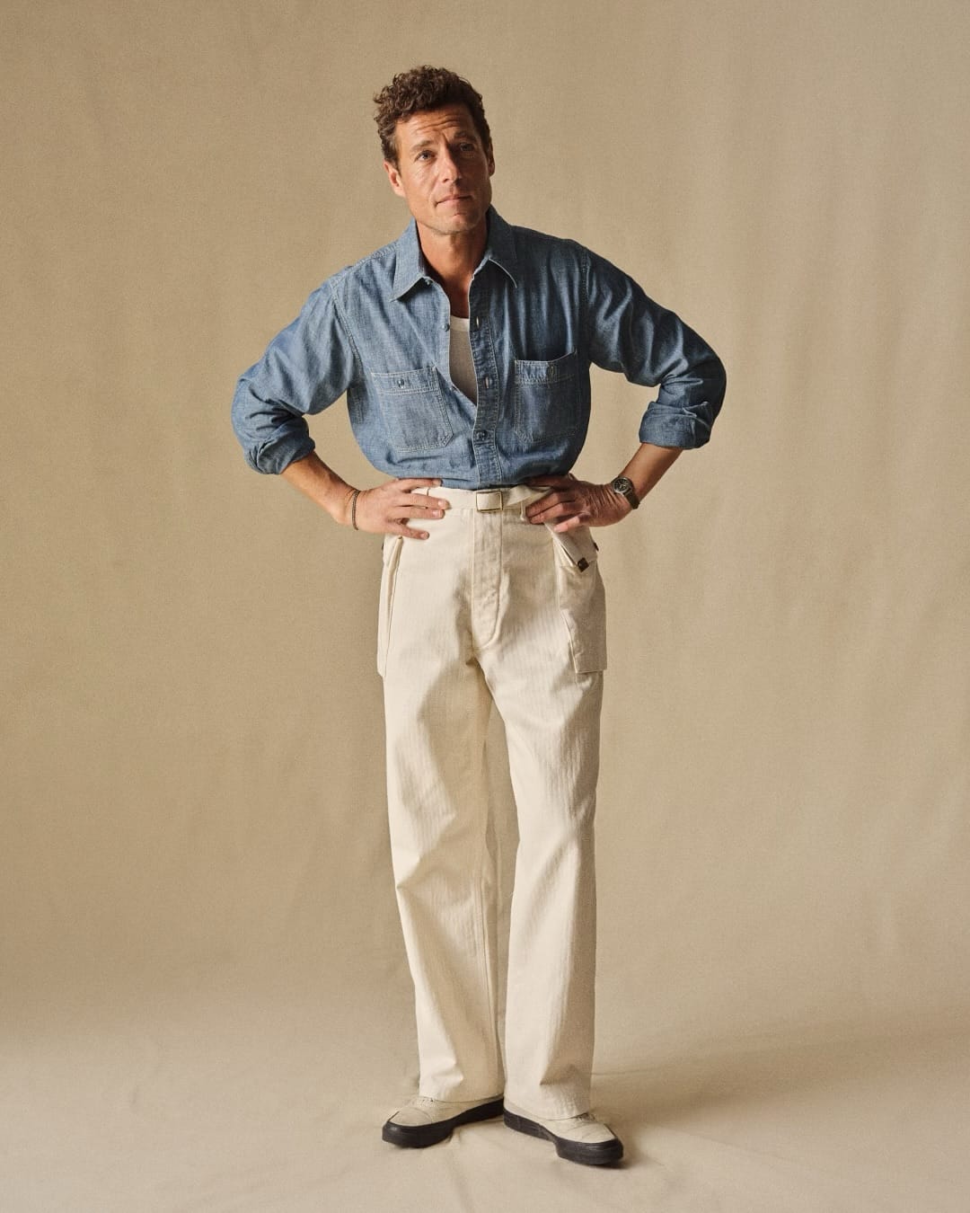 As you'll see below, chambray pairs with everything a basic blue shirt would pair with. It looks great with denim, or chinos, or fatigues, and isn't too hard to dress up a bit, like with a casual suit or knit tie. Some styles are better for workwear, some styles are better for dressing up, but all styles hit hard. Let's explore.