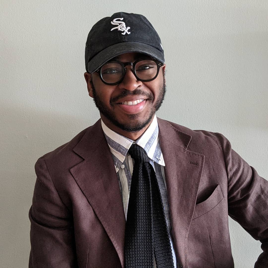 Below, Immanuel Sodipe wears his Spier and Mackay jacket with a black knit tie and black baseball cap. The rule against wearing black and brown together in tailoring is yet another lie we are slowly getting over. But notice how the brown stands out in this lighting! Consistently inconsistent.