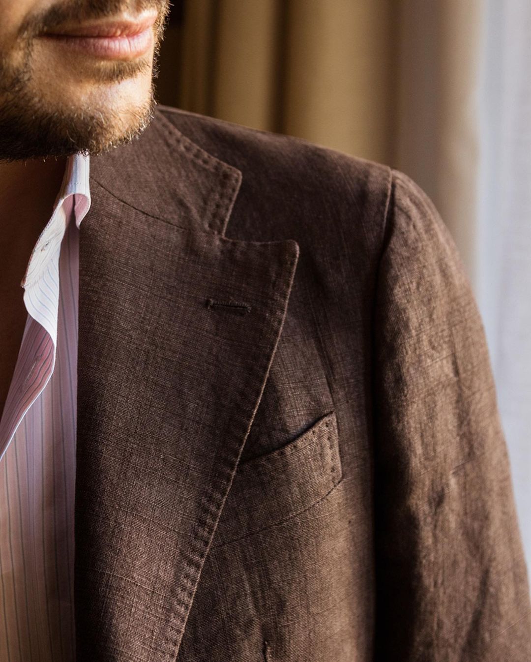 Linen tailoring and brown tailoring are both great ways to dance around the space between formal and casual. Together, they not only help you achieve a sort of... put-together slouchiness, but enhance each other's richness. The slubs and fades and wrinkles of good linen will highlight the captivating depth of the brown.
