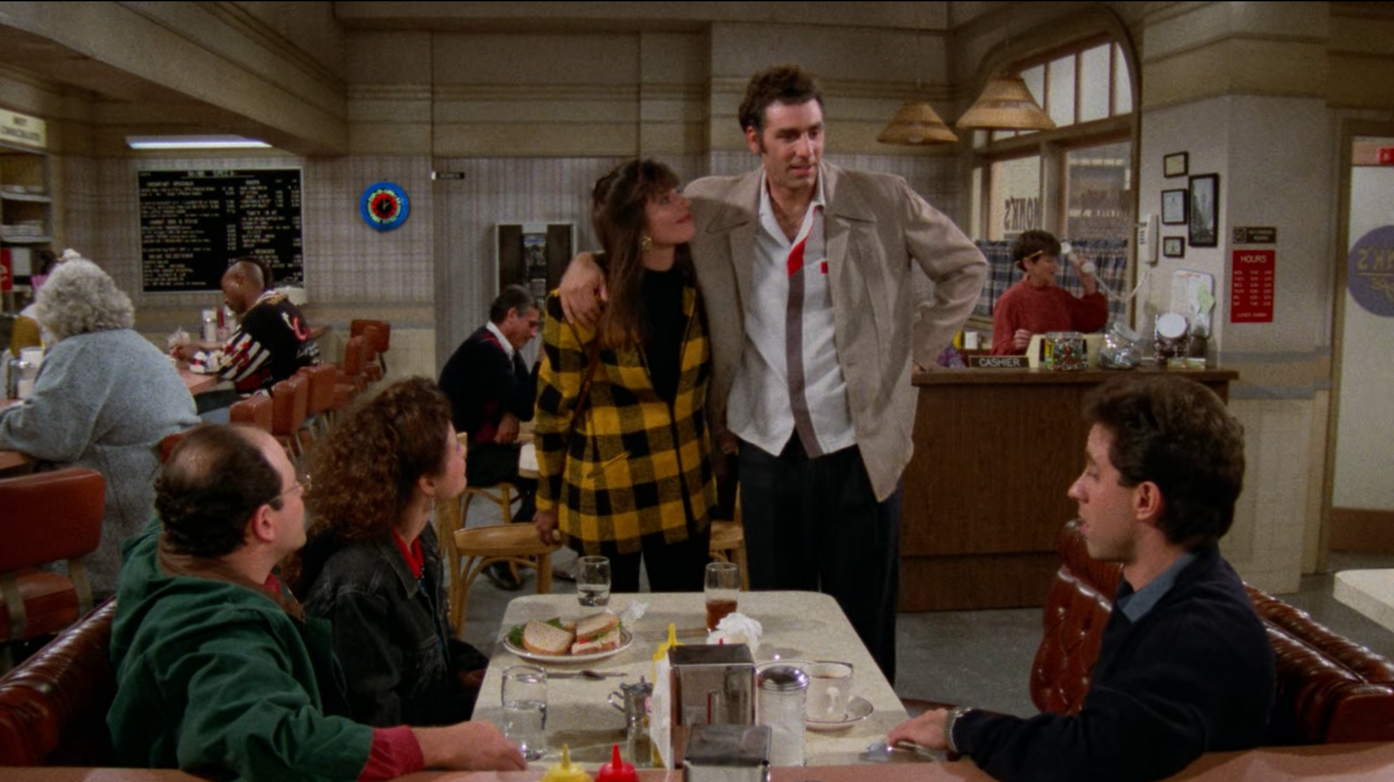 In the absence of any greater direction, Seinfeld was able to explore topics that might be considered too boring for other shows. They talk about shirt buttons, laundry, raincoats, crested blazers, cashmere, puffy shirts, suede jackets, sneakers (Jerry seems to wear Nikes exclusively), vintage cabanawear, Armani Suits, and a magic jacket that the women just love. And it ends with the same conversation about the second shirt button repeating itself.
