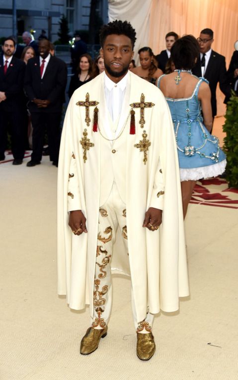 The Met Gala is an annual Creative Black Tie event with a theme. In 2018, that theme was "Heavenly Bodies: Fashion and the Catholic Imagination". Above, Chadwick Boseman made waves with a great Versace suit right on that theme.