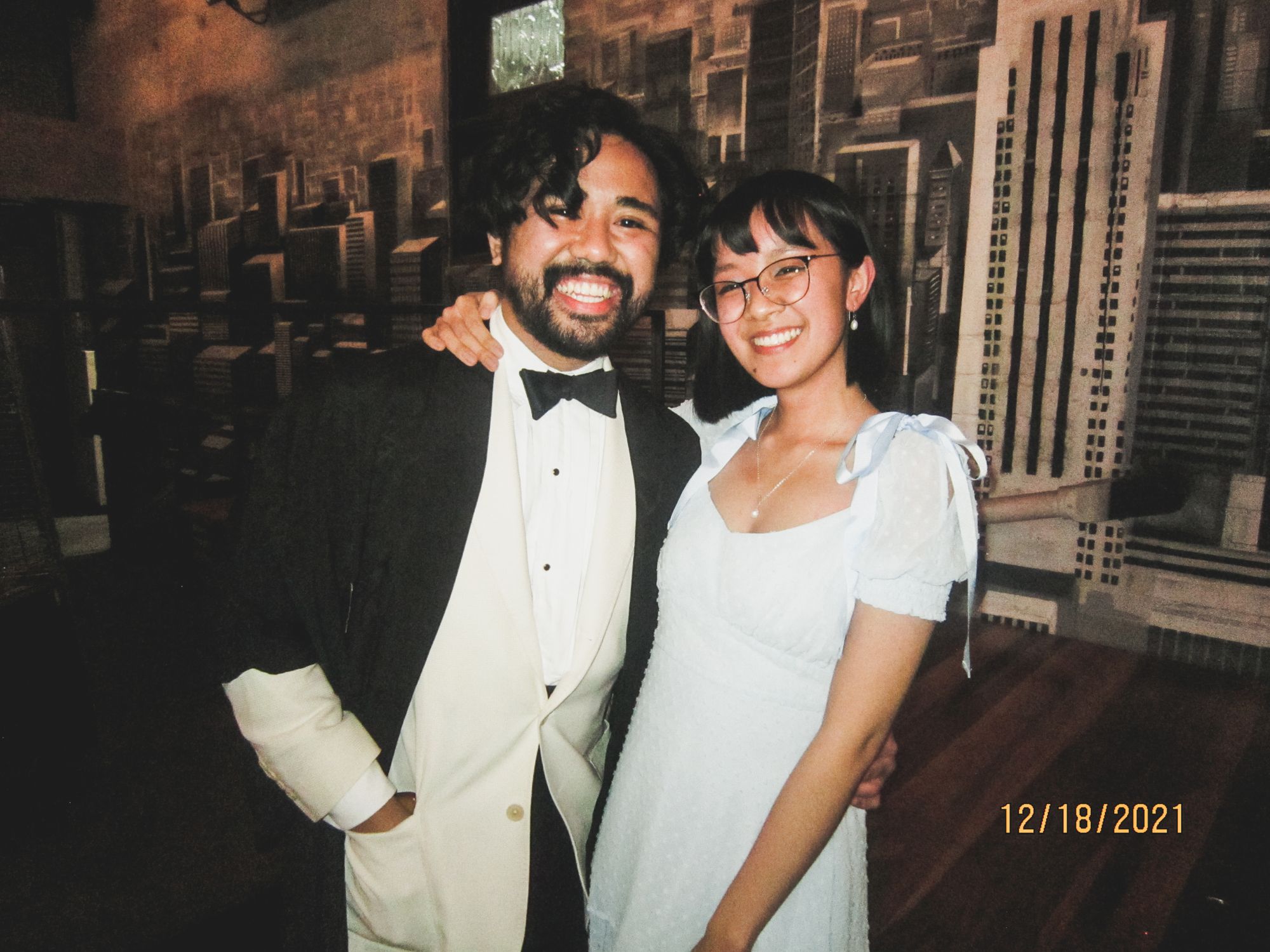 Eric is no celebrity, but when presented with a theme challenge to "Raid the GF's Closet," he still made waves. A simple challenge that could be met with a hat instead resulted in this fabulous combination of a gown that fits him impossibly well, and a jacket that functions as the perfect layer above it.