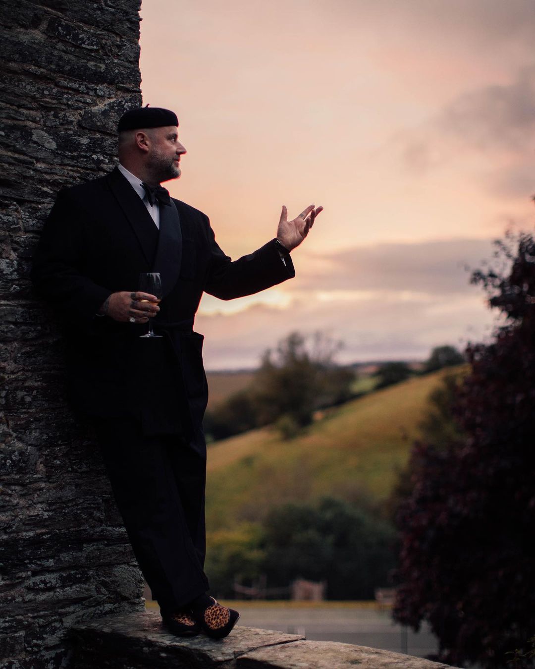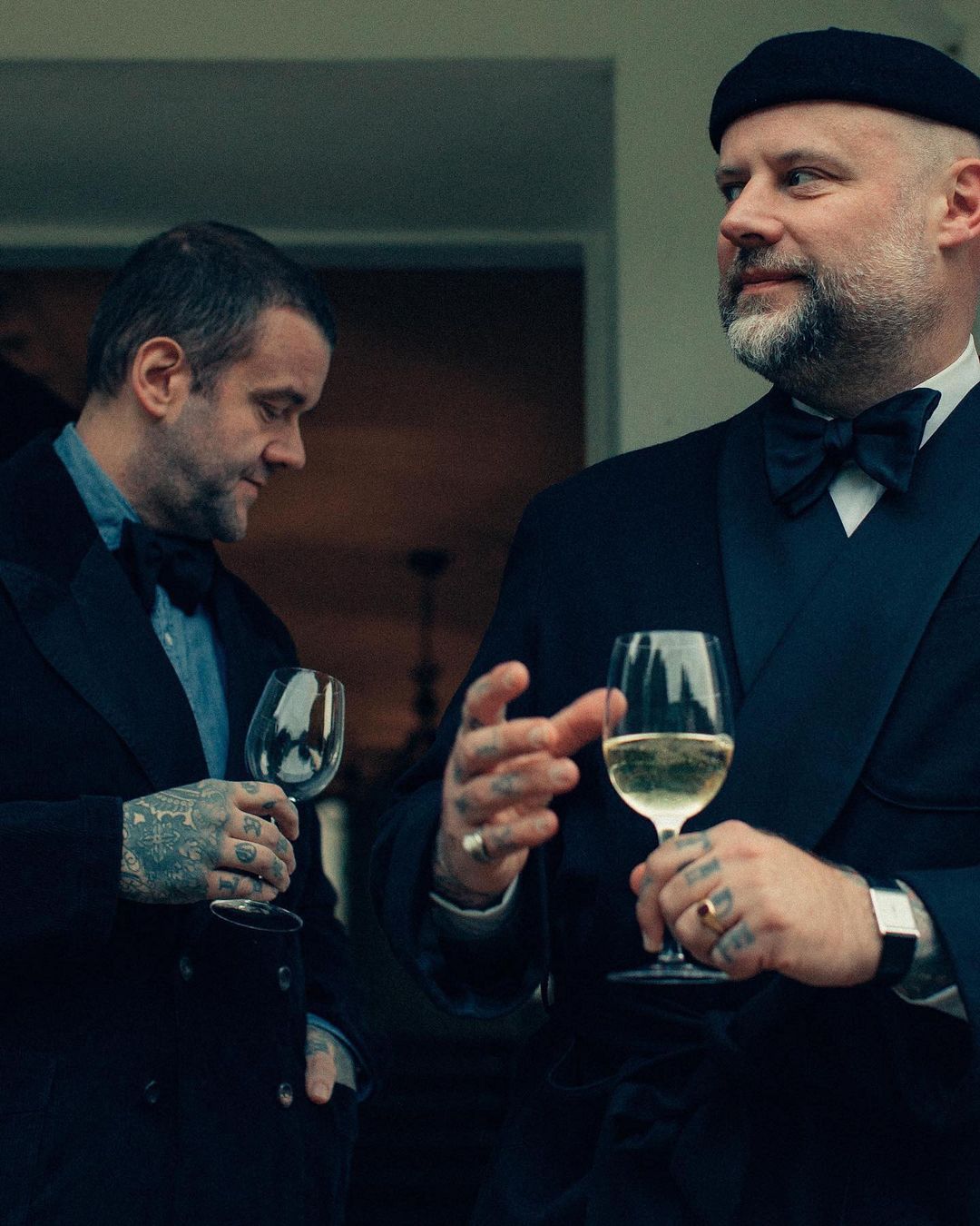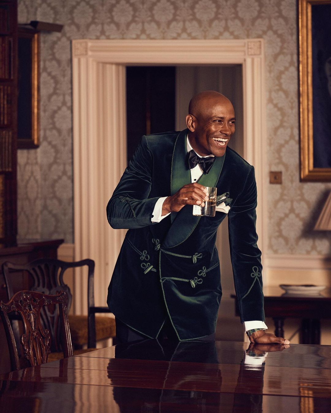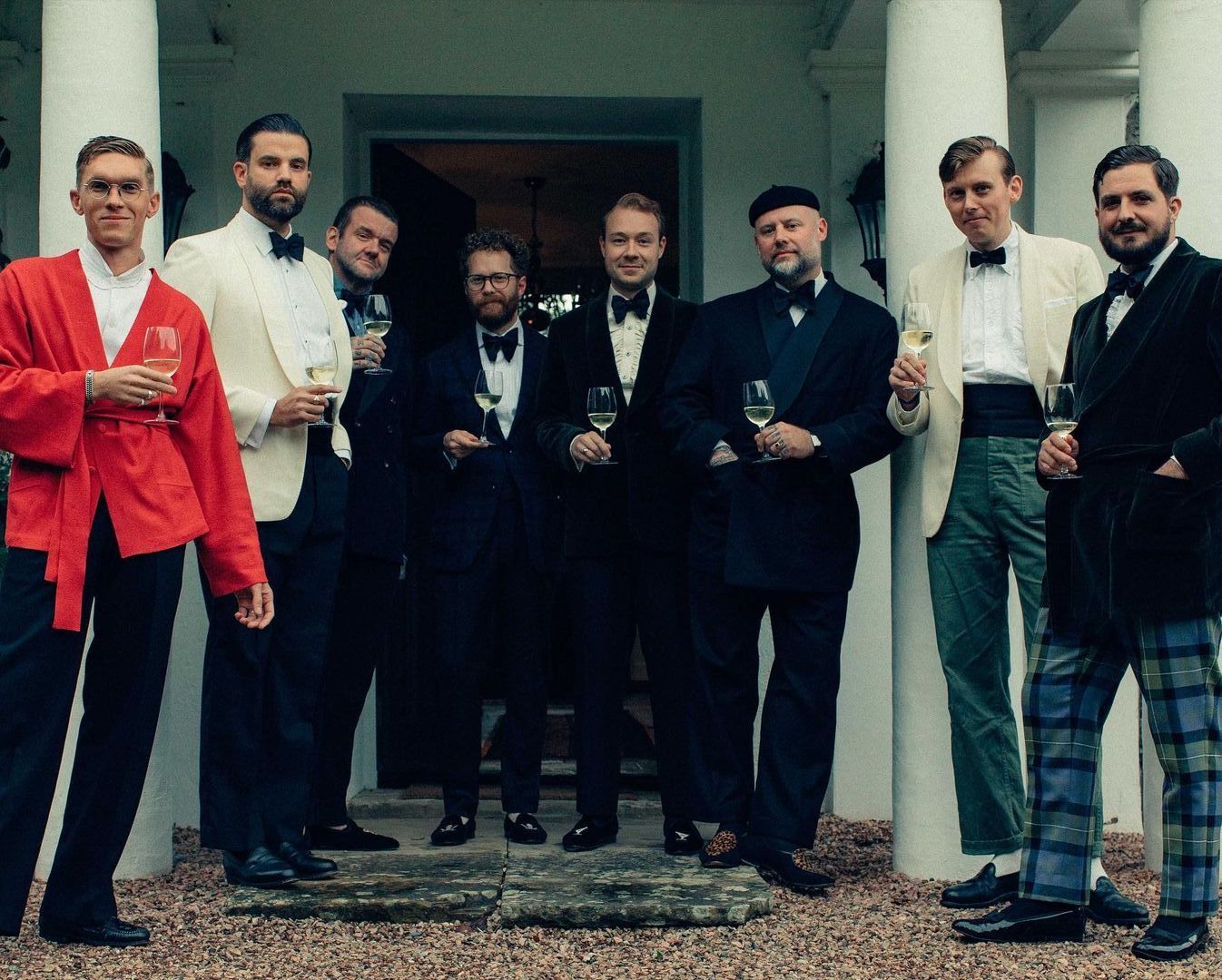 Let's start off strong and weird. Jason Sandagon wearing his own Mad King George dinner jacket in this pink tweed is just... excellent. The bellied lapel. The turn up cuff. The pattern matching. And just that shade of pink....