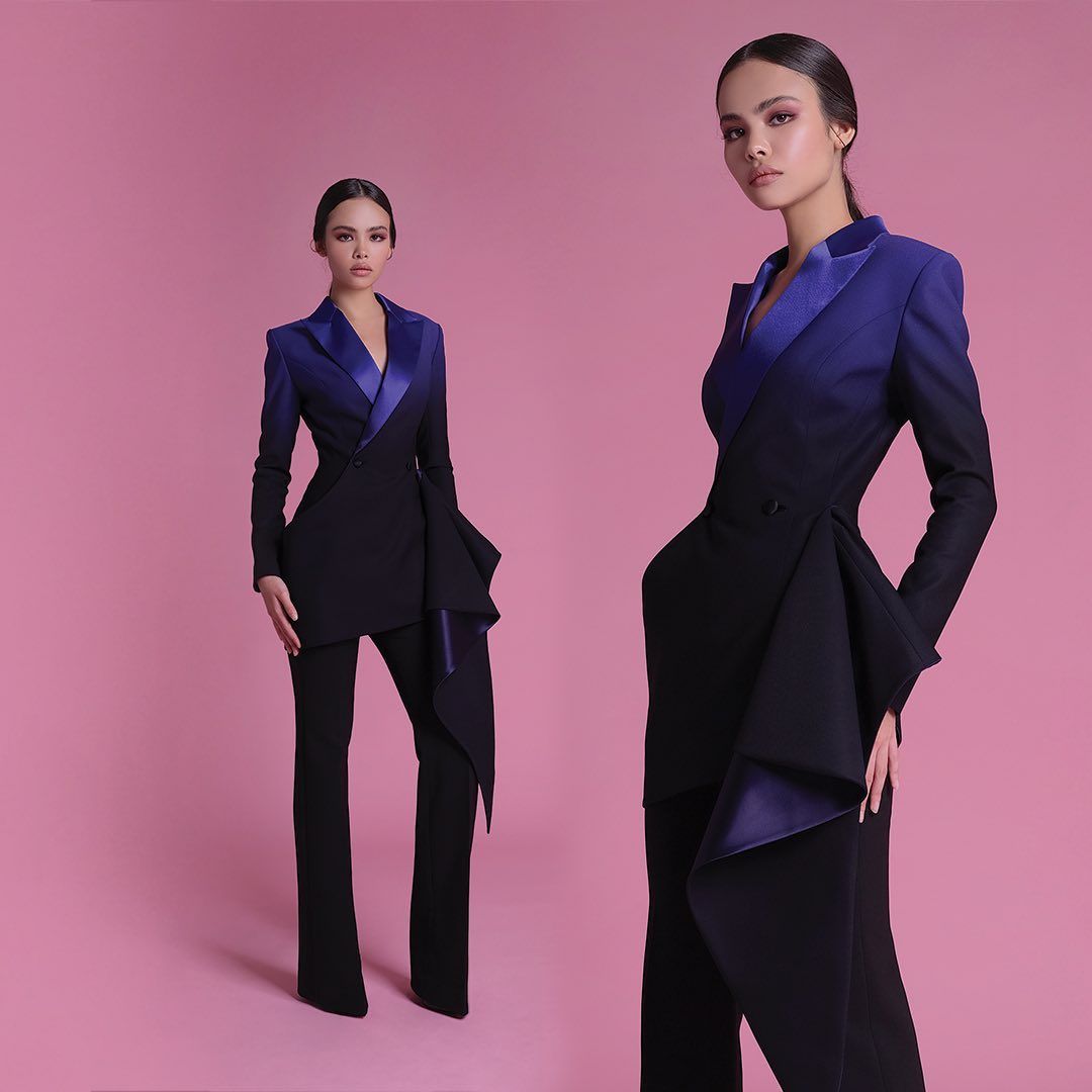 The above tuxedo from Poem Bangkok comes in a really funky purple-to-black ombré gradient. I also like... Whatever that is at the side there, it adds that little bit to the silhouette so it's not just a sharply cinched tuxedo on a woman, but really unique.