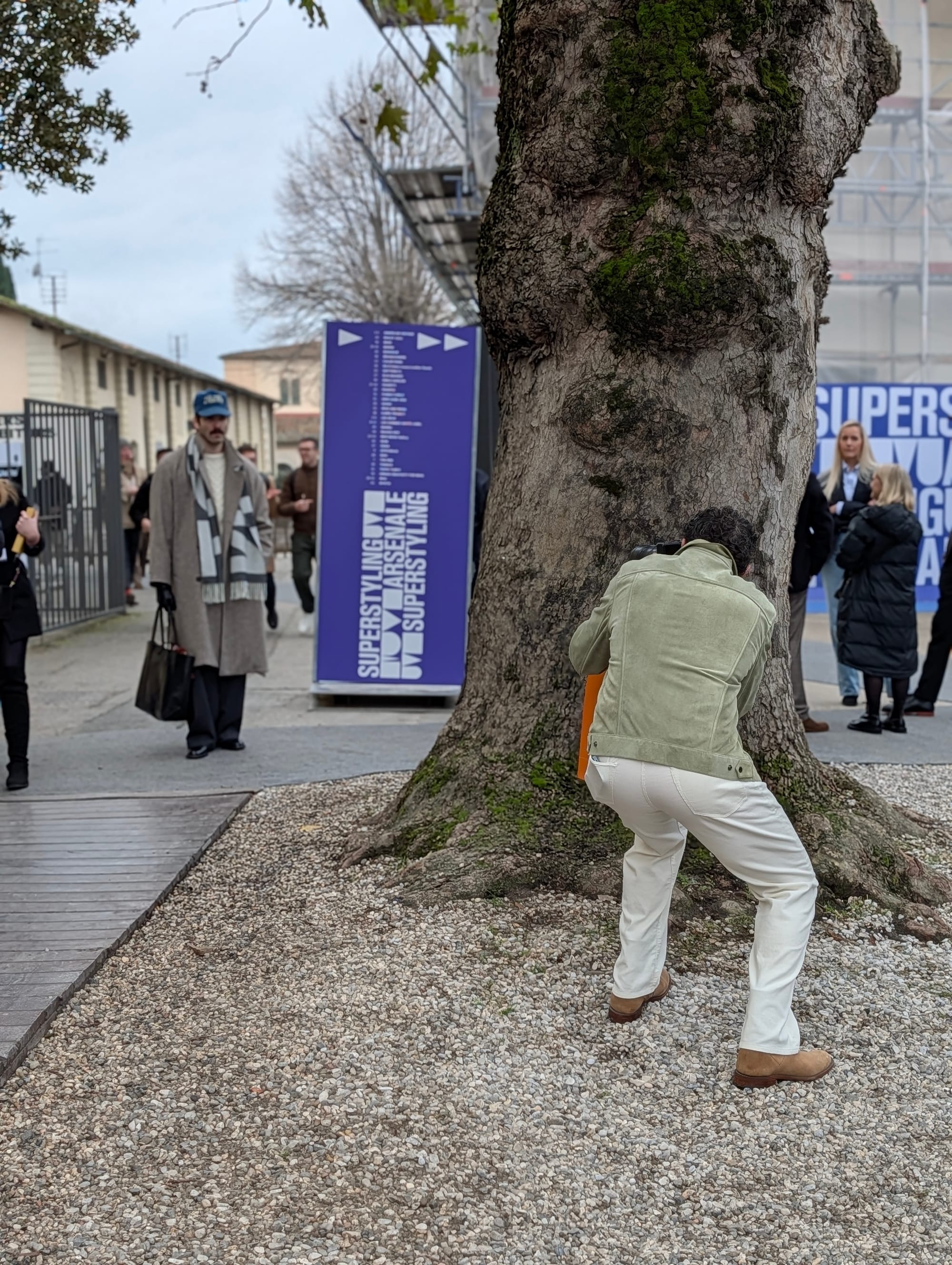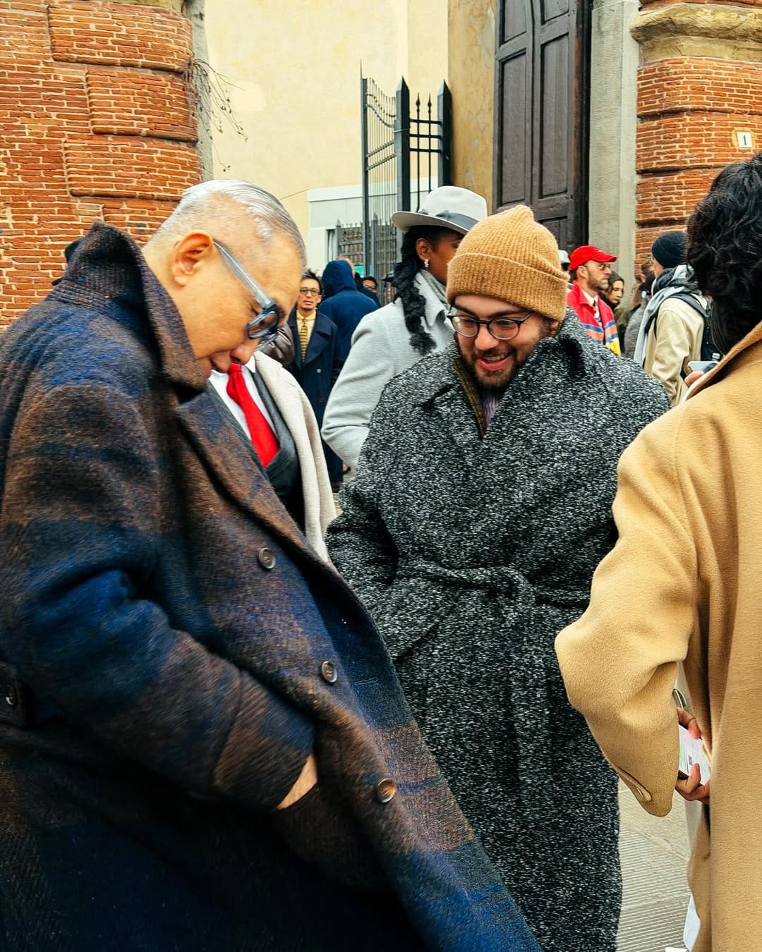 The suit walk was... well, Vogue wrote about it here, you can just barely see me in one of those group photos, but it's kind of what it sounded like, a bunch of us walked through Florence in suits. Well, in tailoring. Actually, I think I was the only one there without a tie. I had a tweed jacket and a scarf that you could barely see under my Balmaccan, which I refused to loosen because it was kind of cold. I tried to pop my jacket collar and fluff out my scarf a bit, but I probably just looked like one big coat.