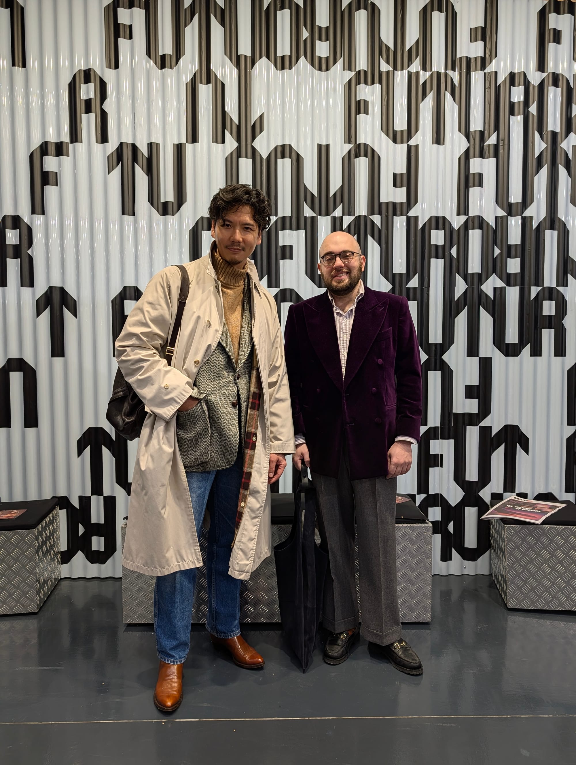 I met two of the greats, Titans of Japanese menswear and incredibly well-dressed men, Hirofumi Kurino and Shuuhei Nishiguchi. Kurino-san doesn't actually run his own IG, I'm not sure he uses it at all, but Shuuhei Nishiguchi recognized me, and that feels like my one true claim to fame—who cares how many followers I have?