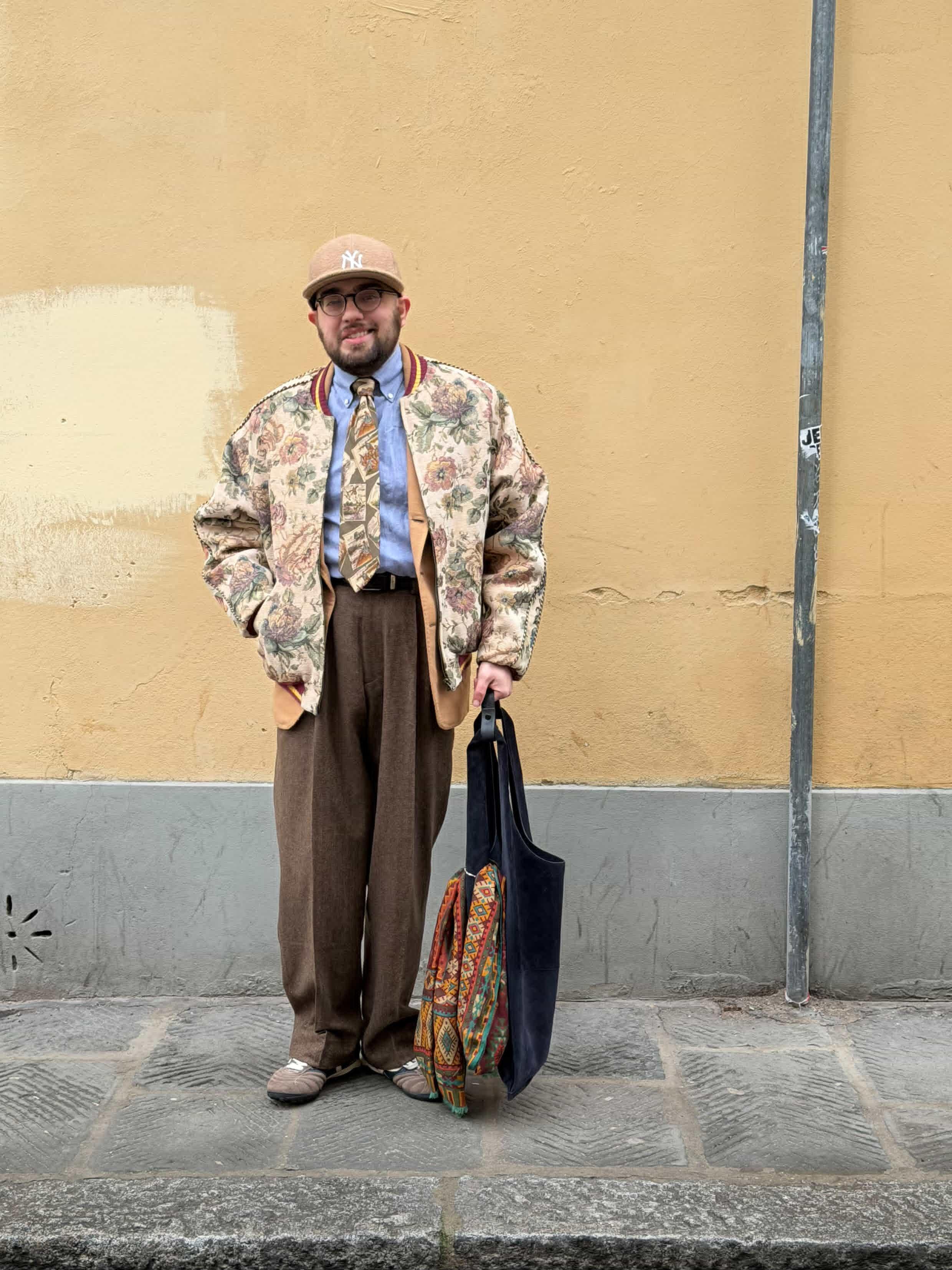 It's about now that I'm going to acknowledge: not all of you have any idea what Pitti Uomo is. Well, the short version is, it's an international menswear trade show held twice a year by Pitti Imagine. But it's so much more. Over the years, and especially after the #menswear movement on Tumblr, Pitti became a sort of a Mecca for menswear lovers. People would make pilgrimage from all over to wear, at the time, boldly-colored slim-fit suits with double monks, and talk about clothes. Some people still dress like that... but for the most part, Pitti has grown with culture as a whole. Tailoring is still at the core of the that culture, and there are still peacocks running around wearing random bs (there was a dude in a luchador mask and some sparkly striped suit on day 1, that was not the vibe but it did get attention). But my boy Nick showed up on day three in a supreme hoodie and... hang on, gotta go one day at a time.