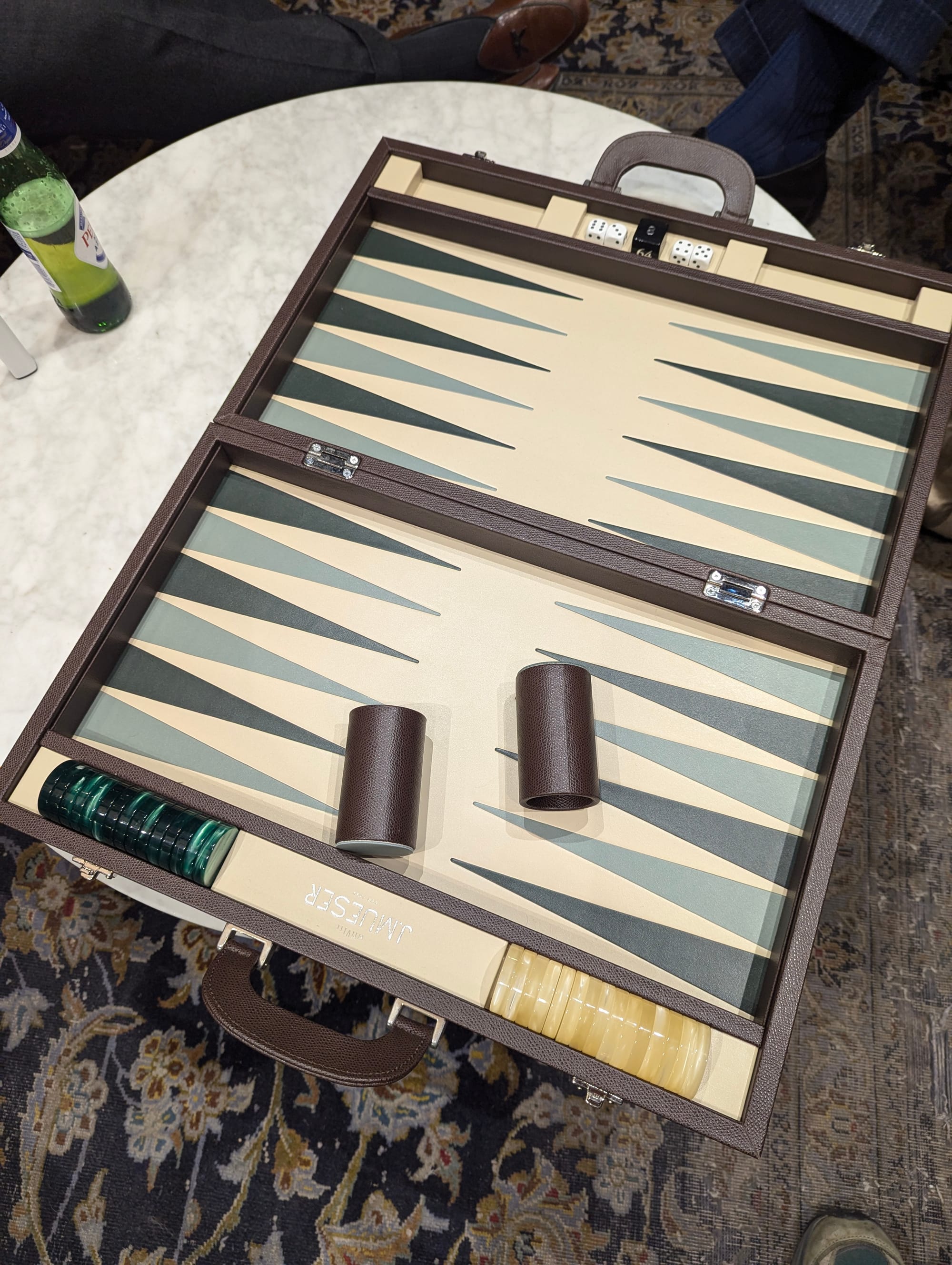 I'm Persian. My family plays a lot of backgammon. A lot of high-end menswear and menswear-adjacent brands make super fancy backgammon sets. You could buy me one of those. Those brands include J. Mueser; Brunello Cucinelli; Chopard; and L'Objet. The one above is J. Mueser; it has those fancy dice cup things and it... just feels good, you know?