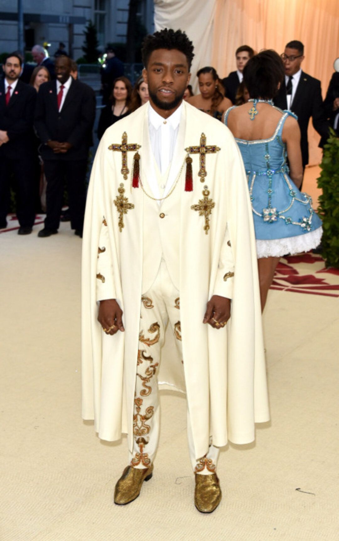 Luka Sabbat, Ansel Elgort, Chadwick Boseman and Donald Glover, in their Met Gala 2018 outfits.