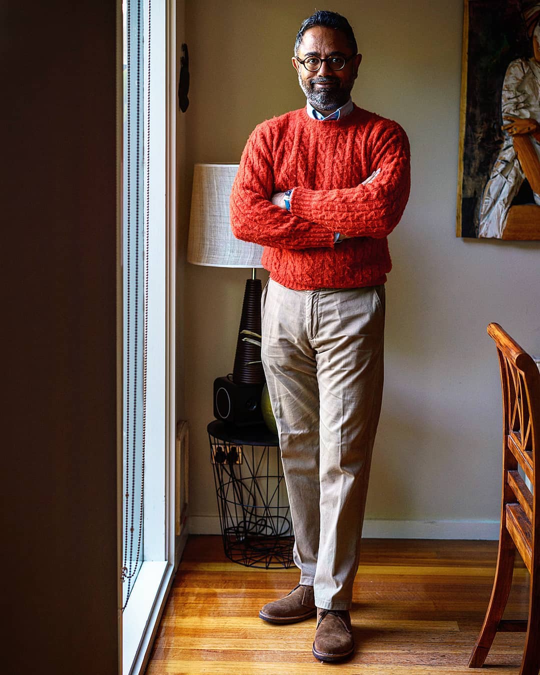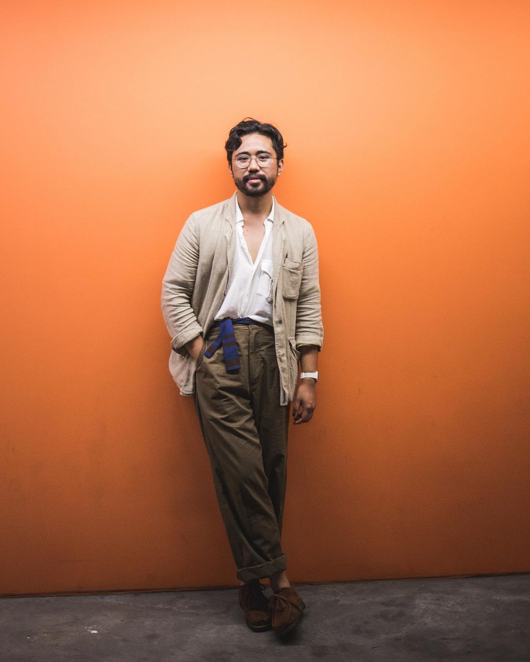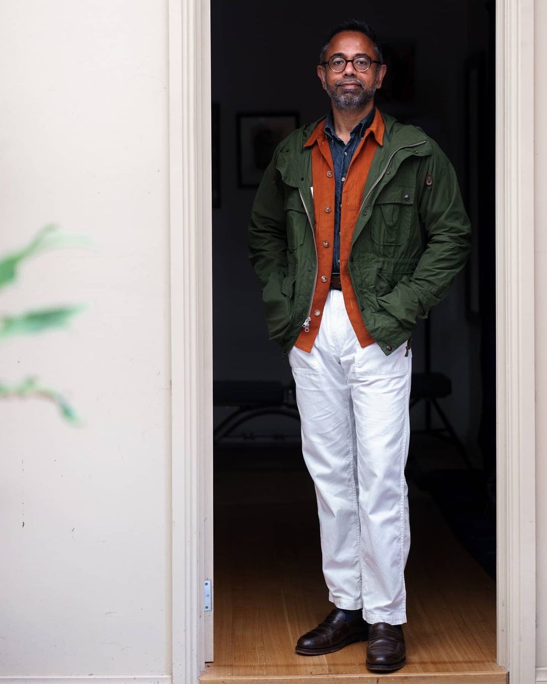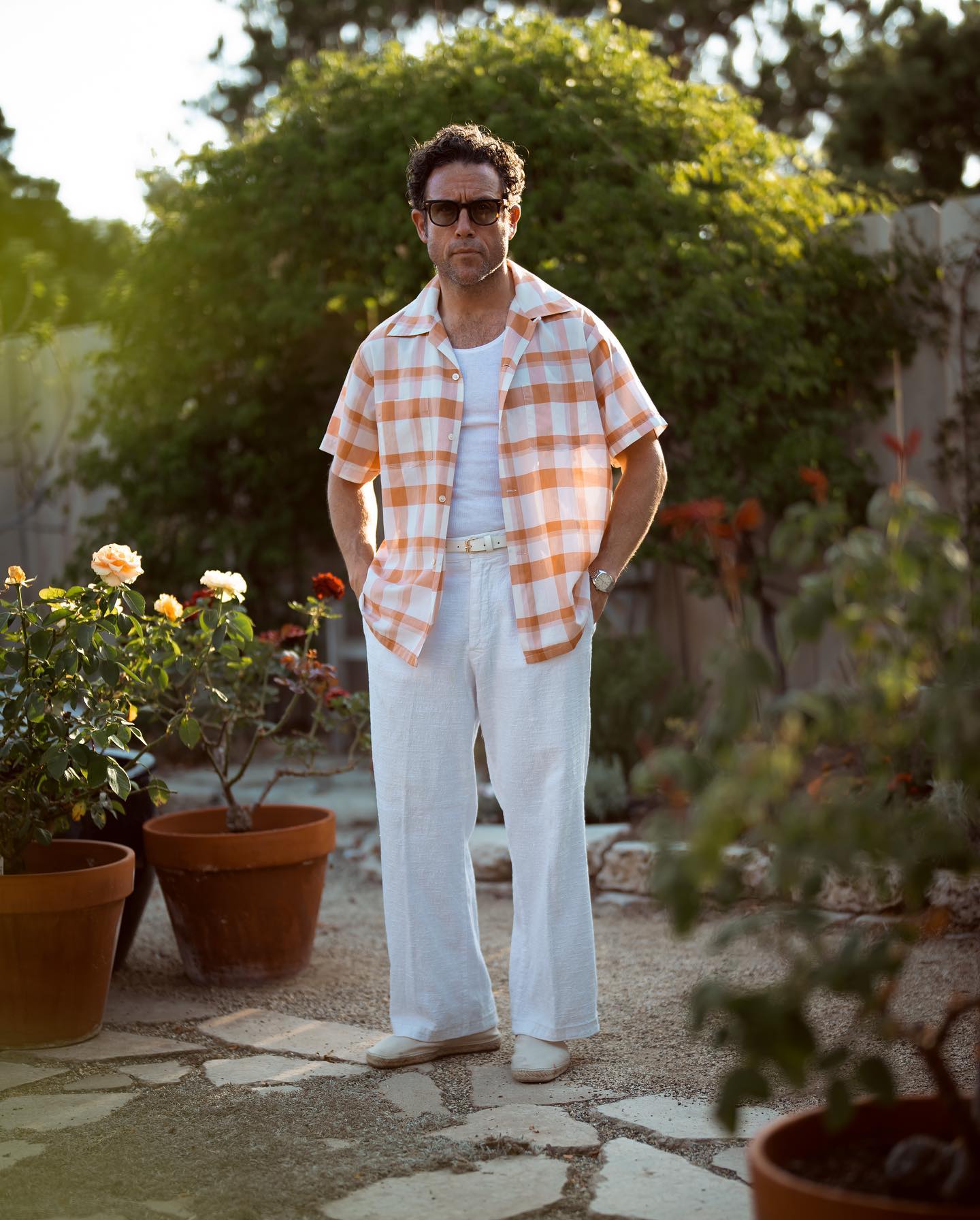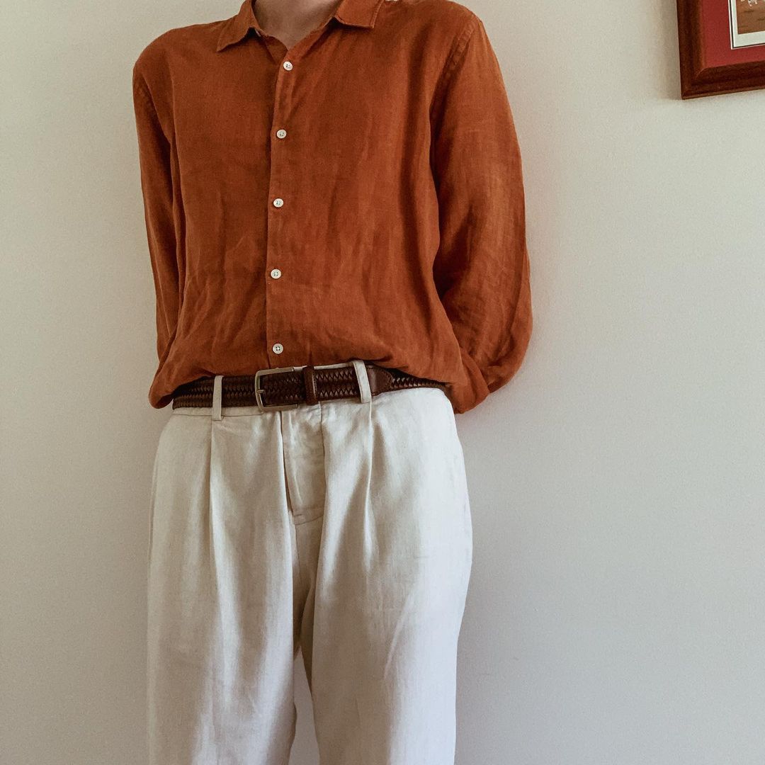 The legendary Chris Grech usually does not dress cheaply, but here he is in a beautiful Uniqlo shirt (and everything else expensive as hell).Most guys using orange place it in the fall or winter. But white is more traditionally a summer thing. Here's @sirdempseyliam wearing orange linen over white. This photo helped inspire this album!