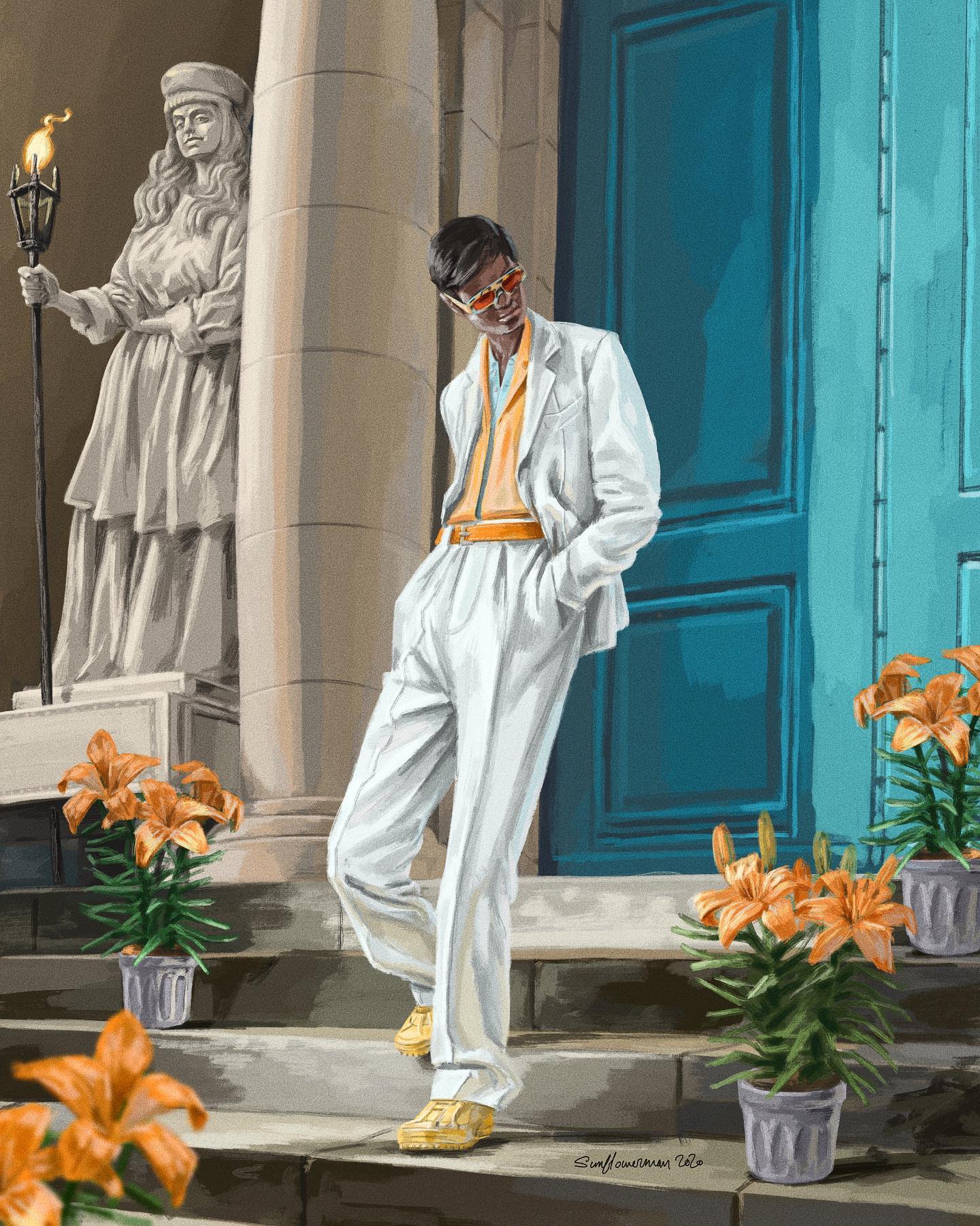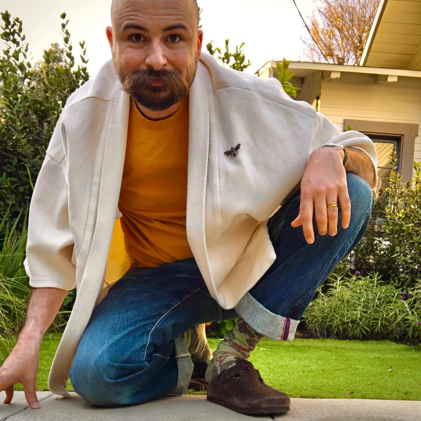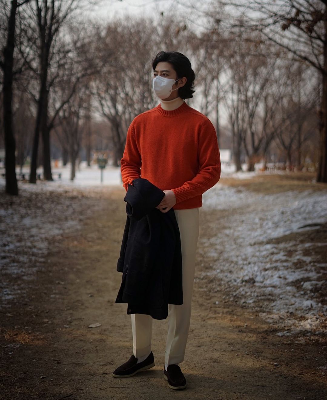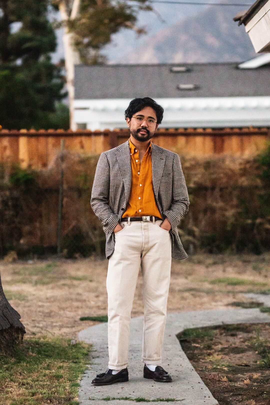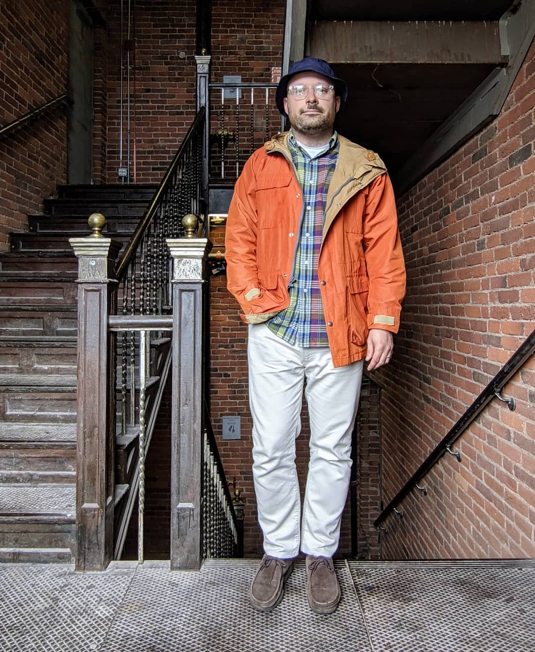 The legendary Chris Grech usually does not dress cheaply, but here he is in a beautiful Uniqlo shirt (and everything else expensive as hell).Most guys using orange place it in the fall or winter. But white is more traditionally a summer thing. Here's @sirdempseyliam wearing orange linen over white. This photo helped inspire this album!