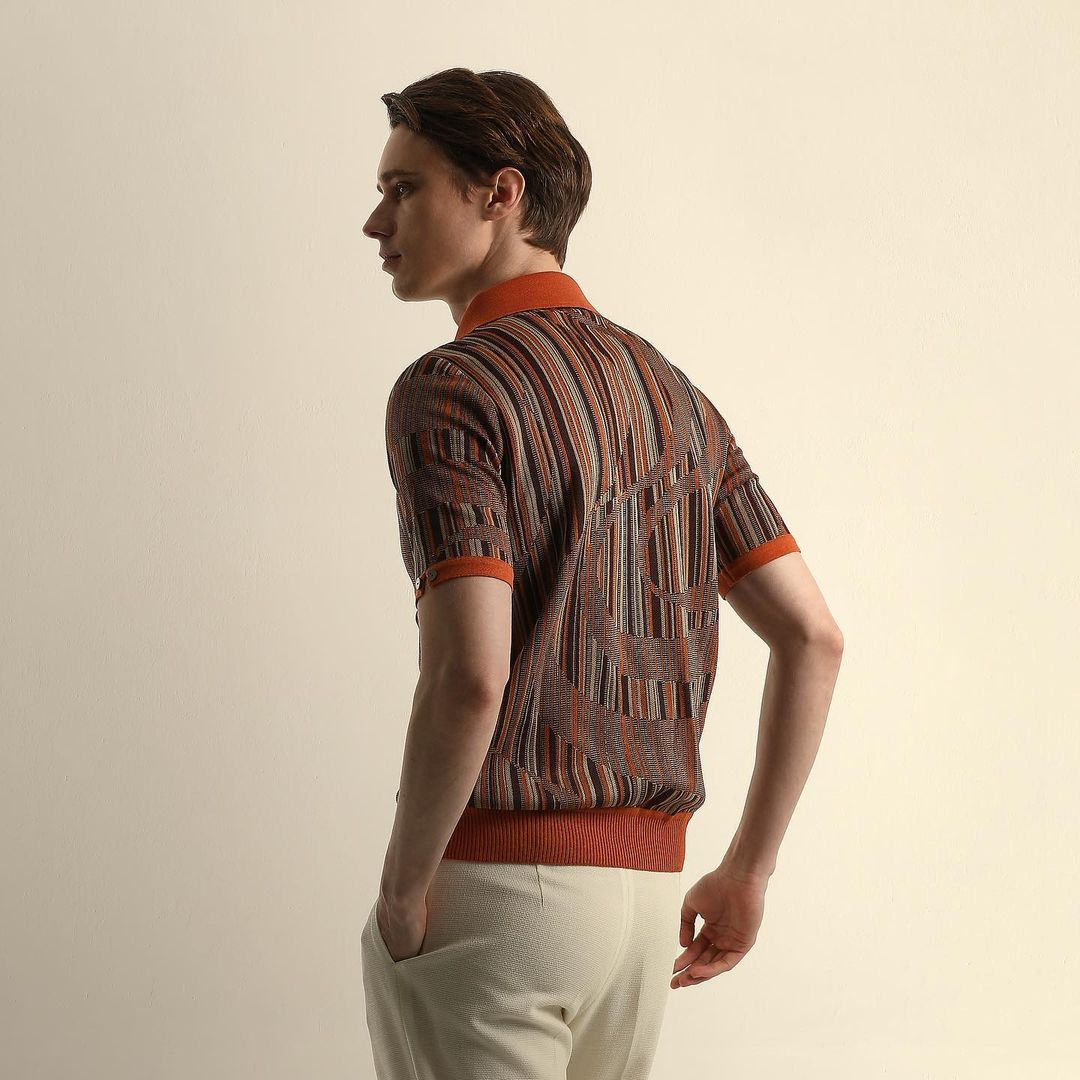 Gerry Nelson layers orange nicely, with greens and blues, but isn't afraid to wear it front and center with a strong knit.