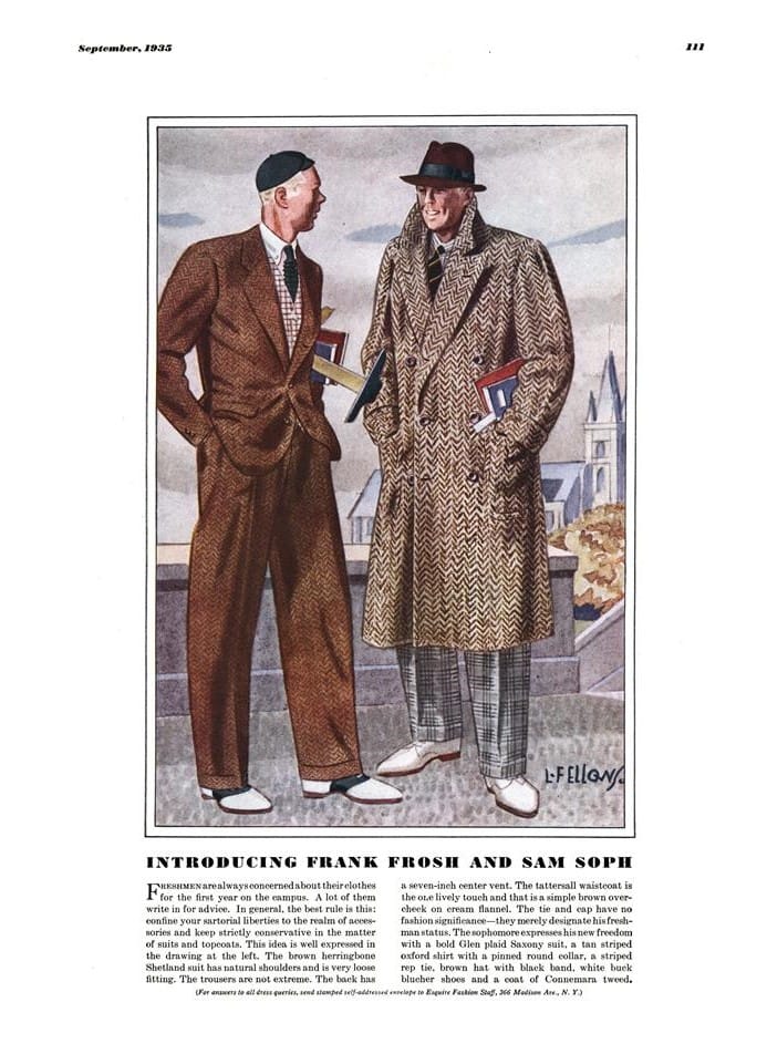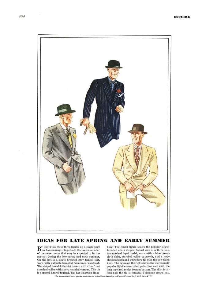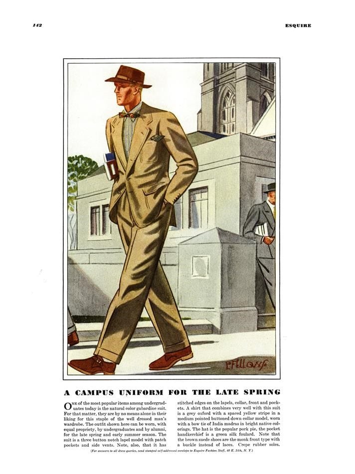 "Esquire Man," is the name used for the characters in old Apparel Arts illustrations of Golden Era suits, from back when photography was prohibitively expensive. Some people are obsessed with dressing like Esquire Man. In 1958, Apparel Arts, then owned by Esquire, Inc., was rebranded as Gentleman's Quarterly.