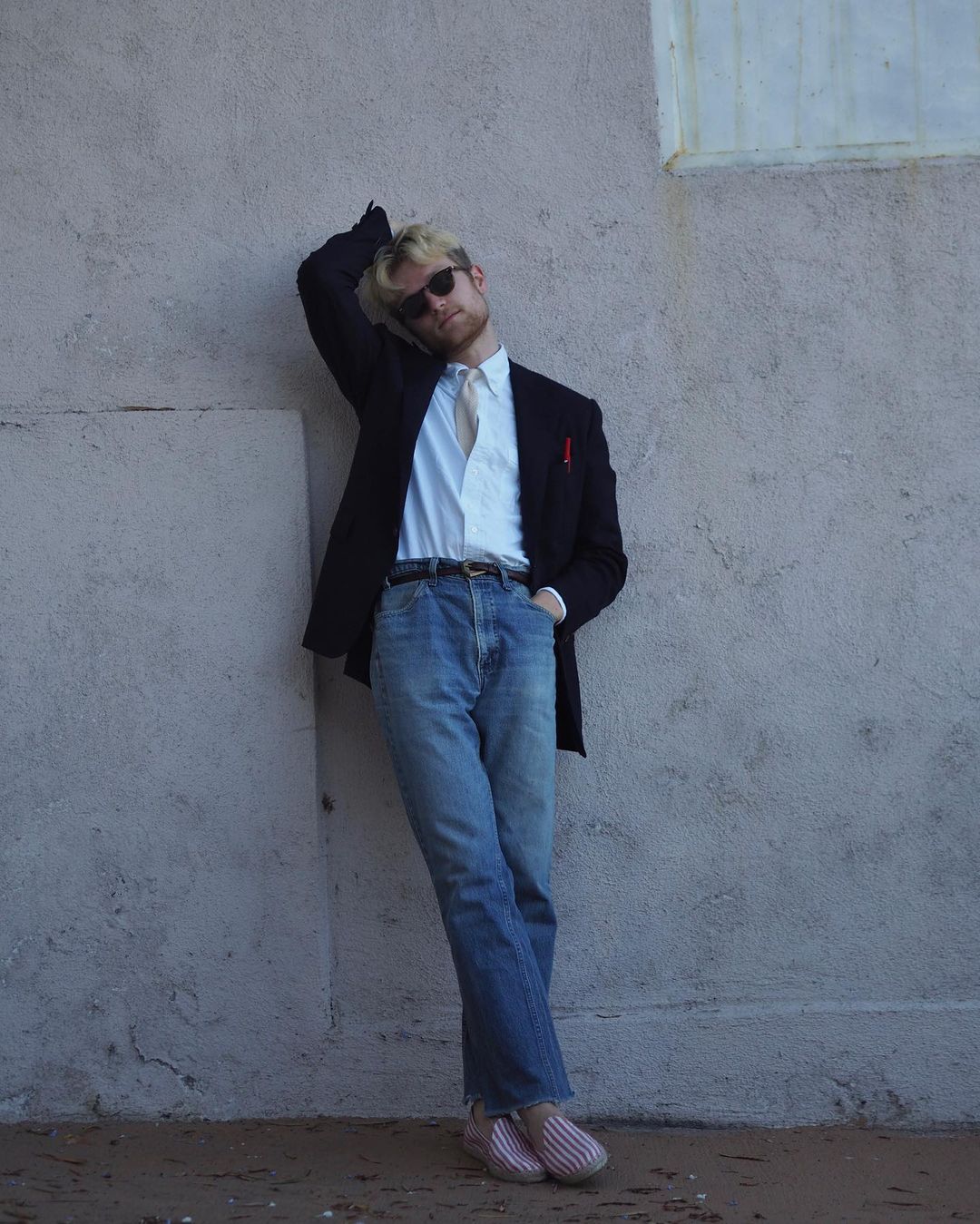 He's not categorically opposed to slim fits, but only in very specific cases: Ezra likes waxed denim from Rick Owens, but wouldn’t be interested in waxed denim from Saint Laurent or other similar brands.