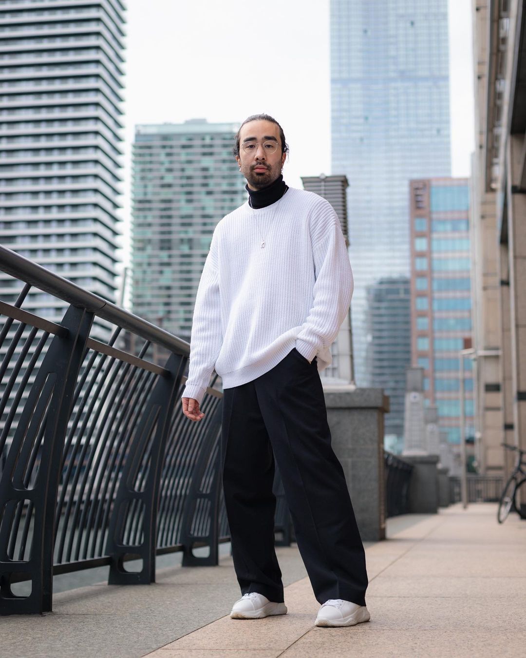 But as time went on, Derek found an aesthetic that worked for him. "Wide pants and relaxed fits fit my style mostly because I take a lot of cues from Japanese city boy looks," he says, "and I like the the carefree, casual feeling it projects."