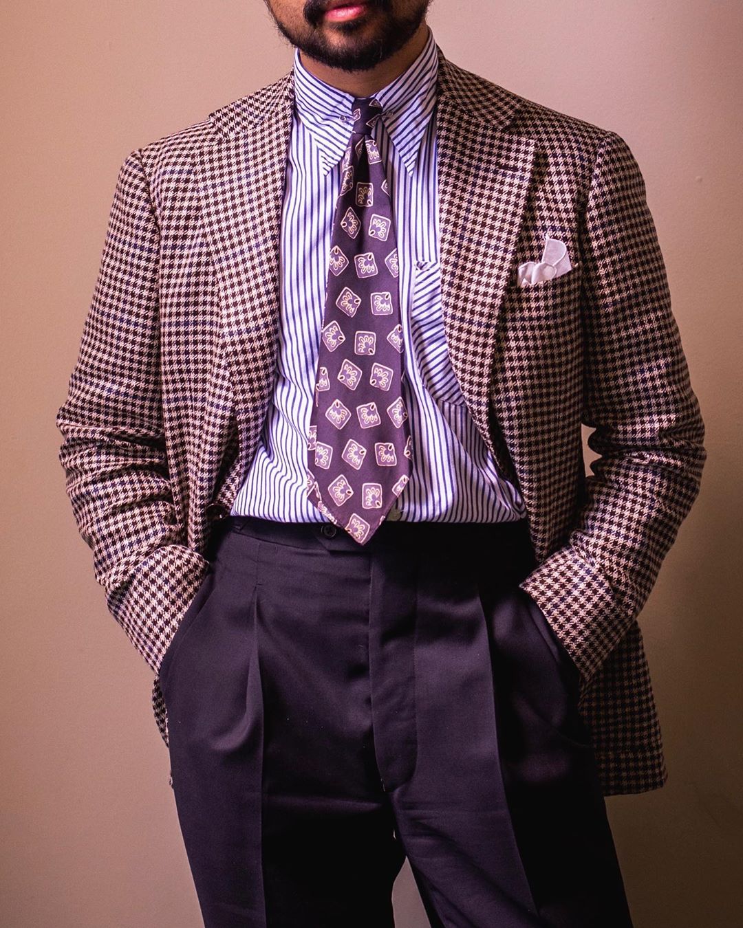 Finally, we talked about contrasting collars above. Really any piece of fabric can contrast. Patchwork aside, the collar, cuffs, placket, pockets, and yoke could all contrast. A white collar and cuffs might be relatively safe, but you'll quickly enter dangerous territory. Colorful / patterned contrast, contrast on the inside o the collar or cuff or placket, and other unusual contrasts are... not great.