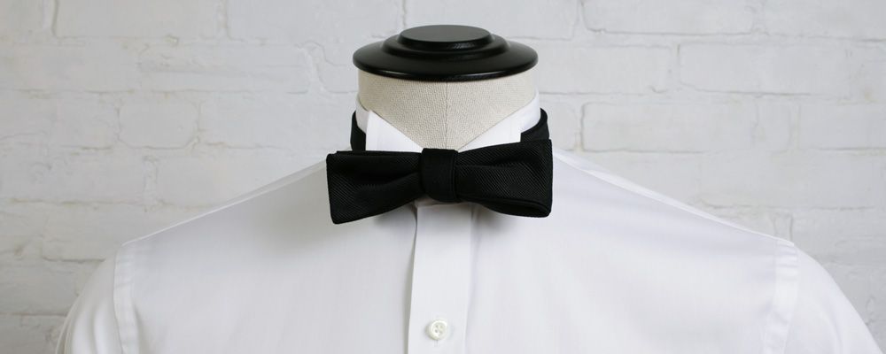 A Wing Collar is a funny thing. Trying to describe it... It's kind of like a stiff band collar with a miniature spread collar sticking out at the front. Just two small flaps. This collar accommodates a bow tie, and is pretty exclusively meant for tuxedo shirts—see the discussion of eveningwear below.
